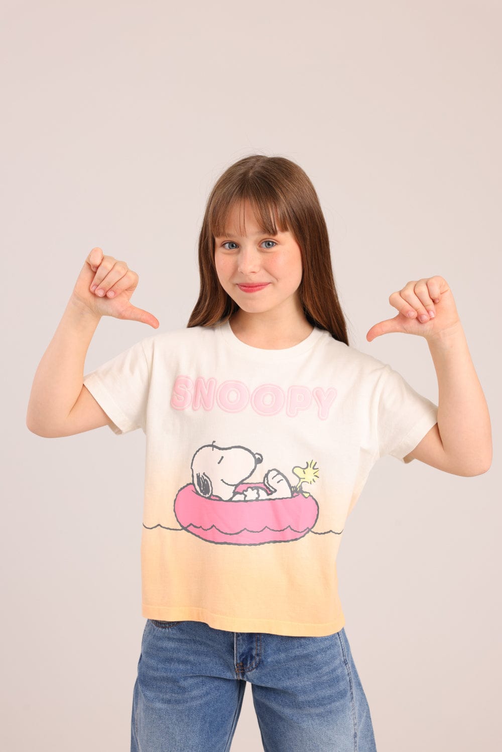 חולצה קצרה אוברסייז ממותגת סנופי עם הדפס קדמי