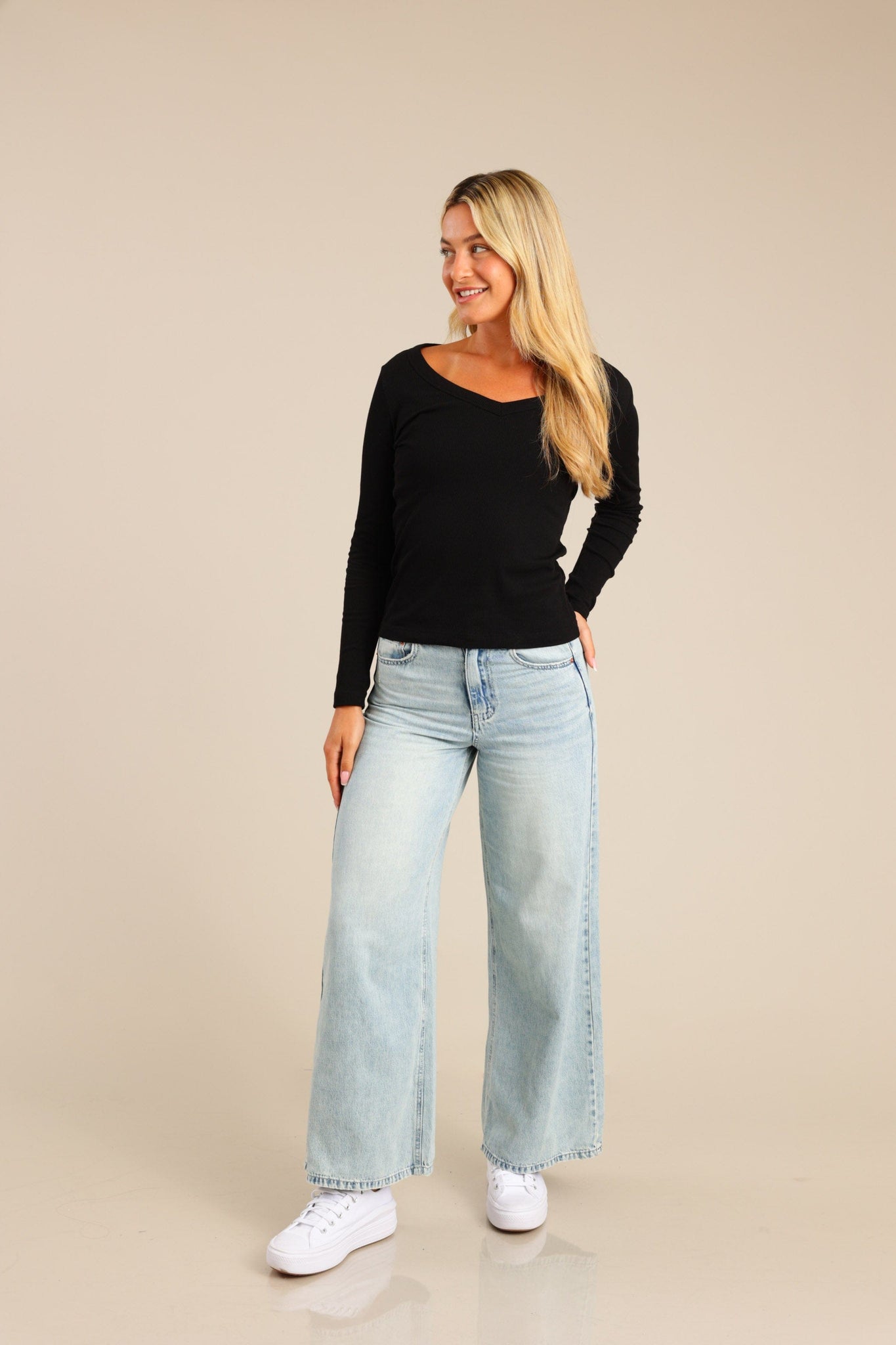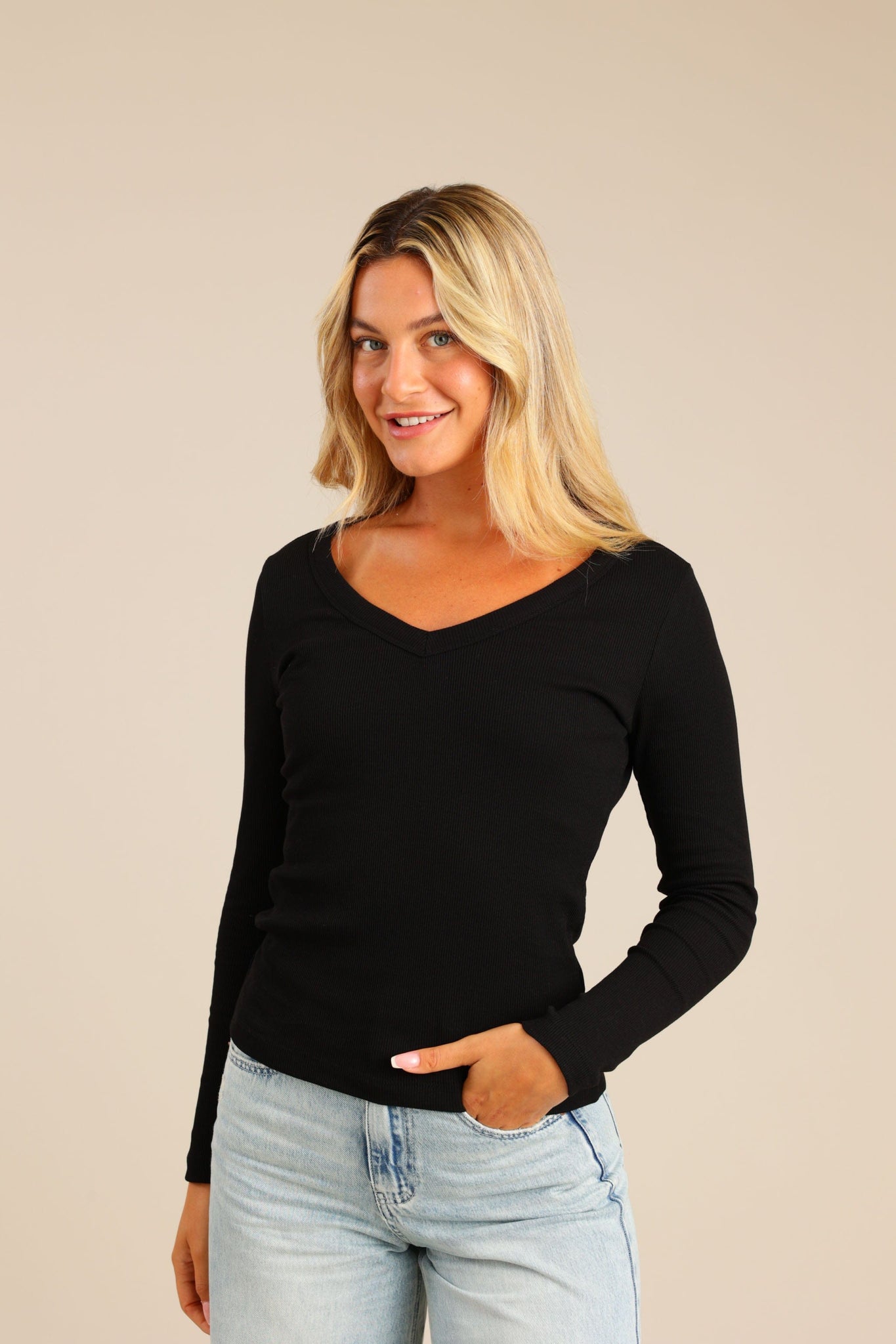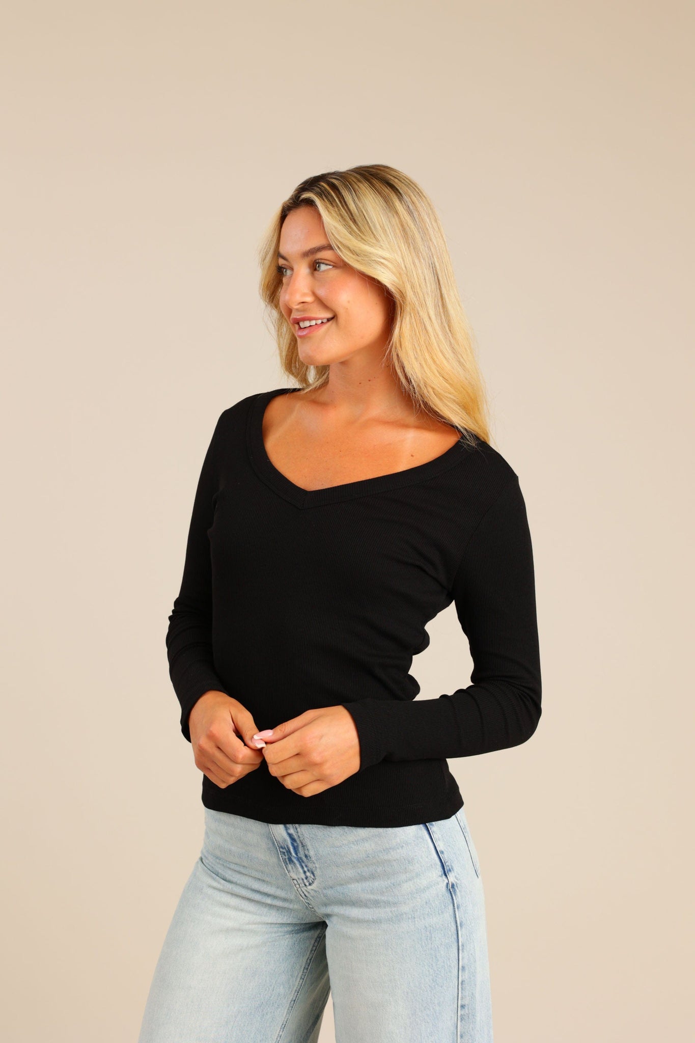 חולצת בייסיק ארוכה צווארון V