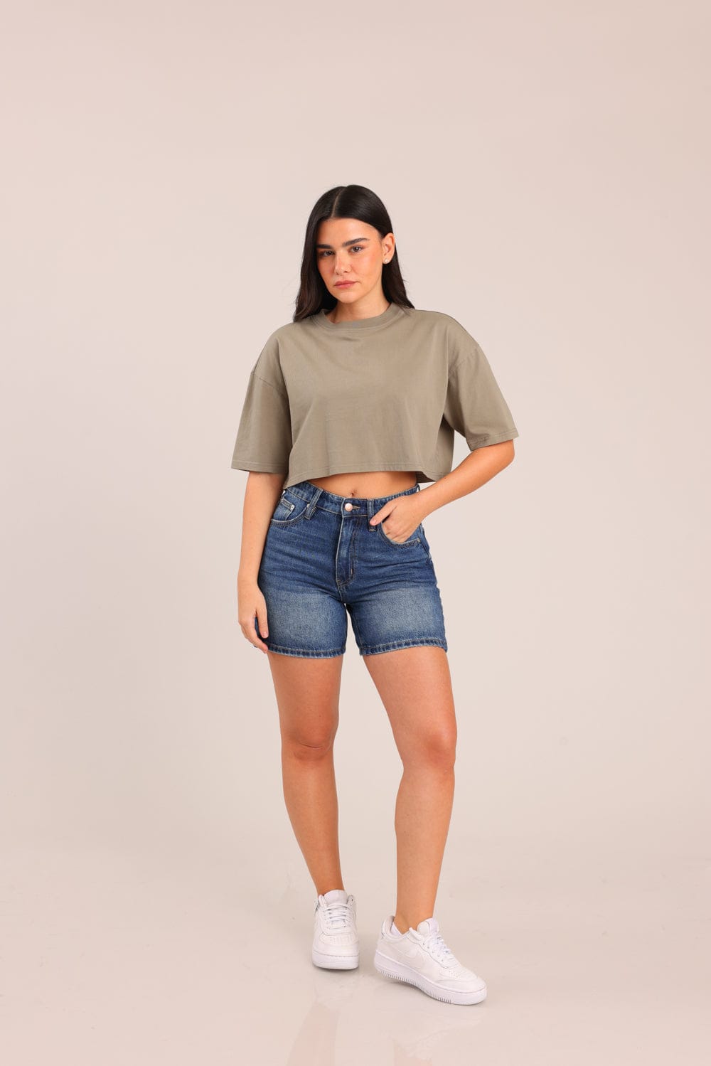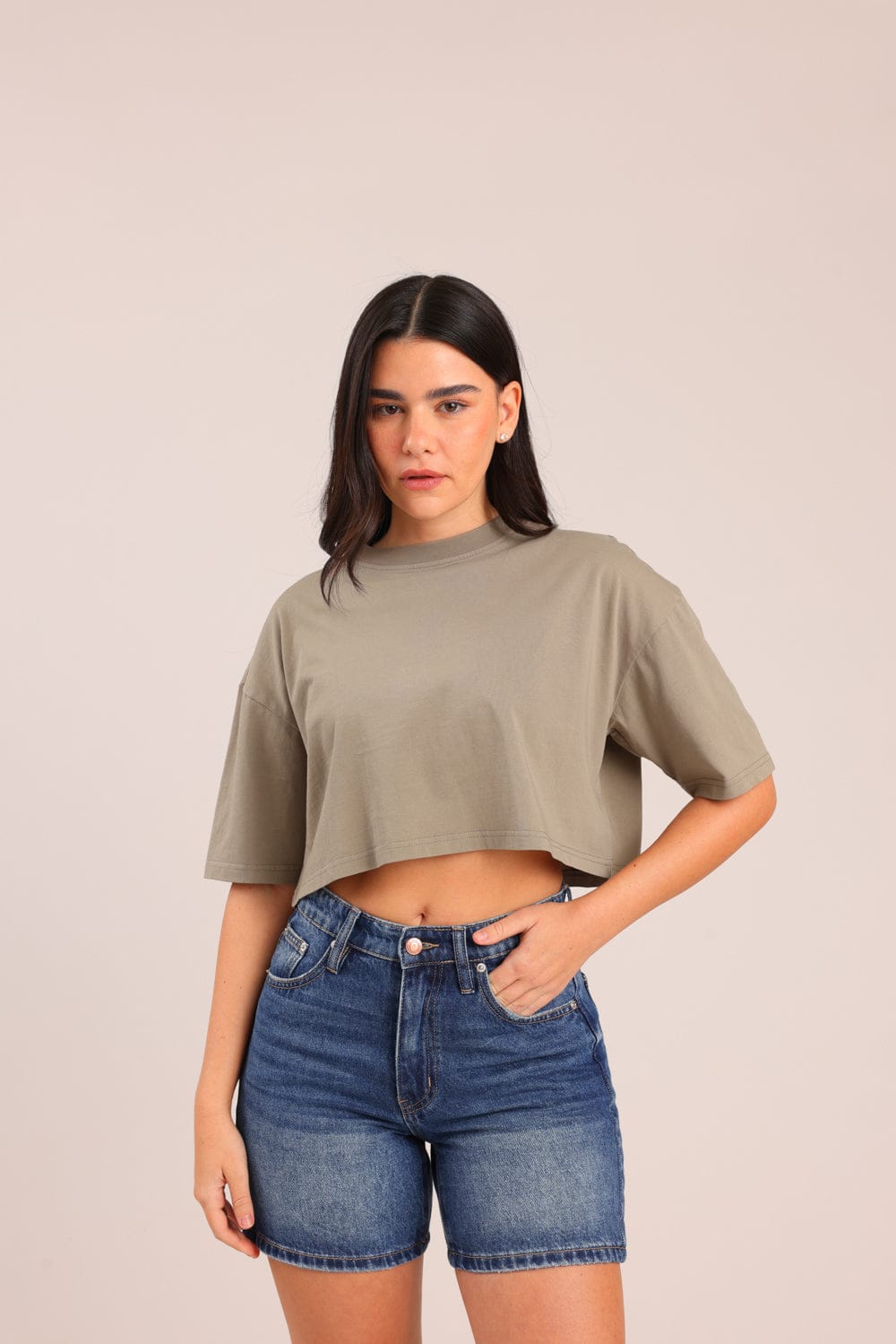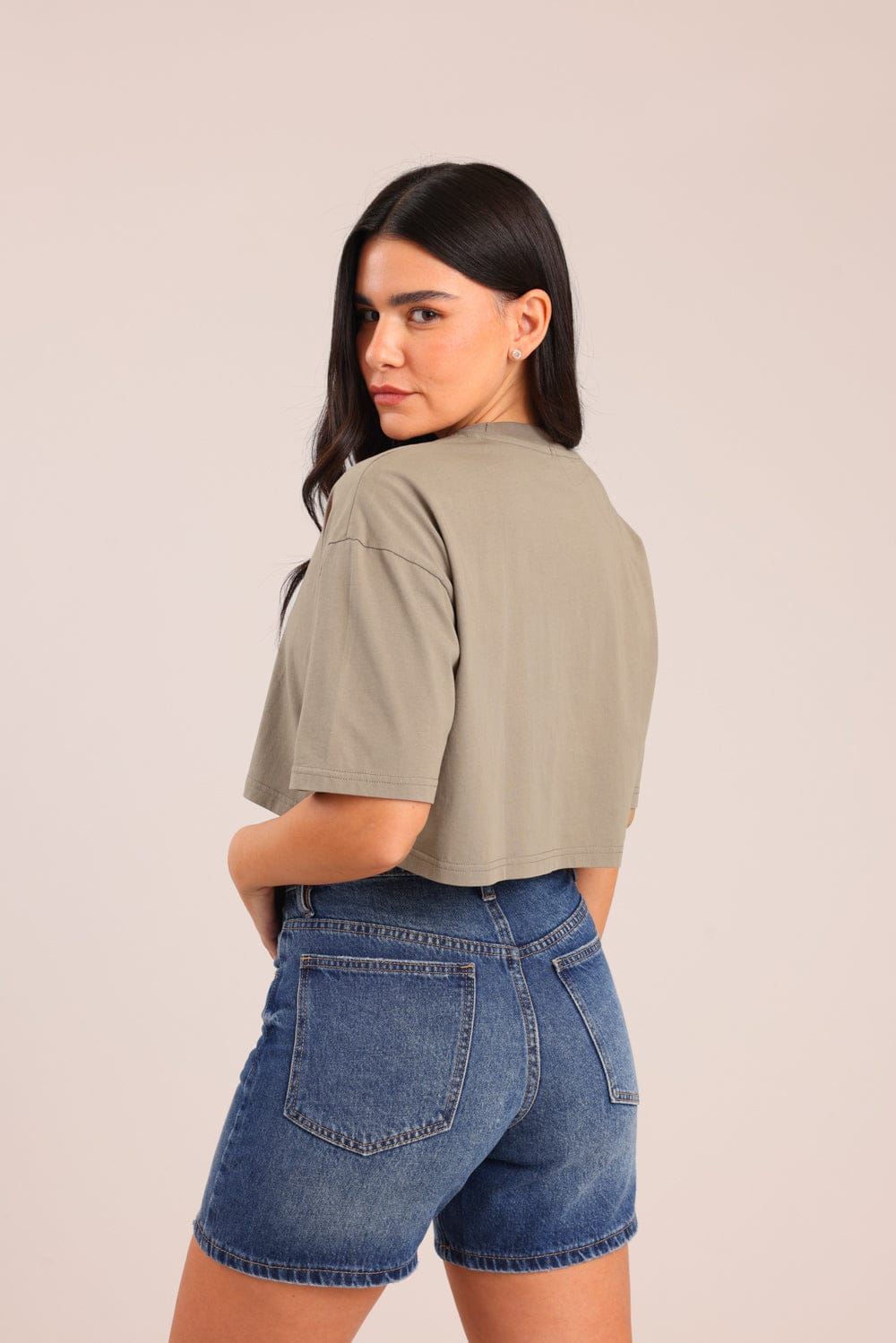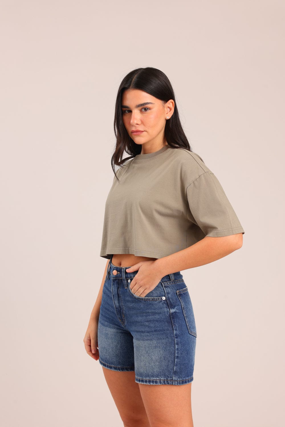 FOX נשים חולצה קצרה חולצת נשים חלקה קרופ חולצת נשים חלקה קרופ