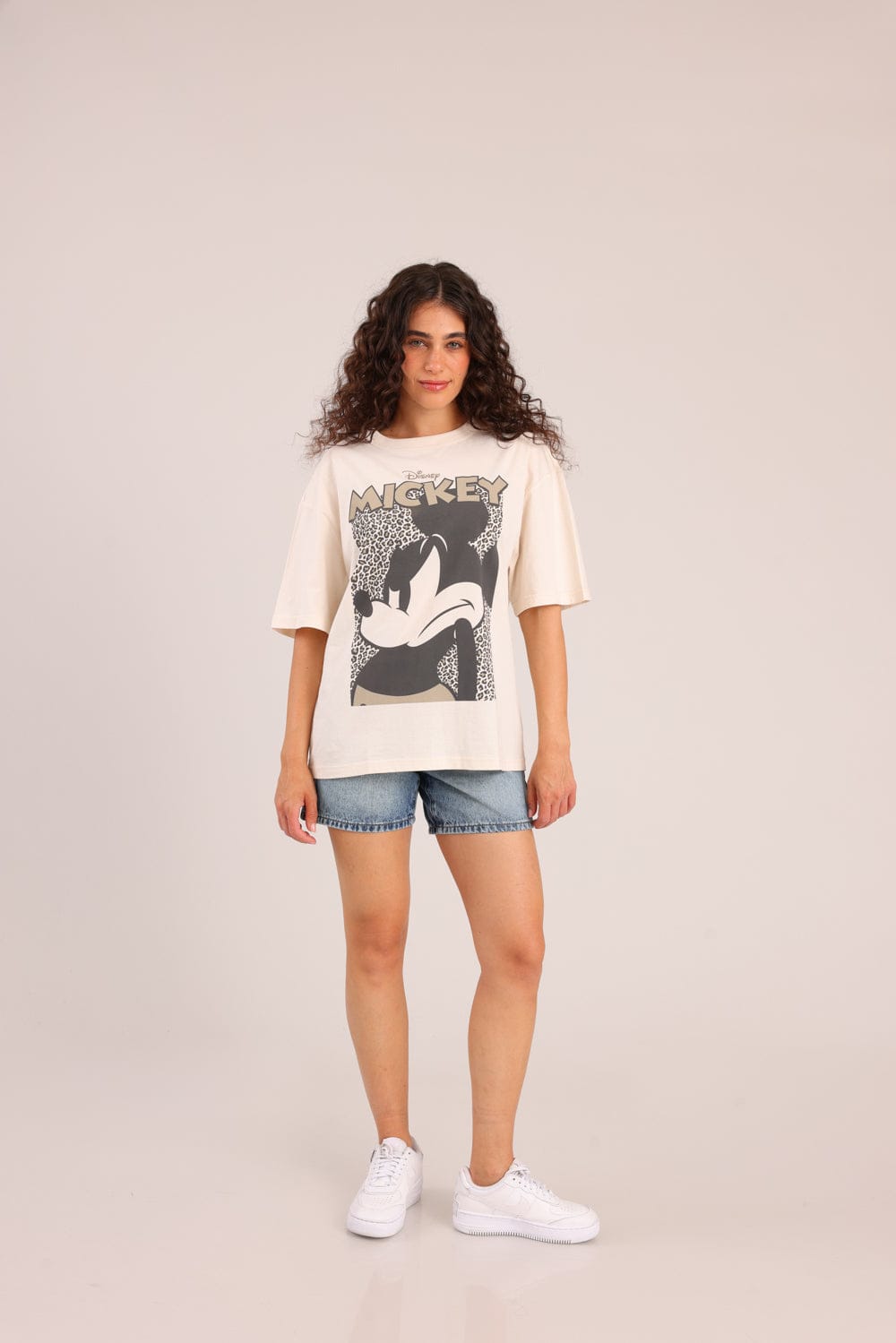 חולצה ממותגת מיקי מאוס דיסני בגזרת אוברסייז עם הדפס קדמי