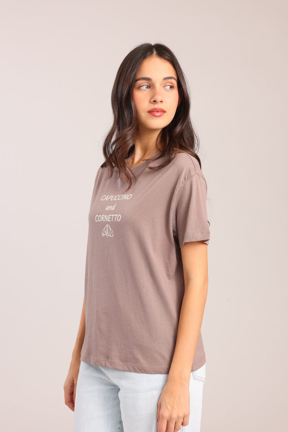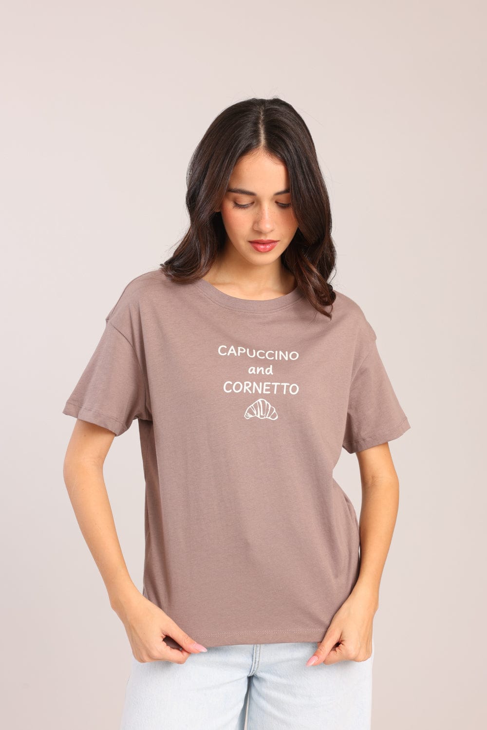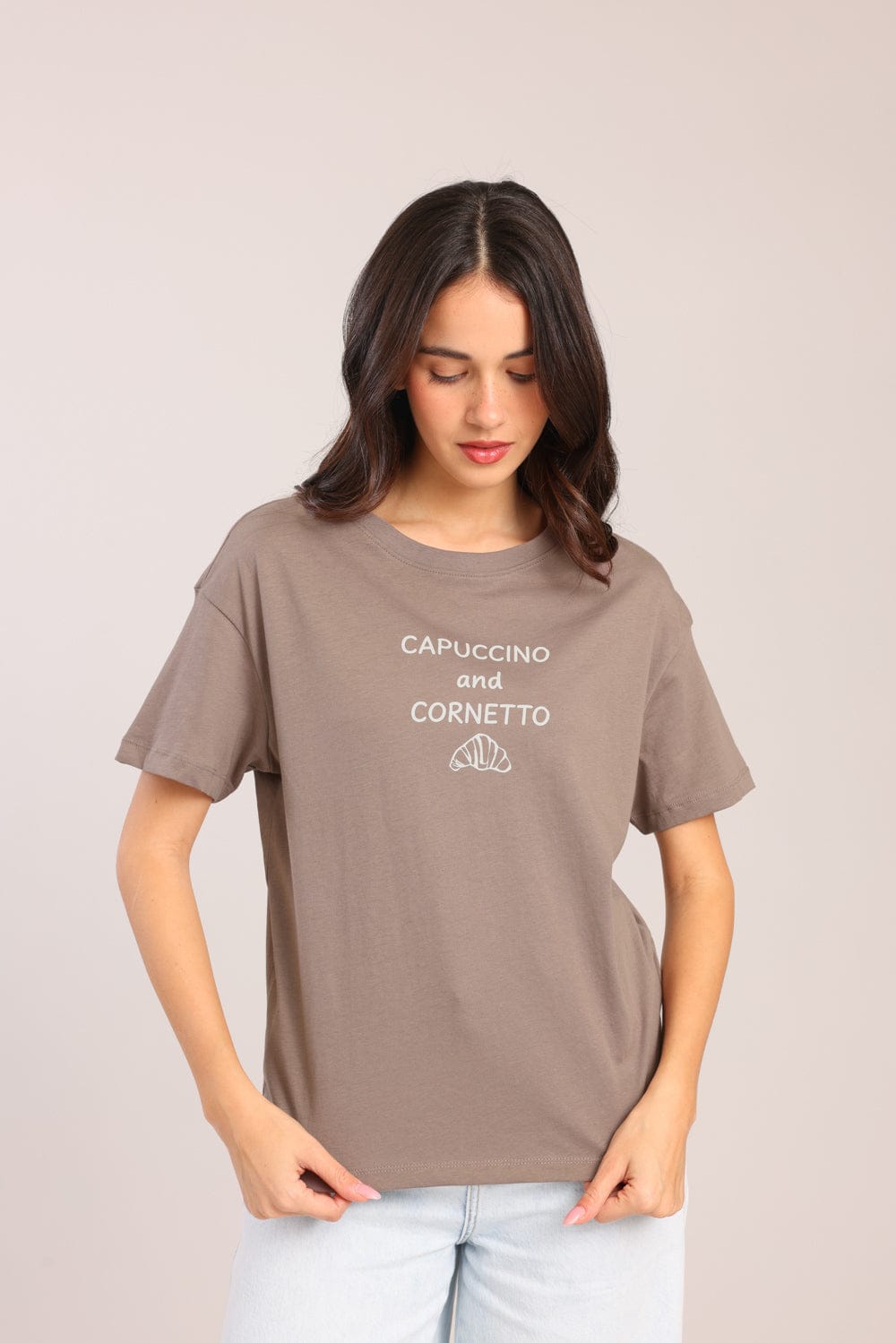 חולצת טישרט עם הדפס קדמי וצווארון עגול.