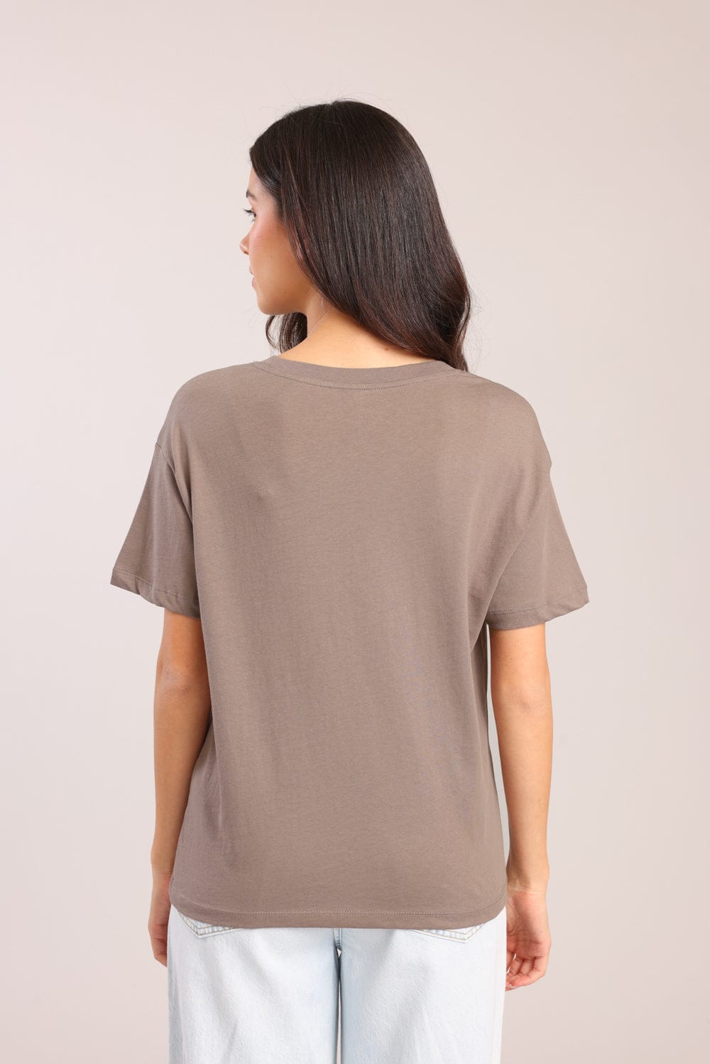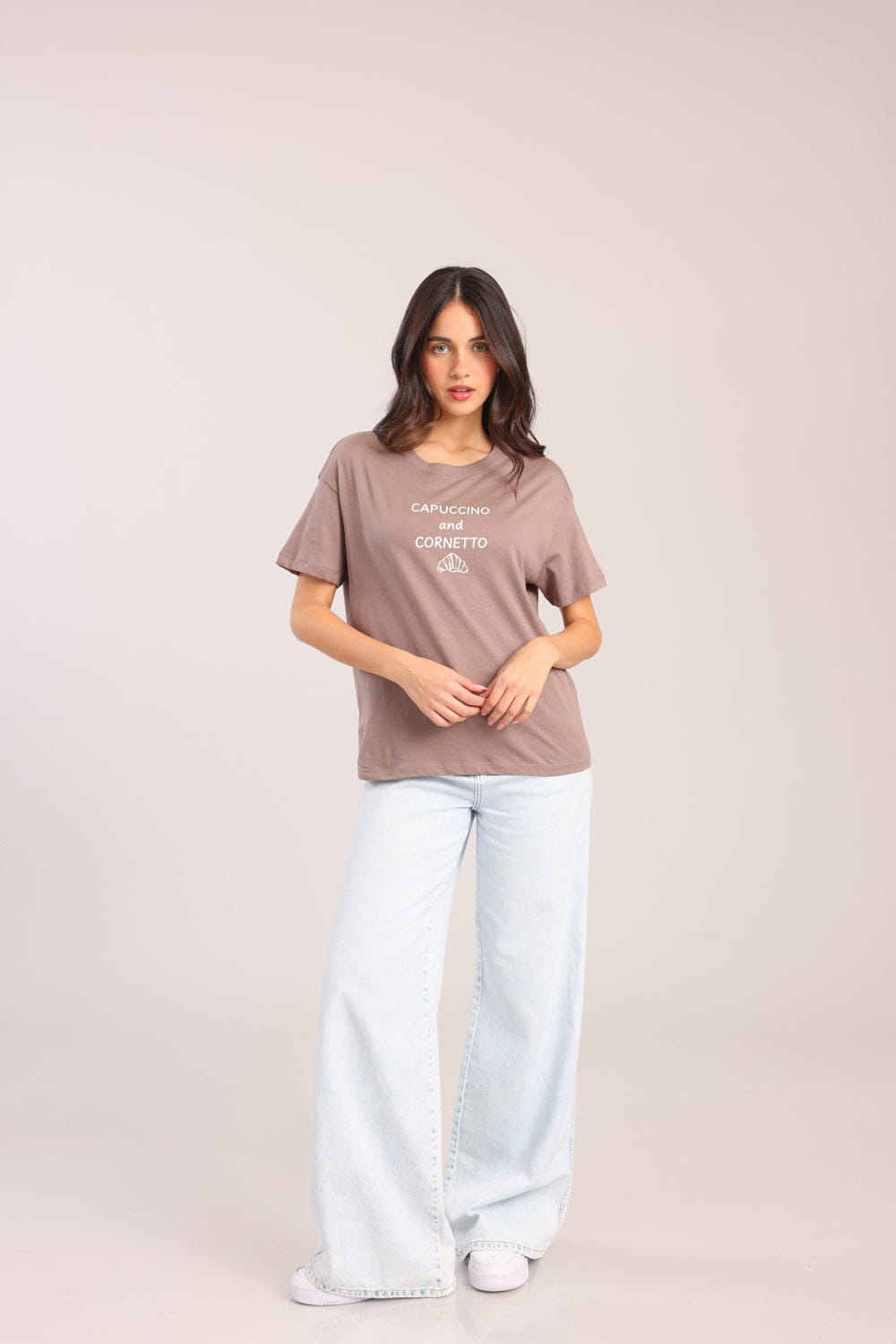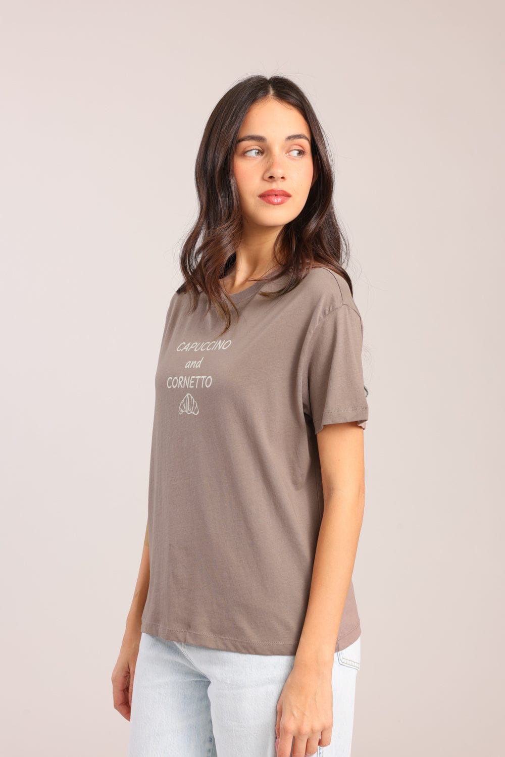 חולצת טישרט עם הדפס קדמי וצווארון עגול.