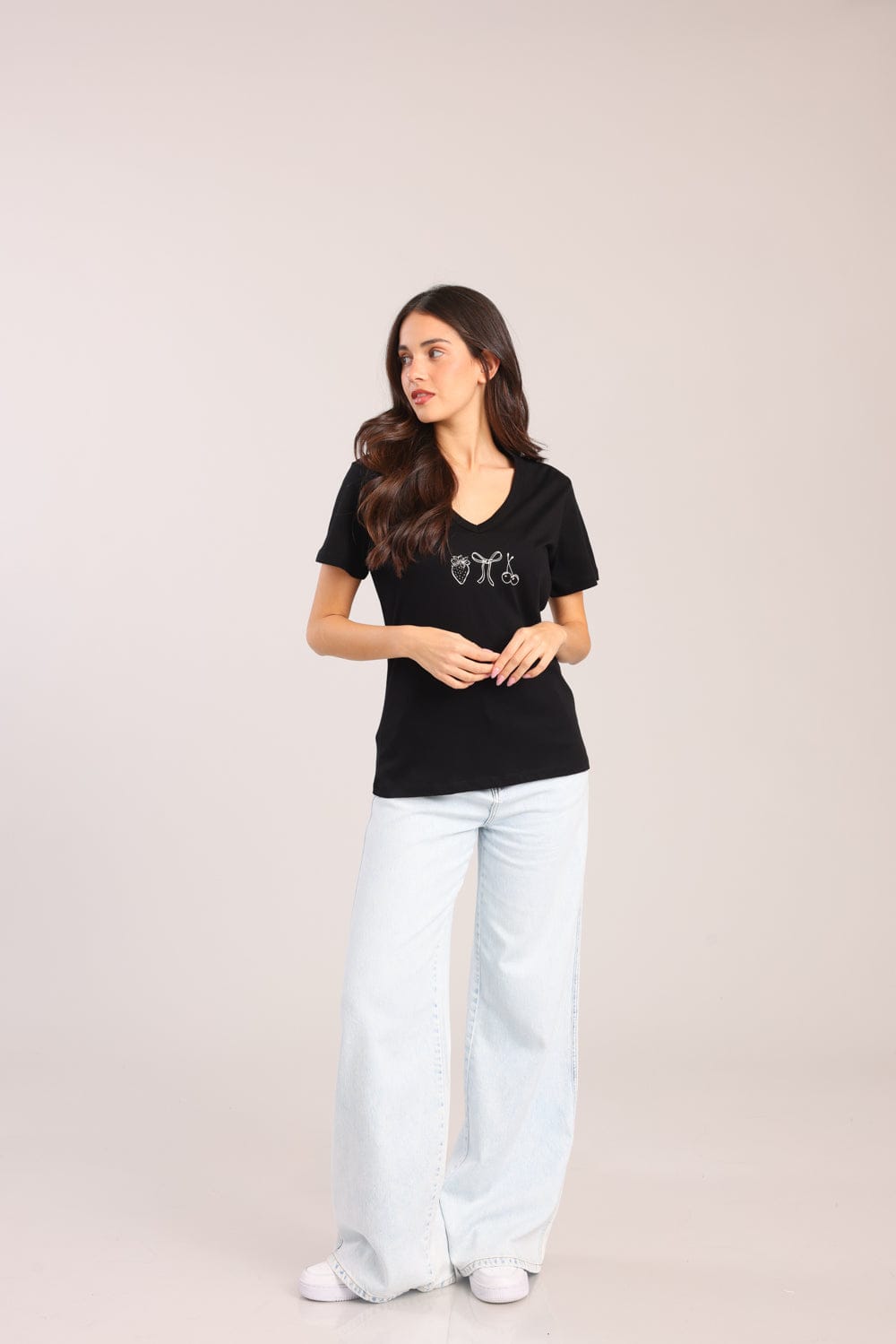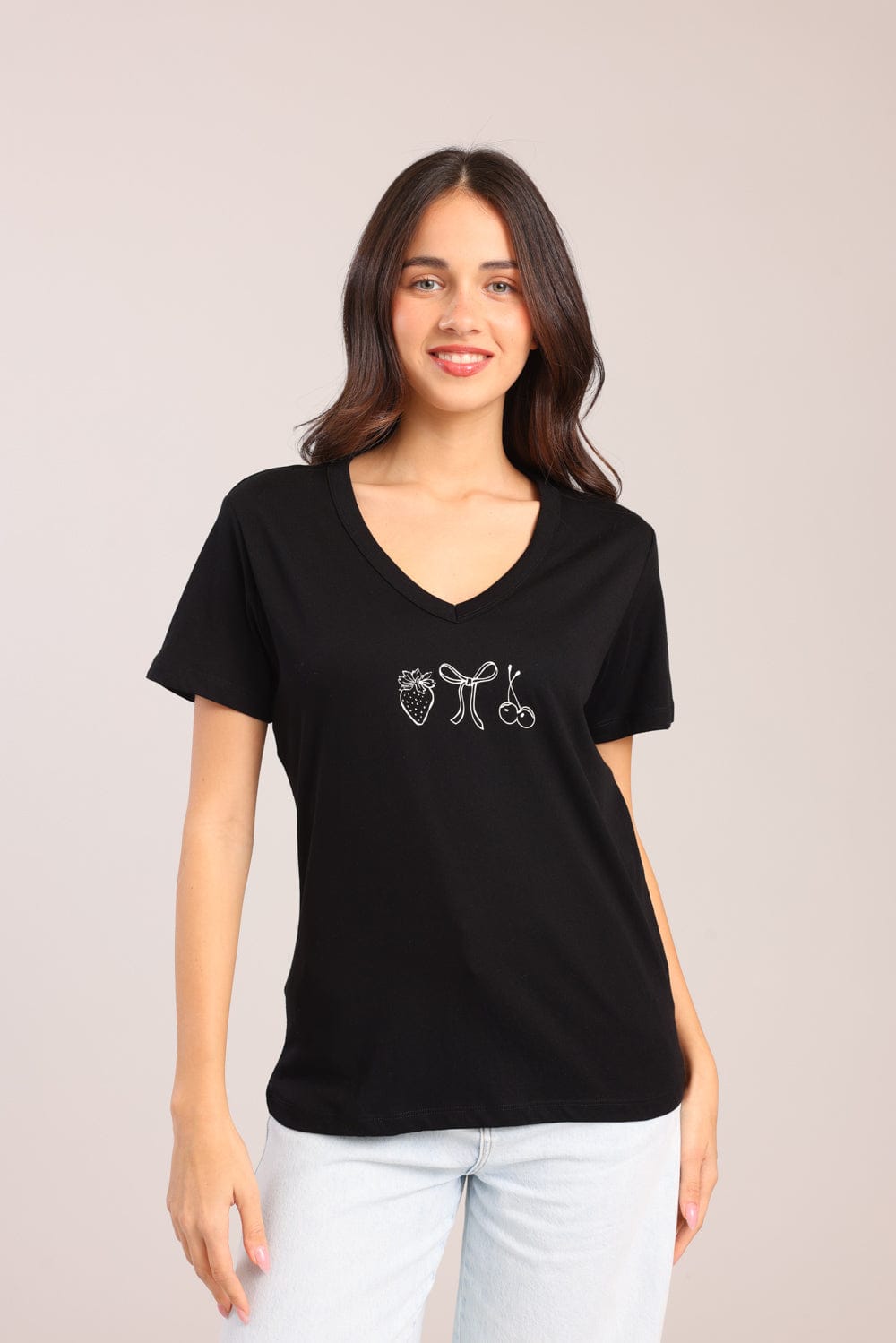 חולצת V עם הדפס קדמי.