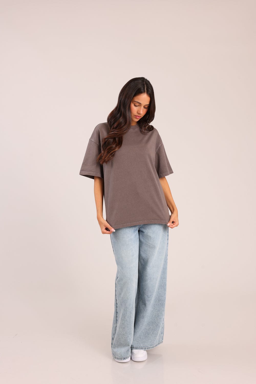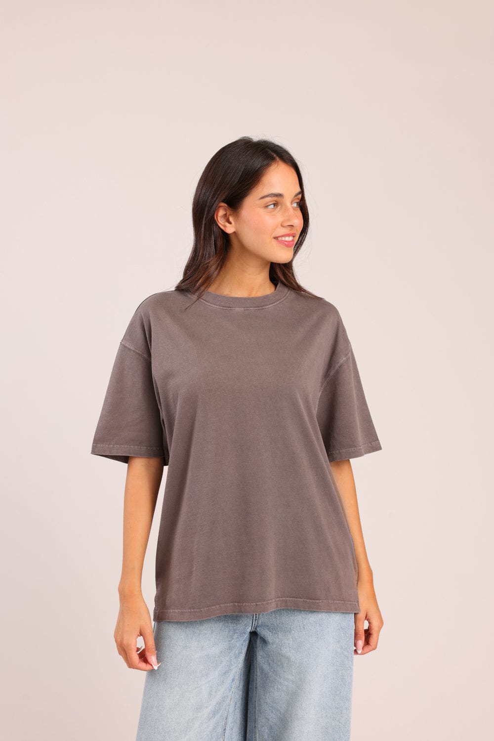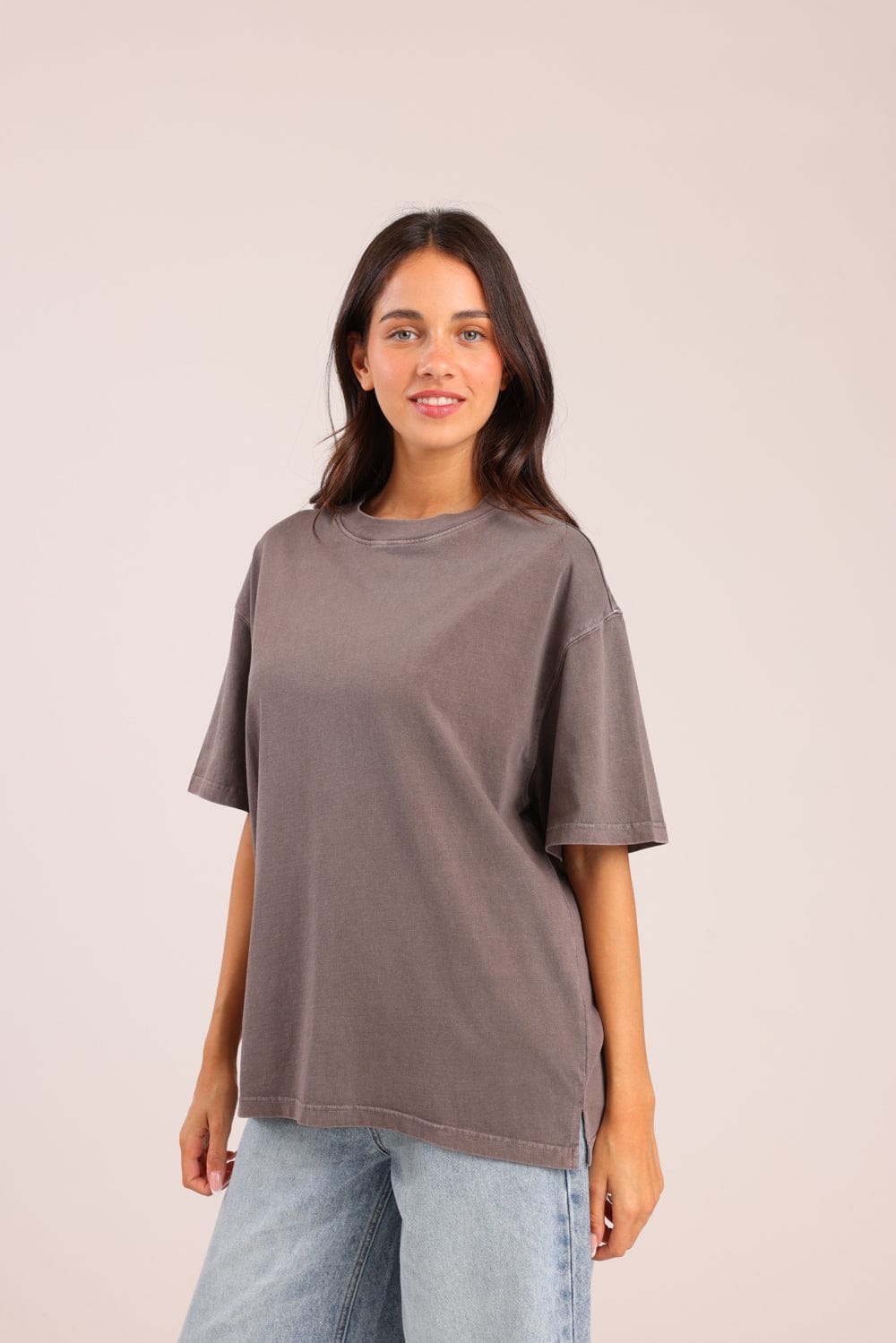 חולצת טריקו חלקה בגזרת אוברסייז