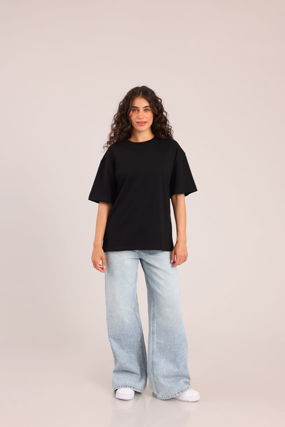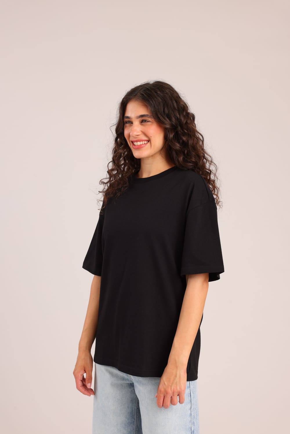 חולצת טריקו חלקה קצרה בגזרת אוברסייז