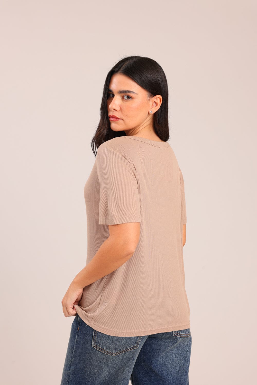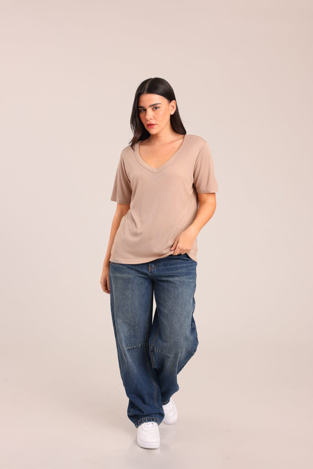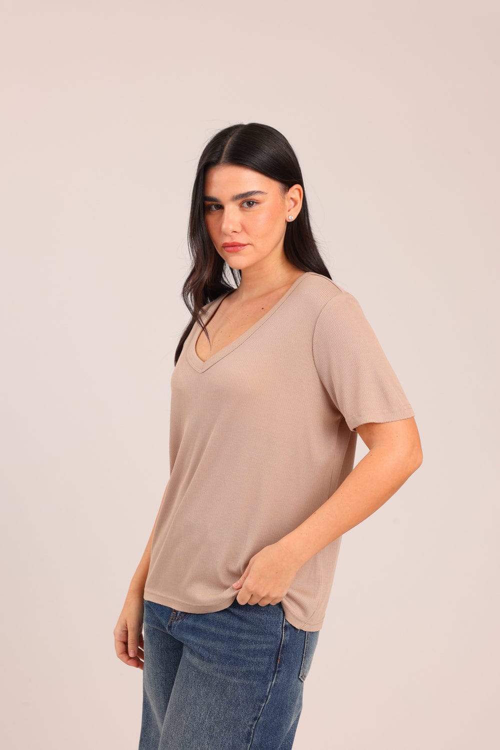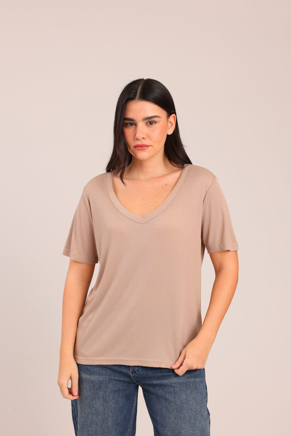 חולצה חלקה עם צווארון V