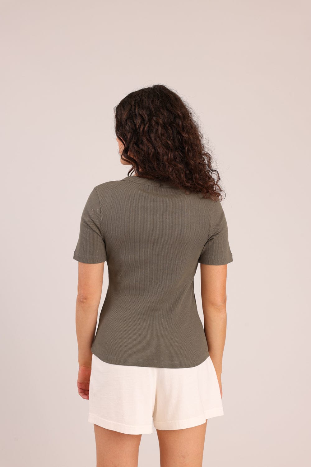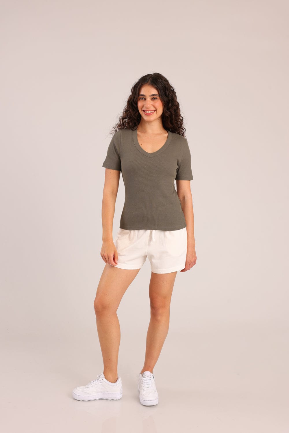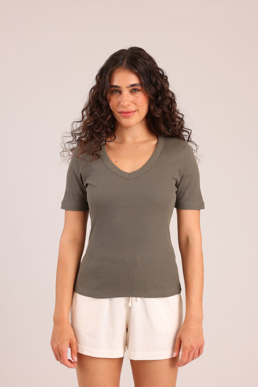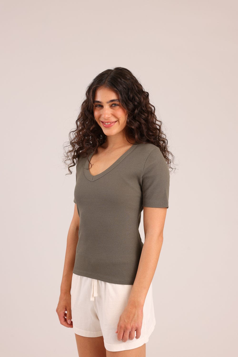 חולצת בייסיק חלקה עם צווארון V