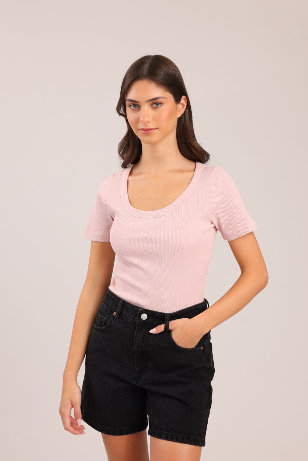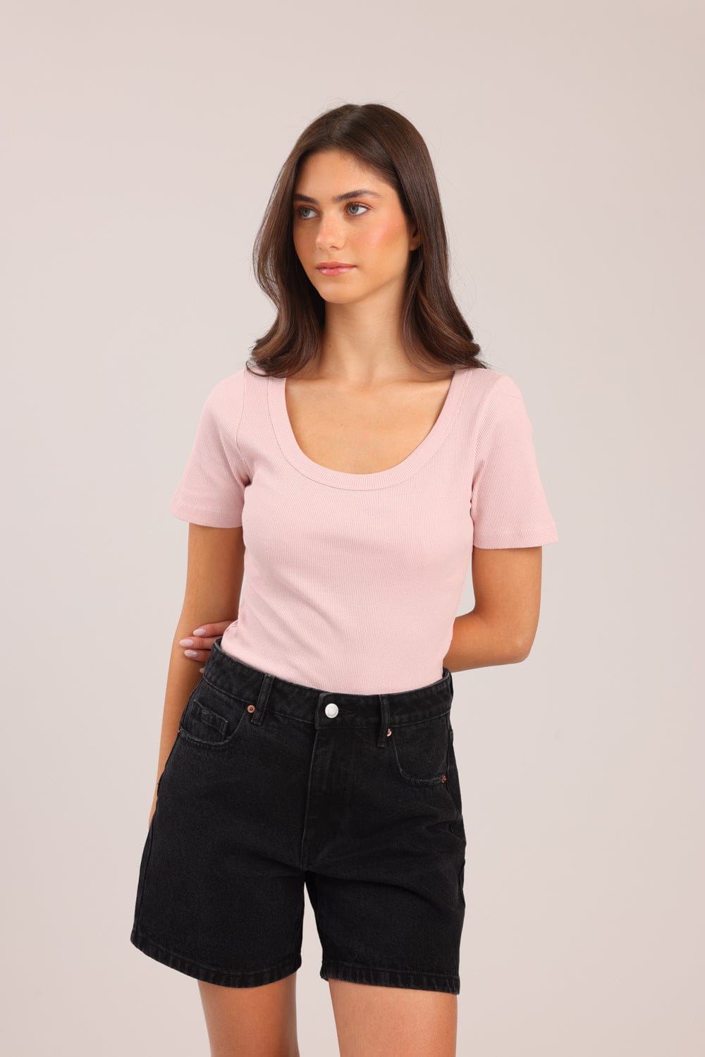חולצת טריקו בייסיק קצרה חלקה
