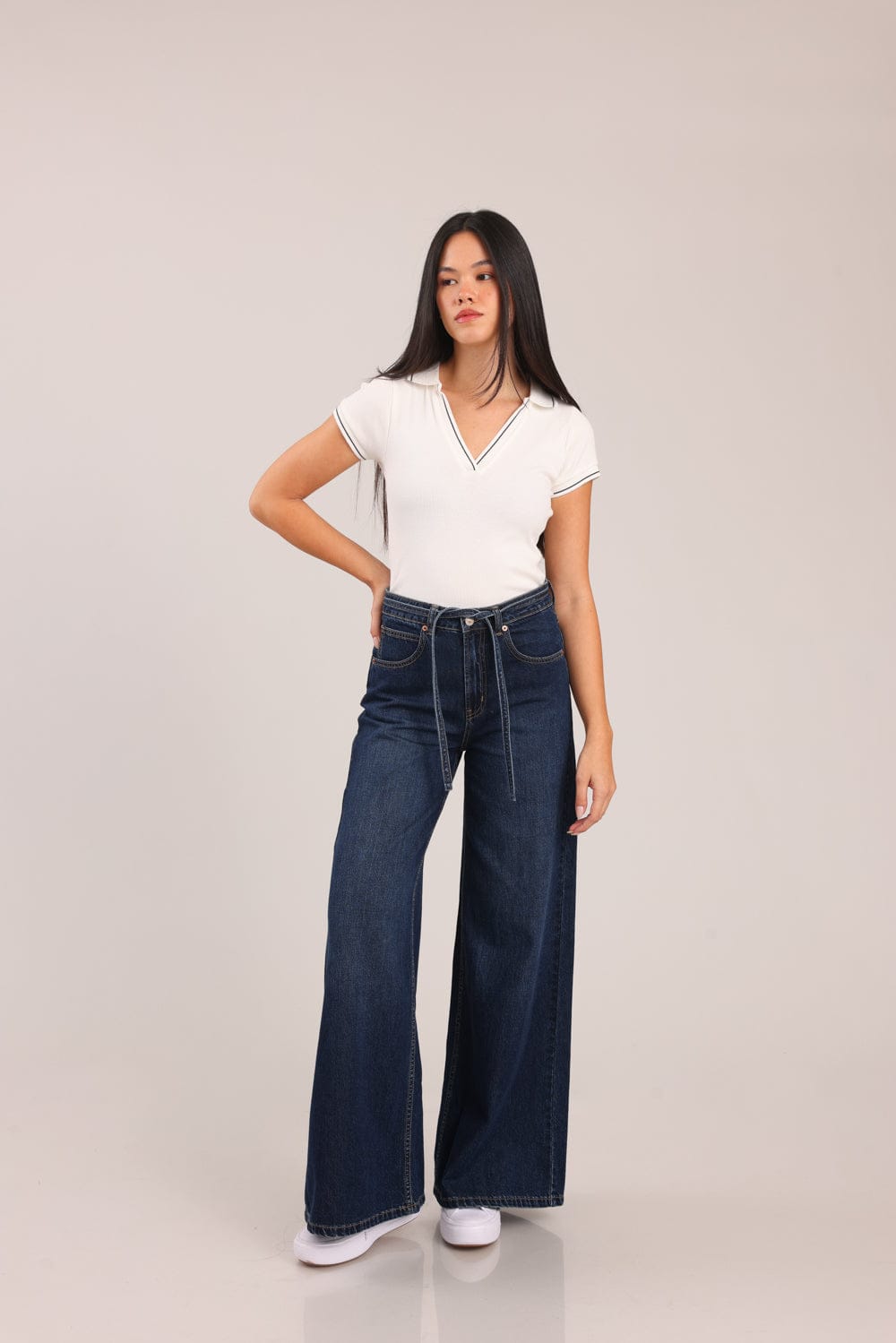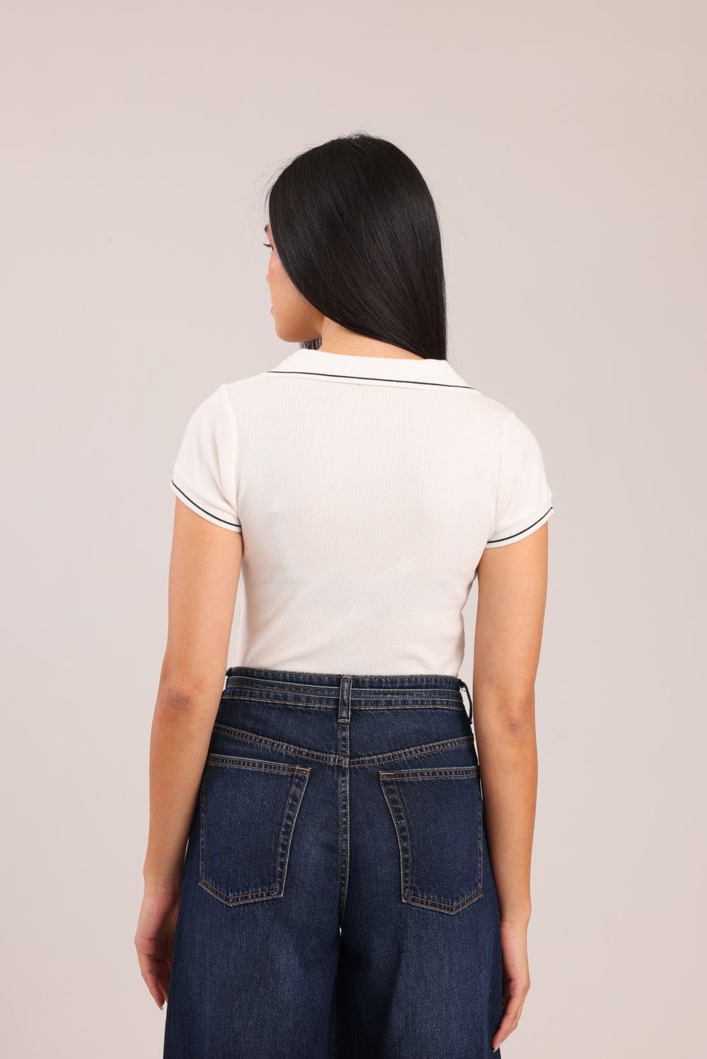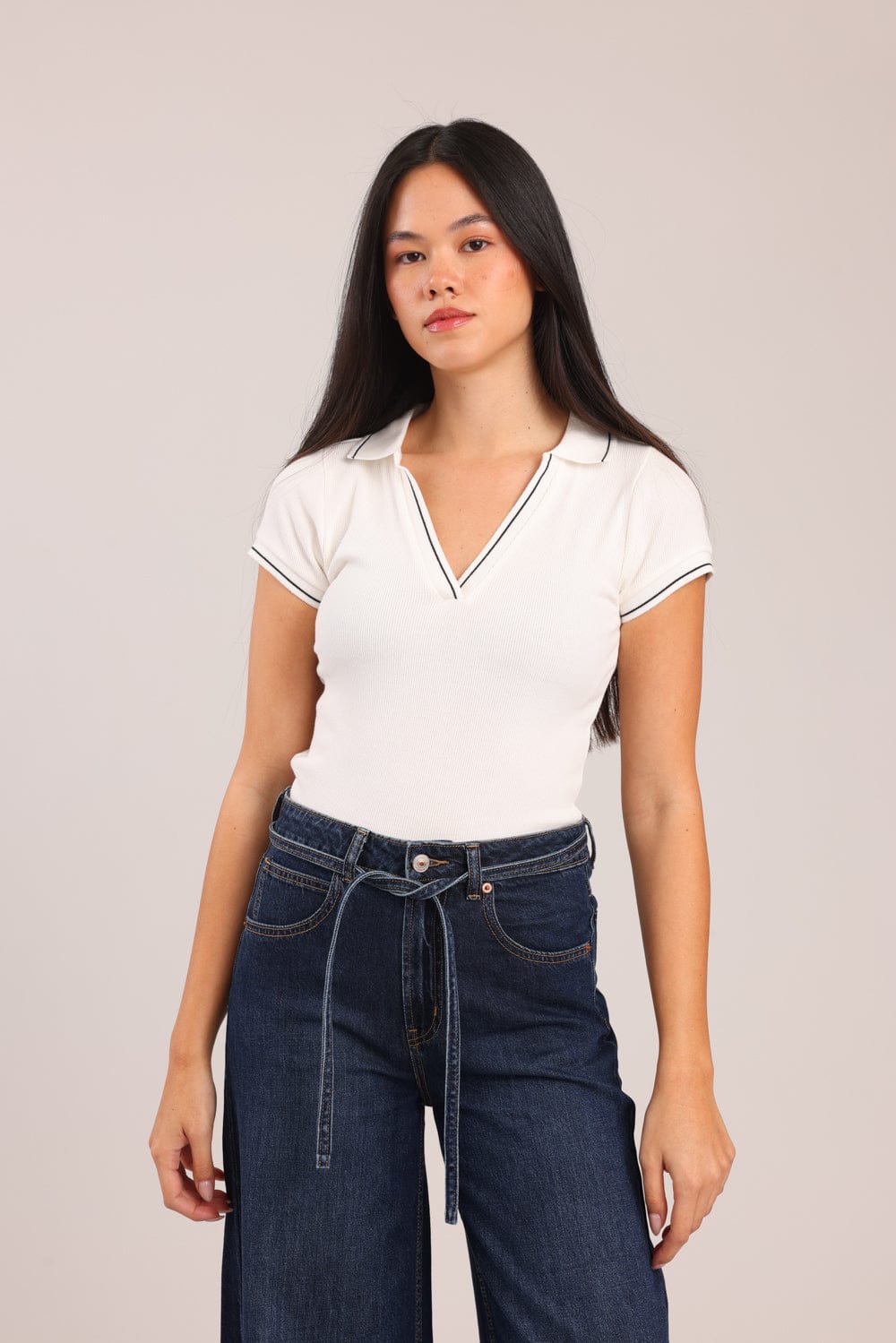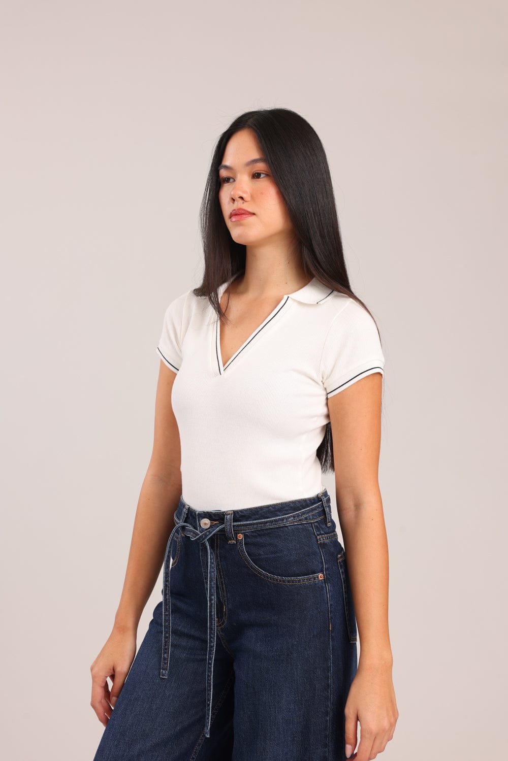 חולצת V עמוק , מבד ריב עם צווארון.