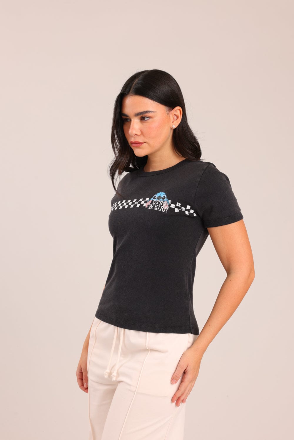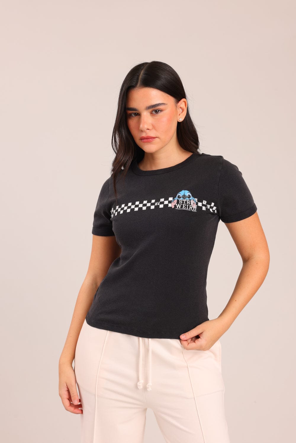 חולצת טישרט ממותגת סטיץ' מבית דיסני עם הדפס קדמי.