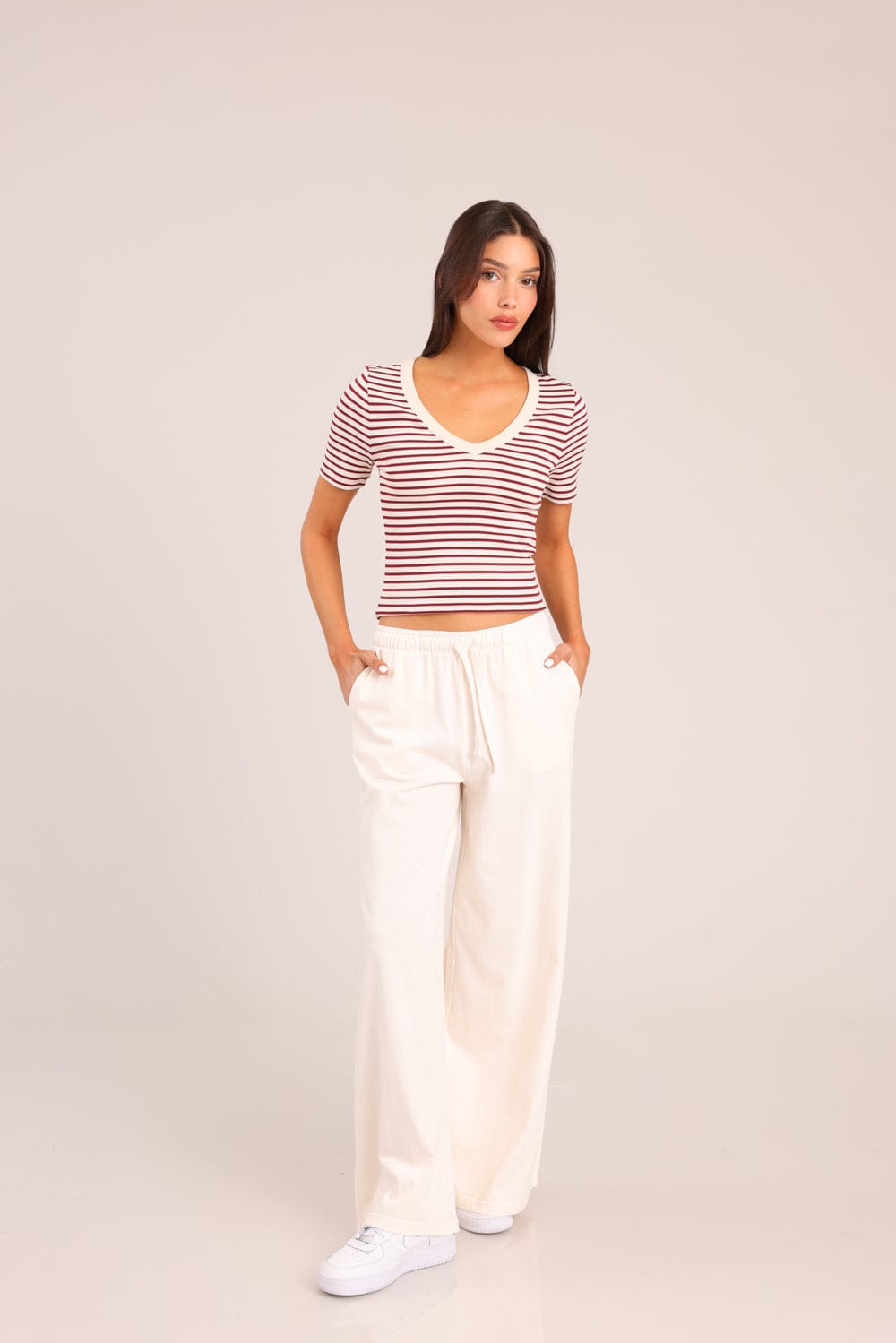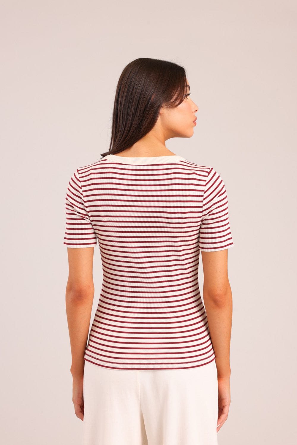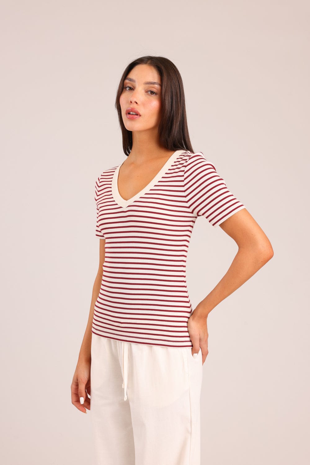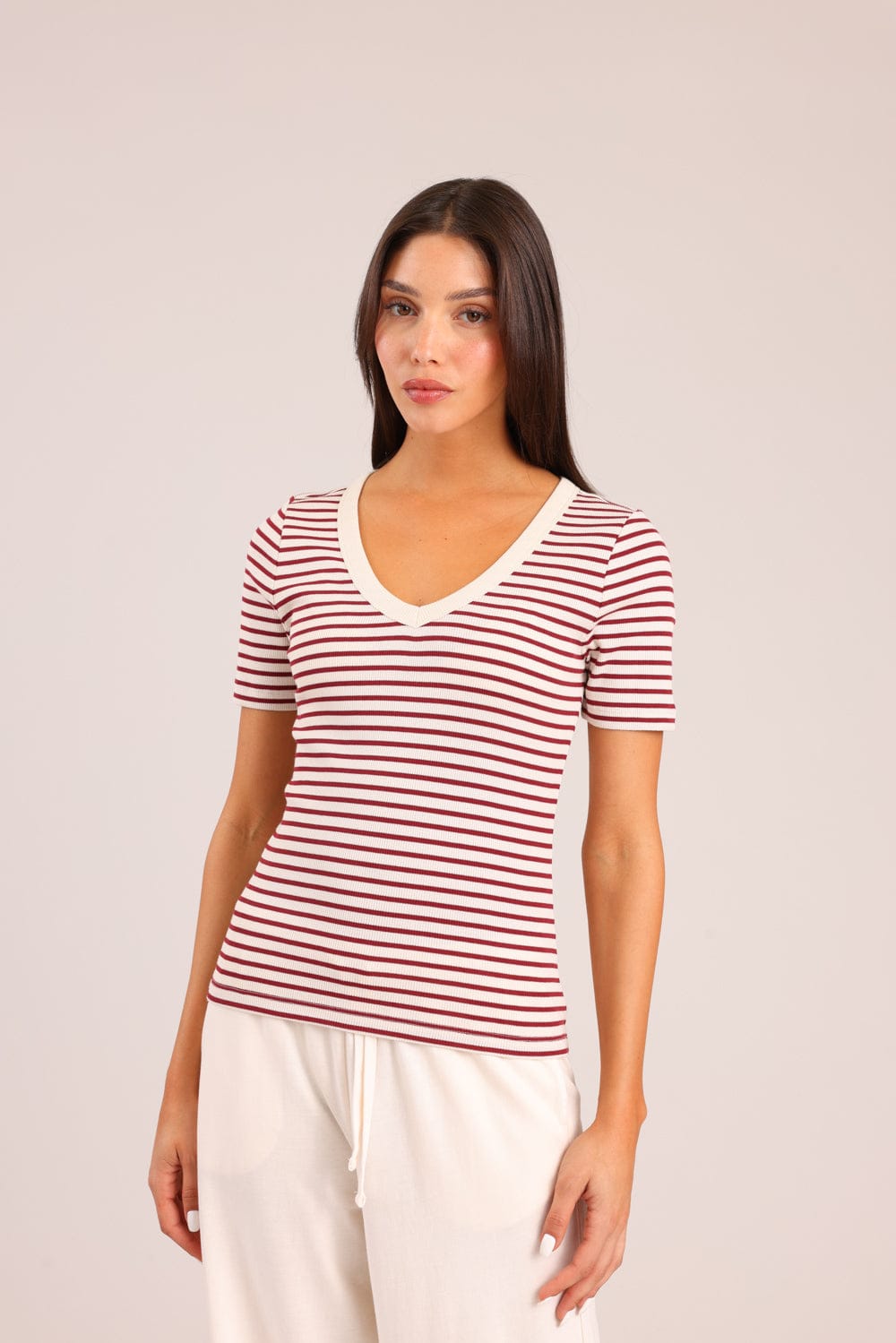 חולצת טריקו קצרה פסים עם צווארון מודגש
