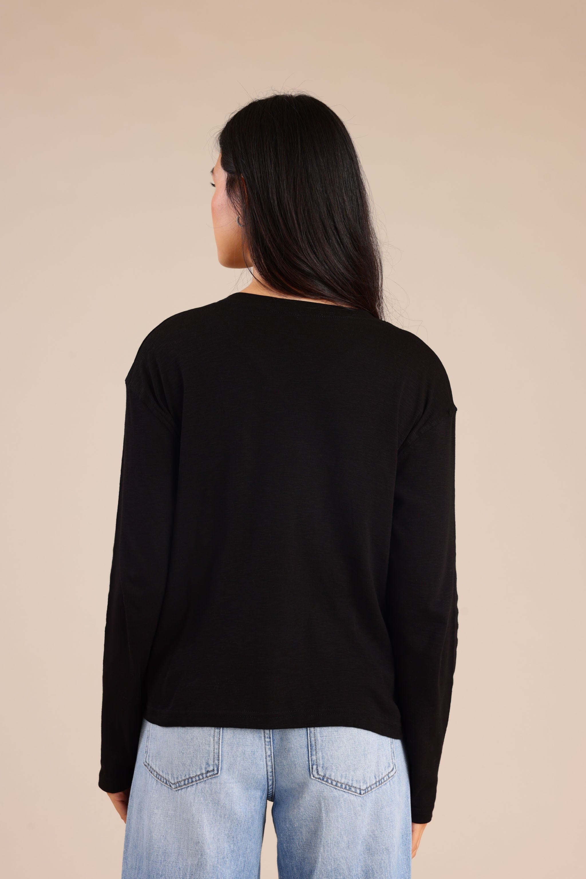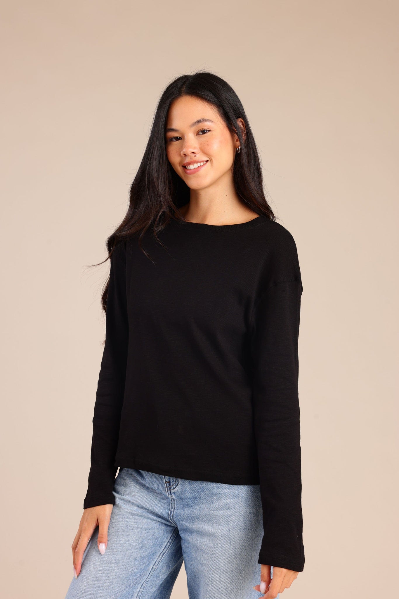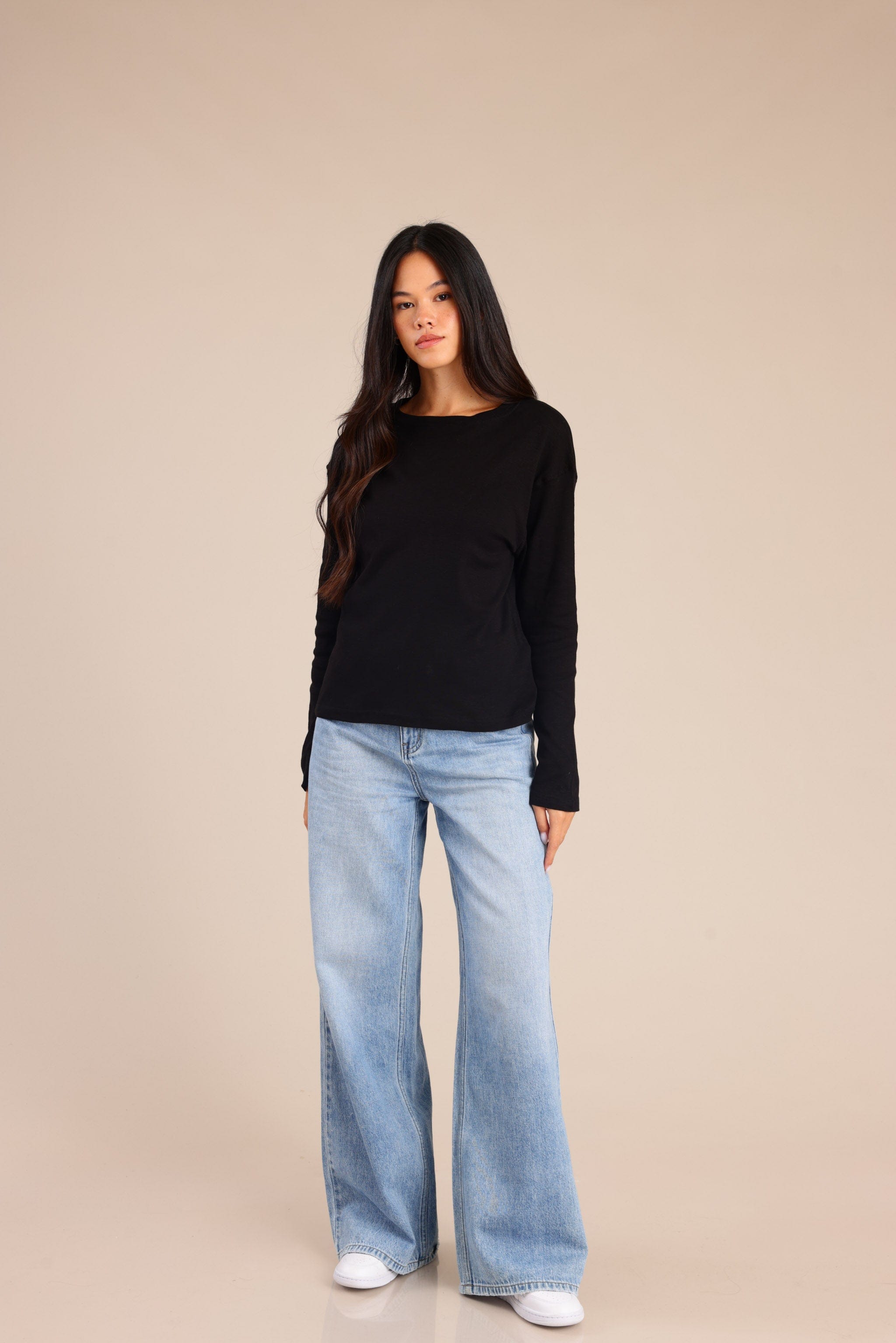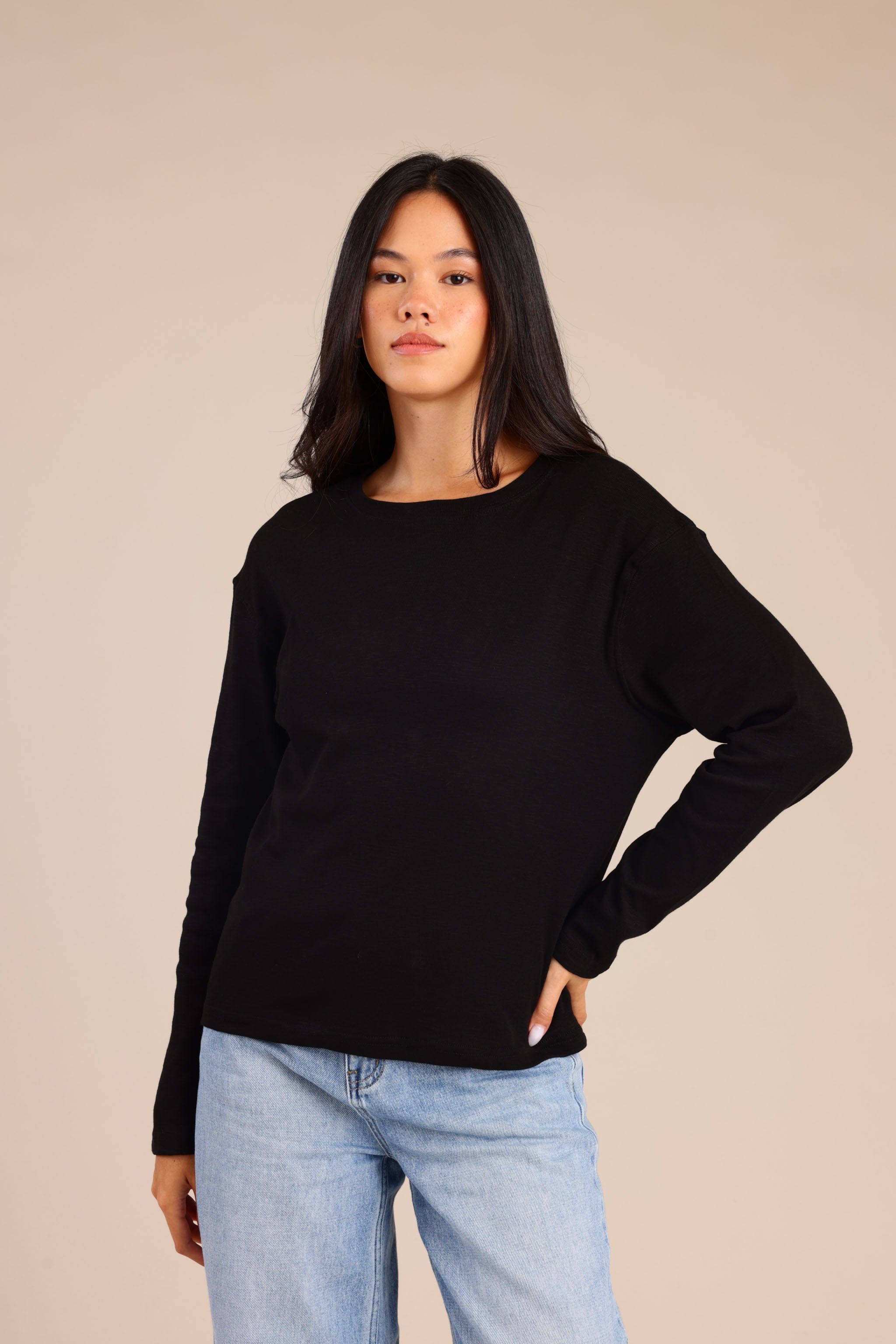 חולצת בסיס עם שרוולים ארוכים וגזרה נוחה מתאימה לשילוב יומיומי ולמראה קז׳ואל נקי