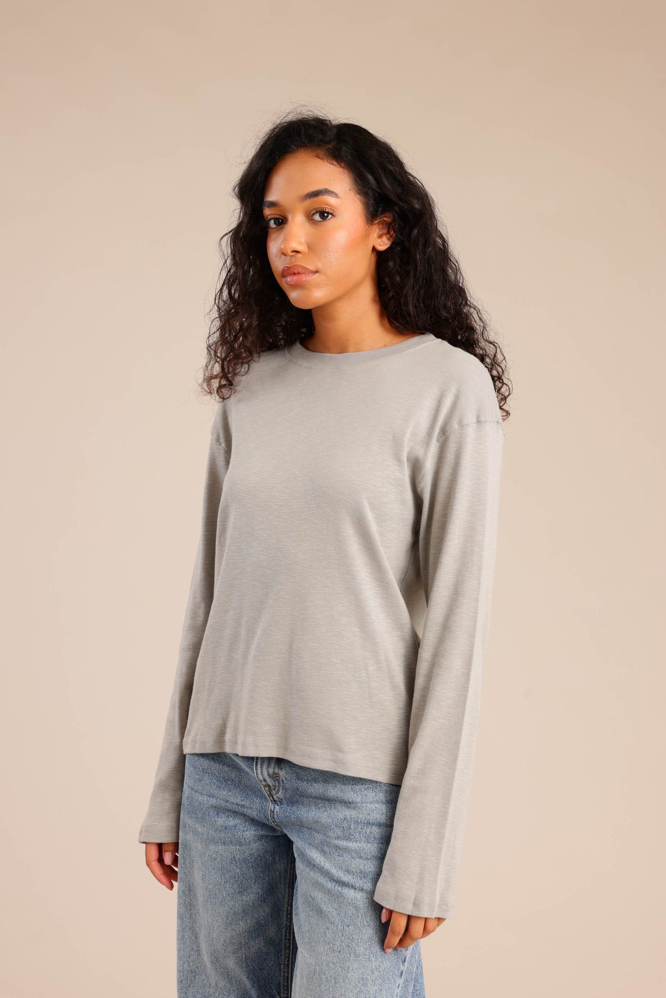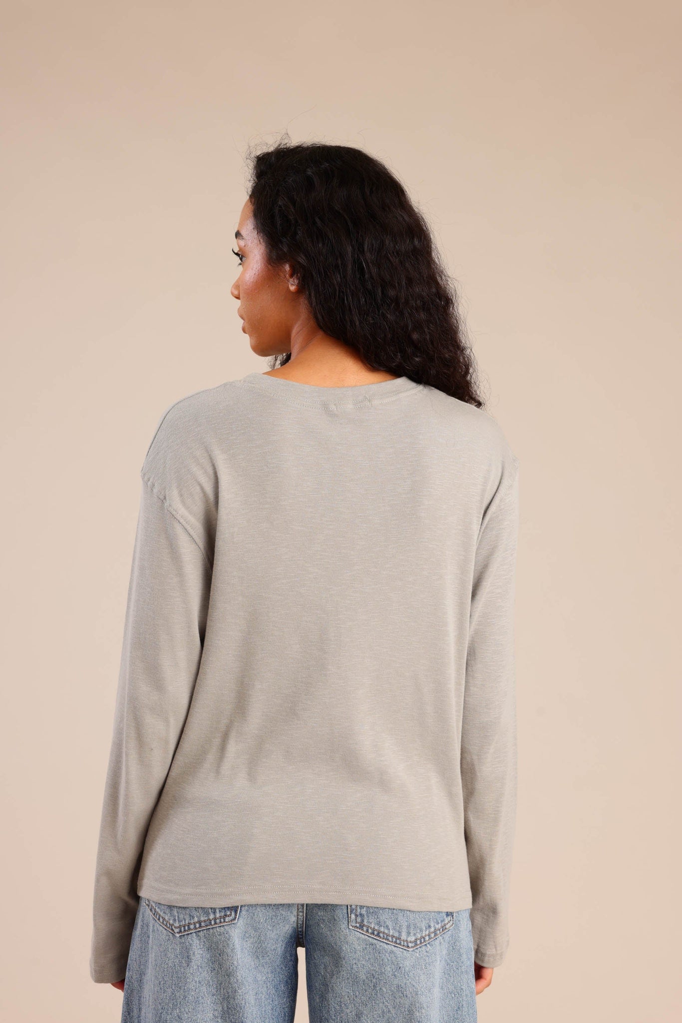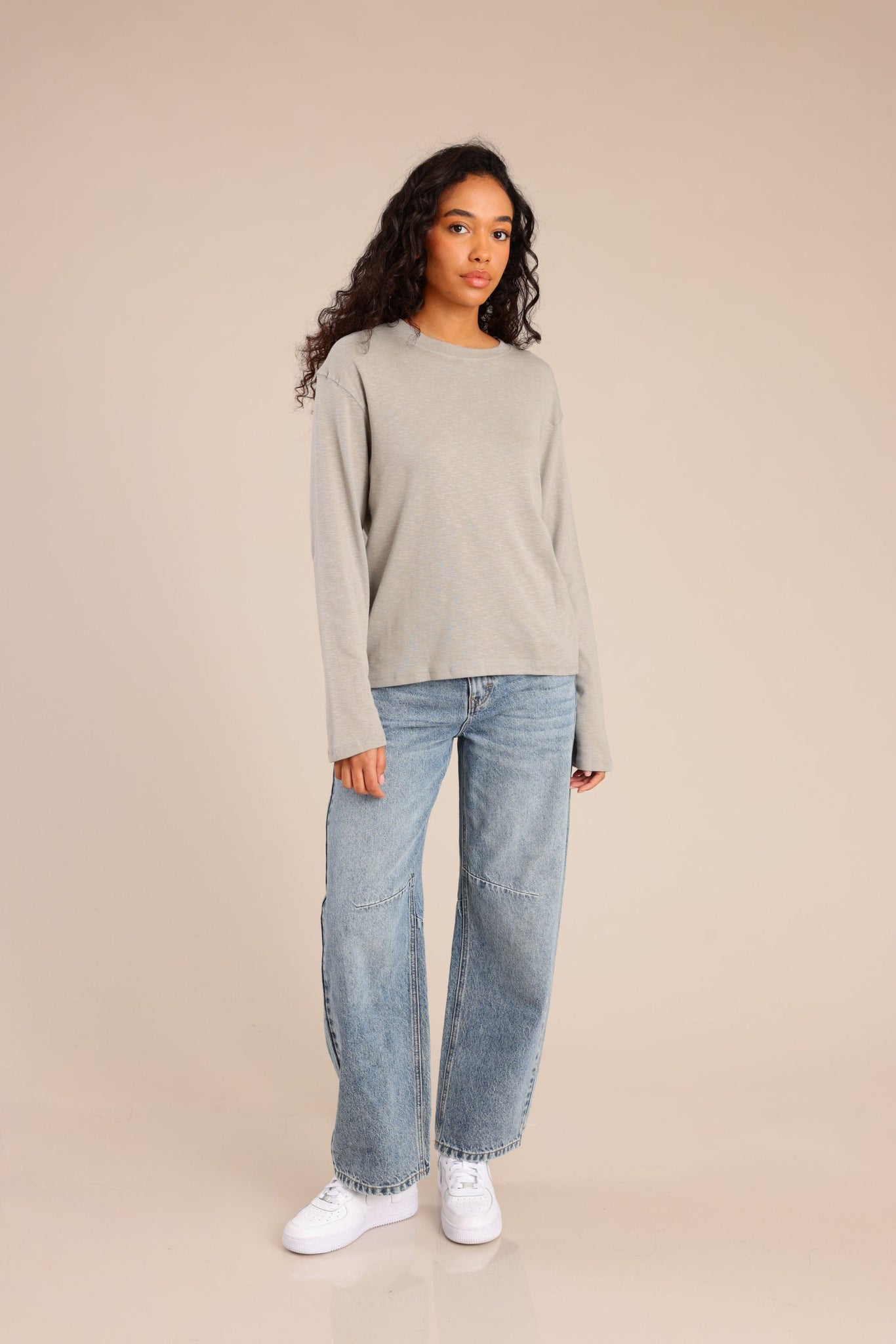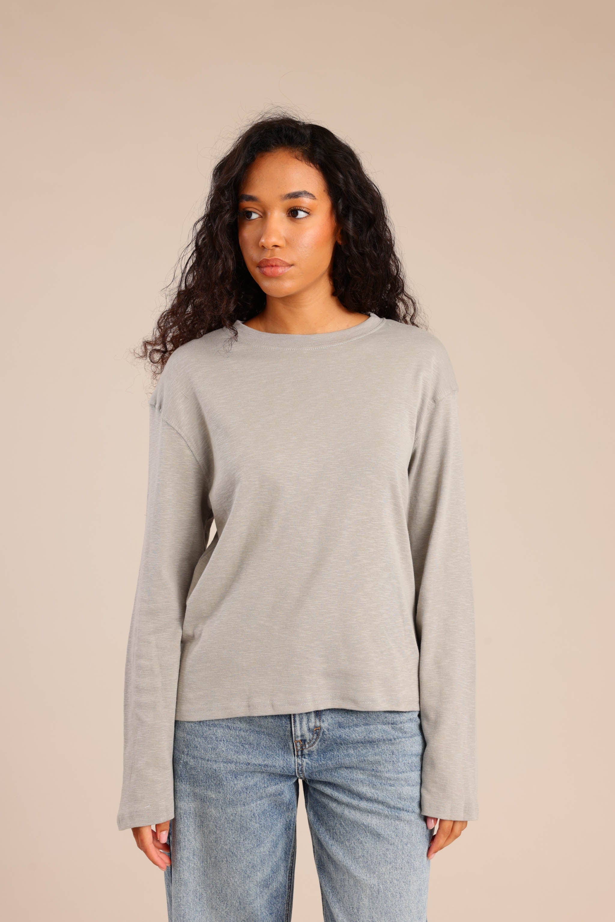 חולצת בסיס עם שרוולים ארוכים וגזרה נוחה מתאימה לשילוב יומיומי ולמראה קז׳ואל נקי