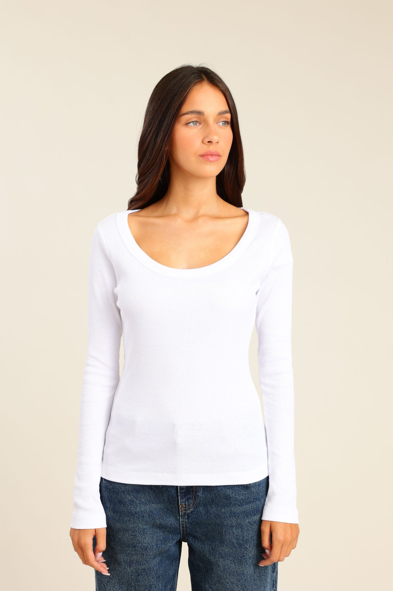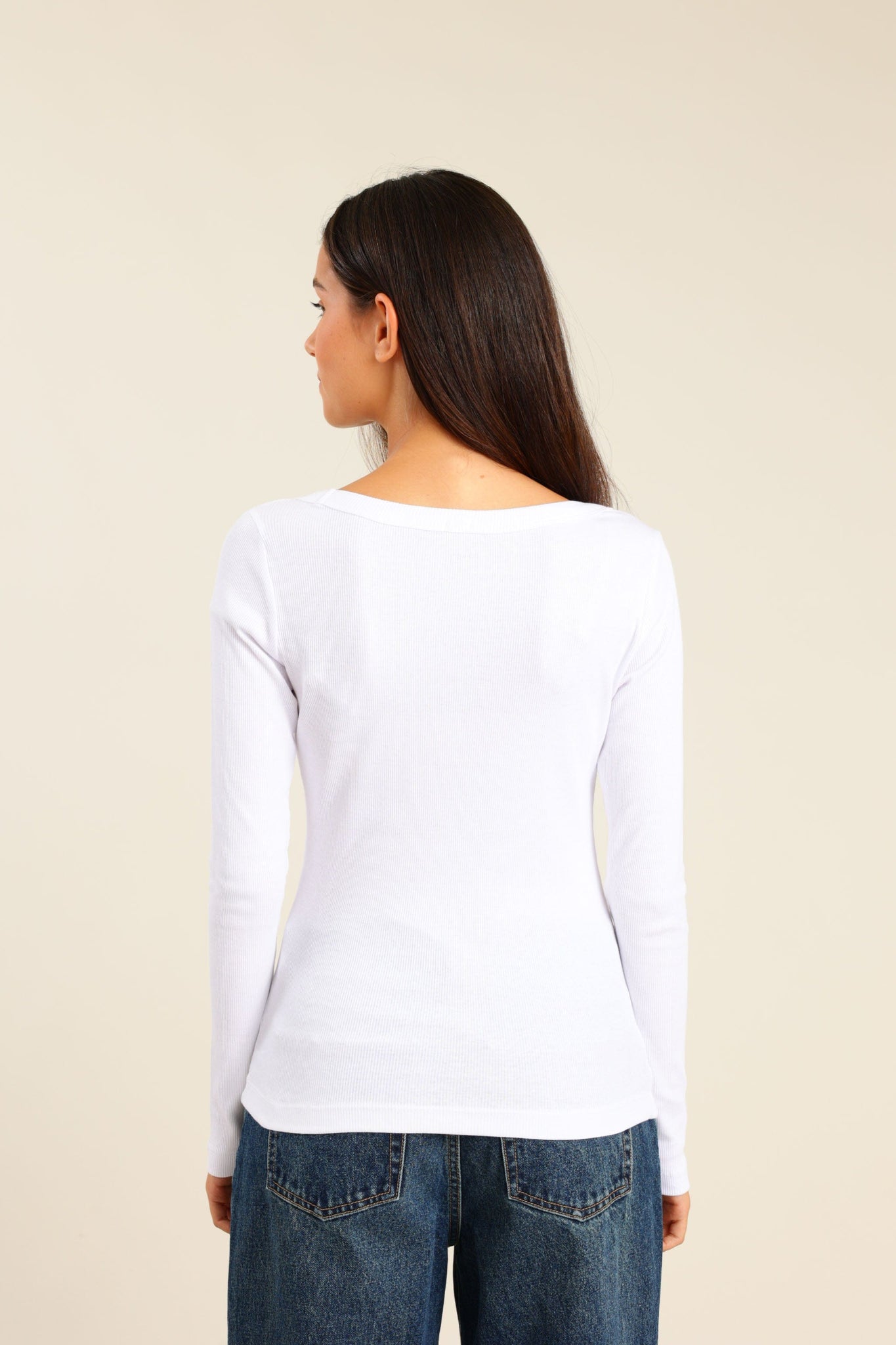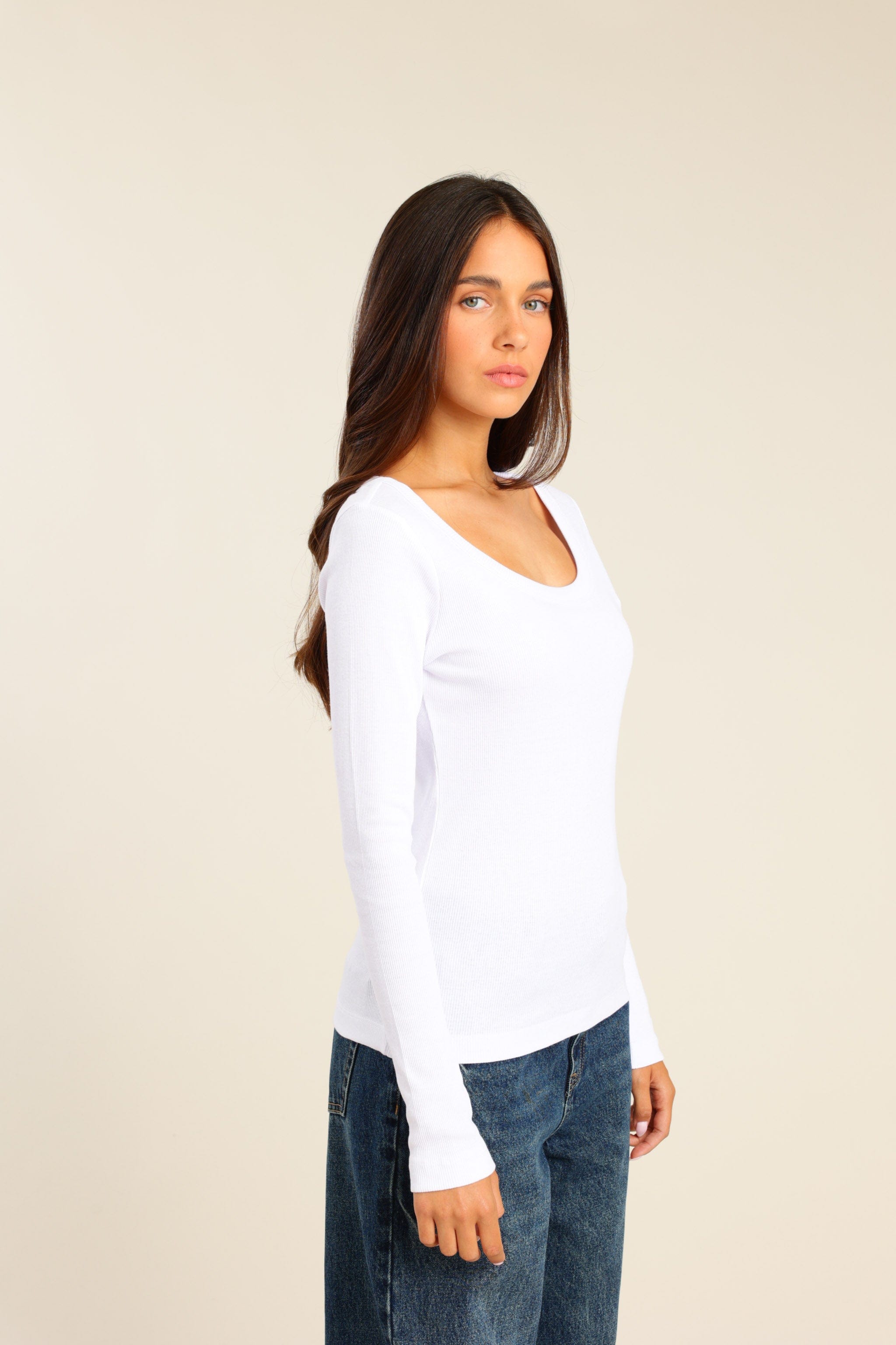 חולצת ריב נשית עם שרוולים ארוכים ומפתח עגול רחב