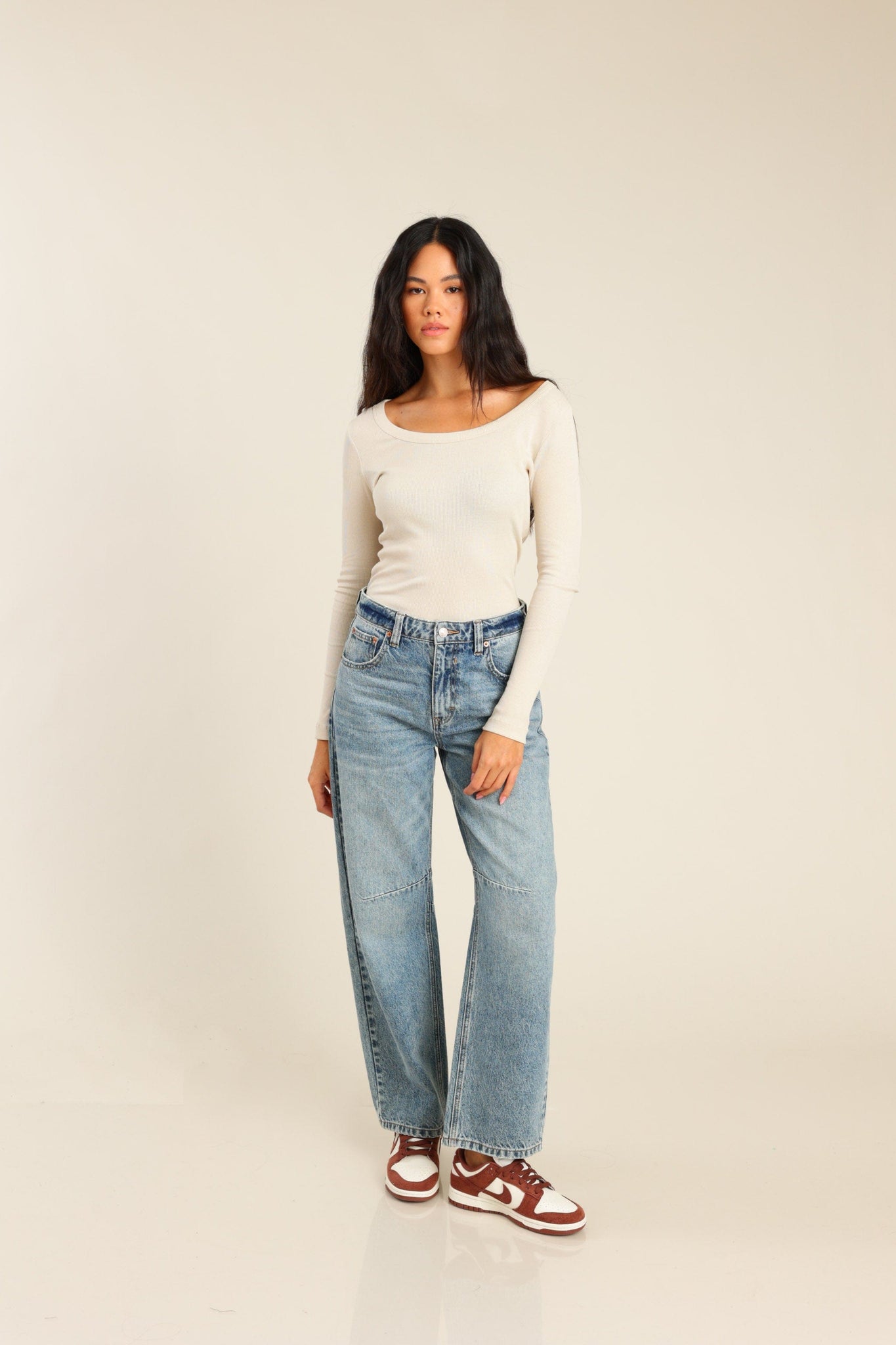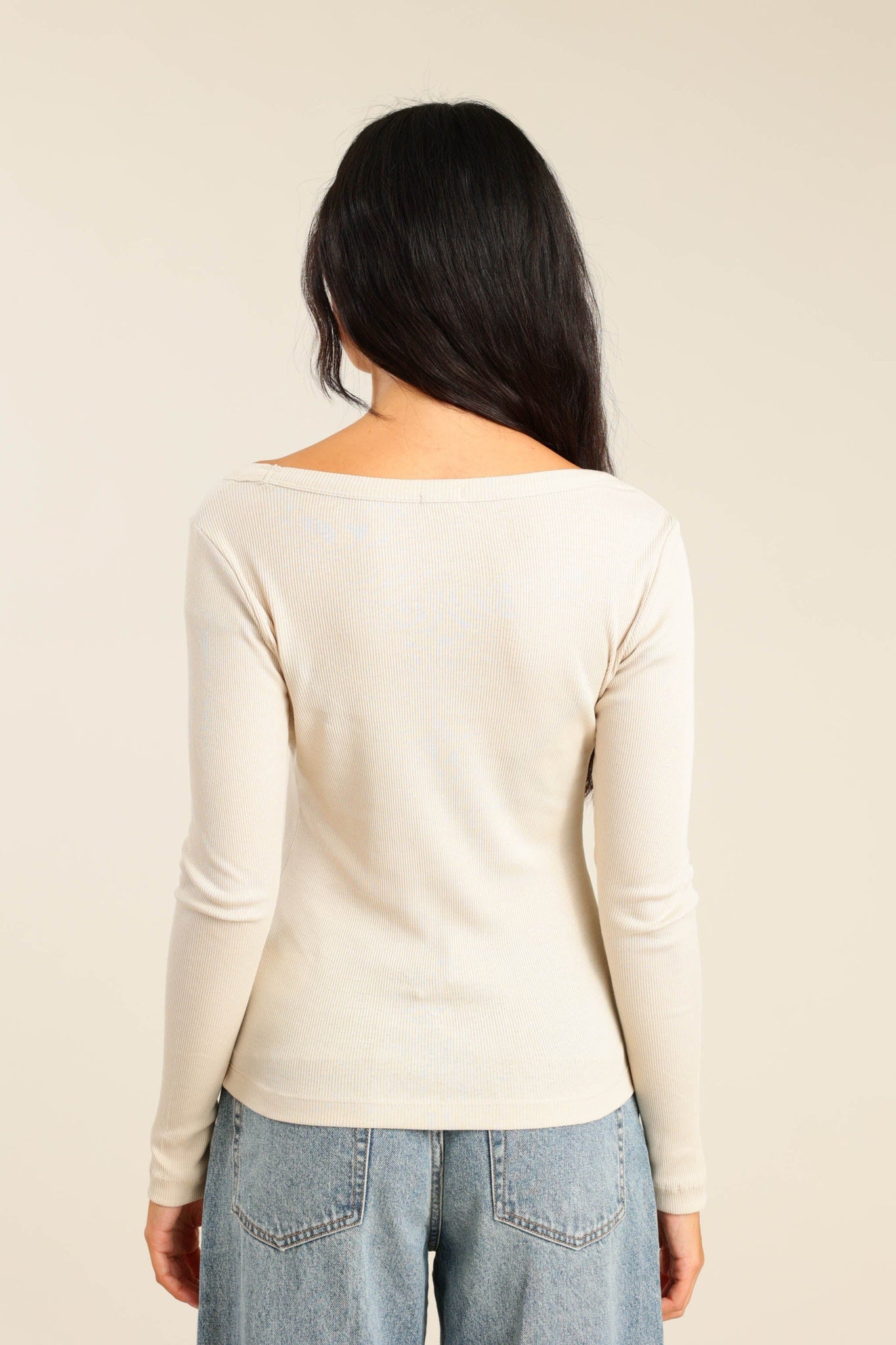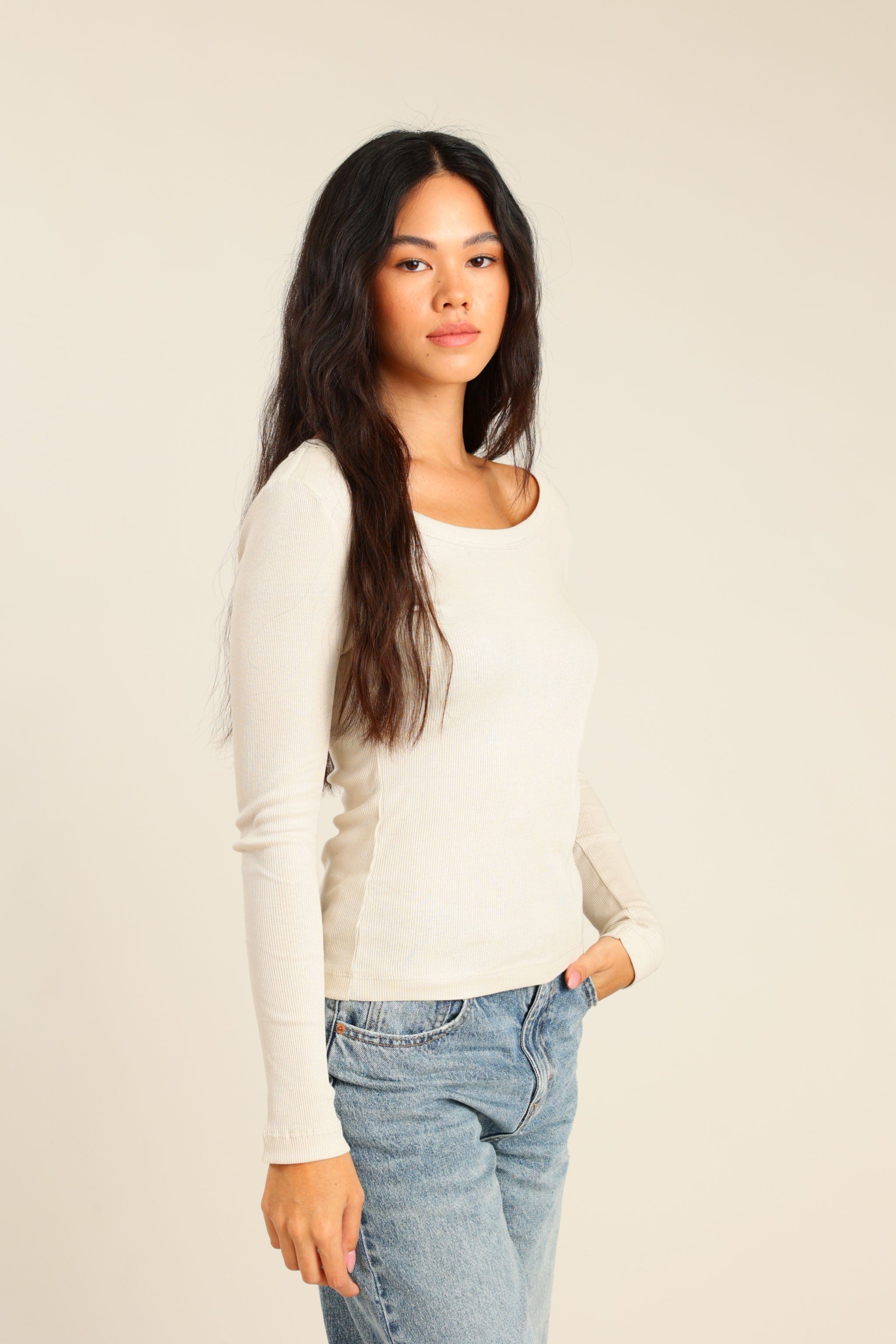 חולצת ריב נשית עם שרוולים ארוכים ומפתח עגול רחב