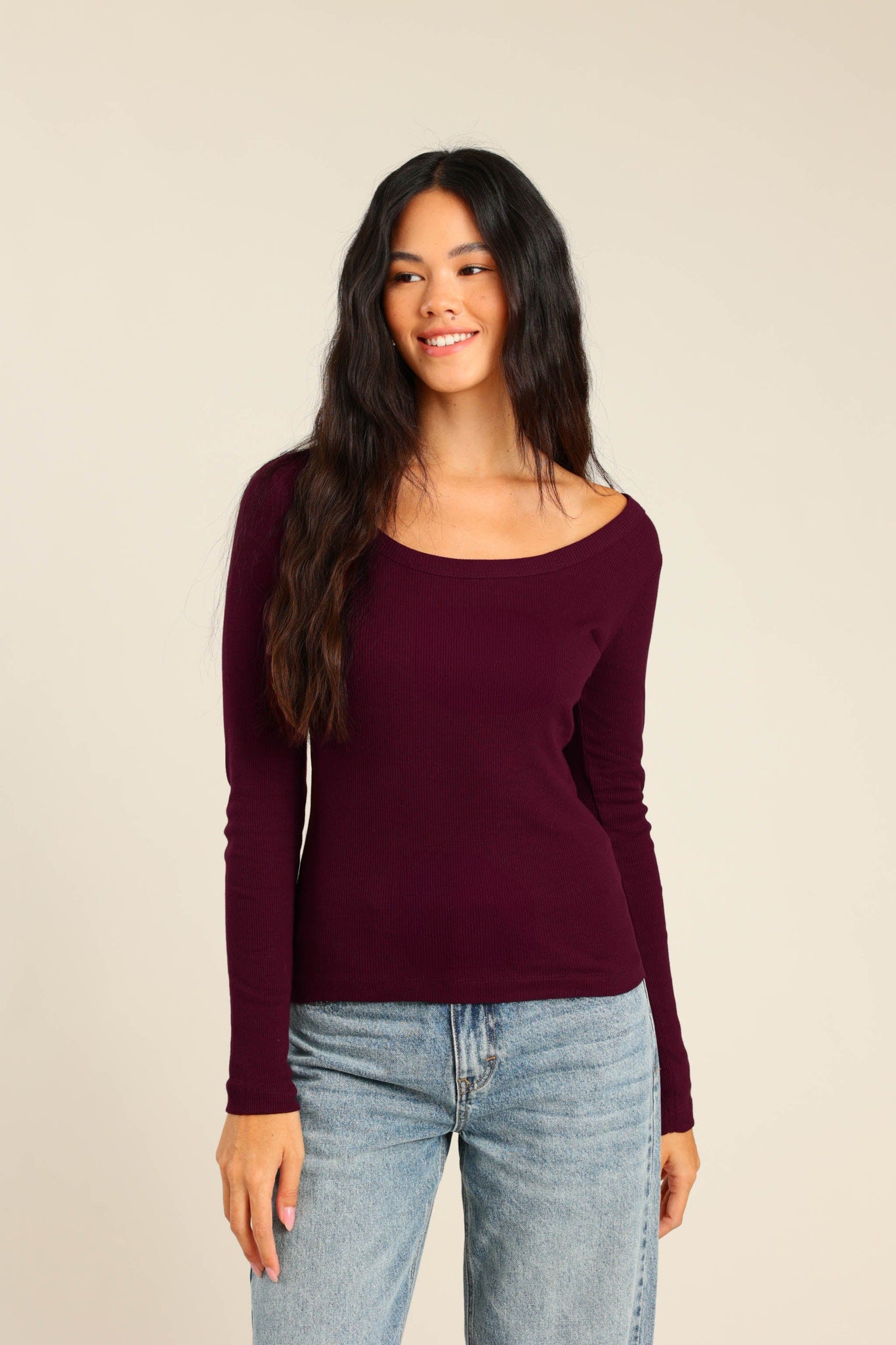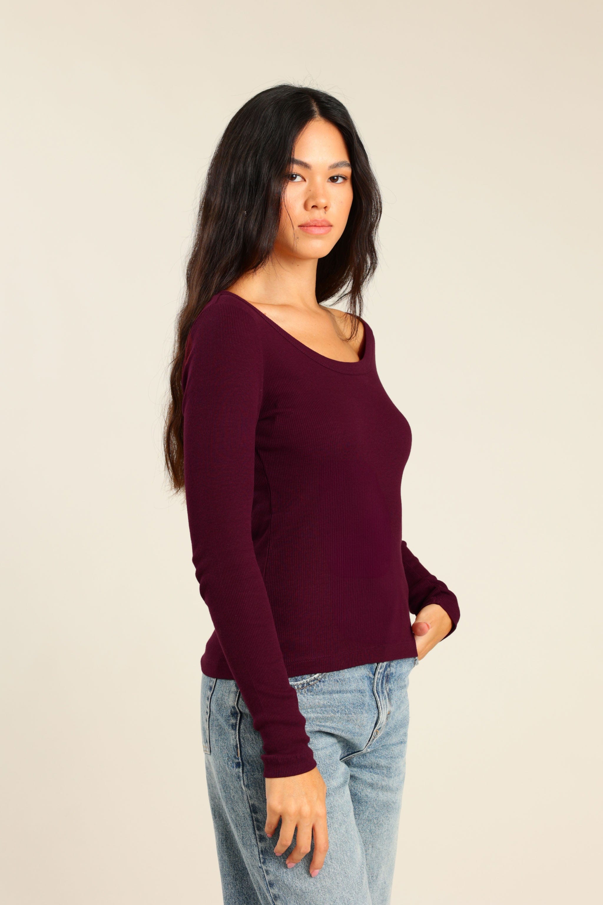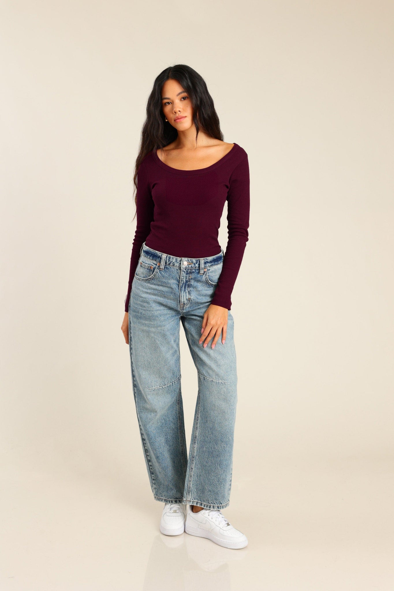חולצת ריב נשית עם שרוולים ארוכים ומפתח עגול רחב