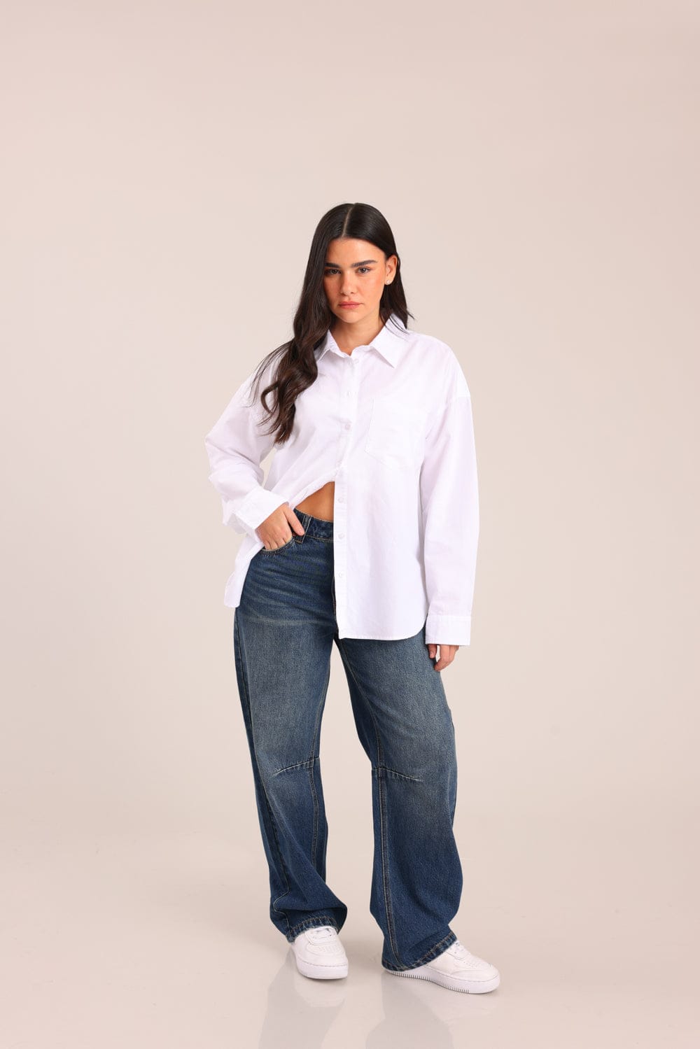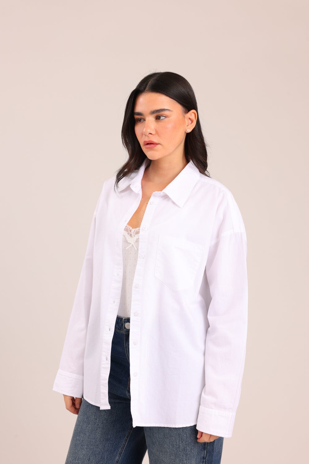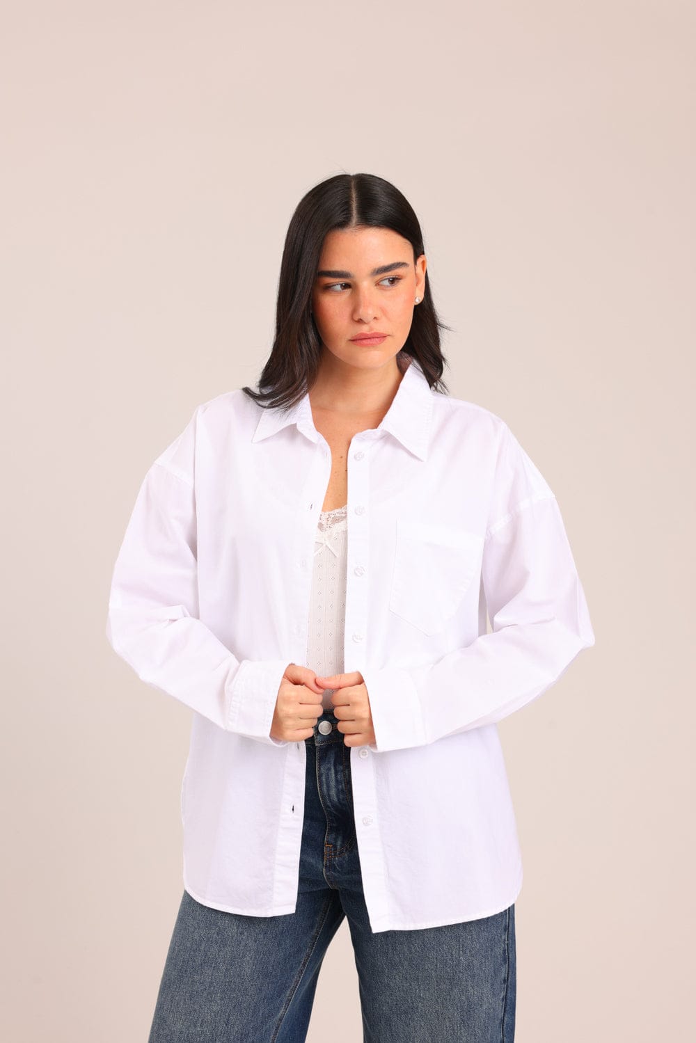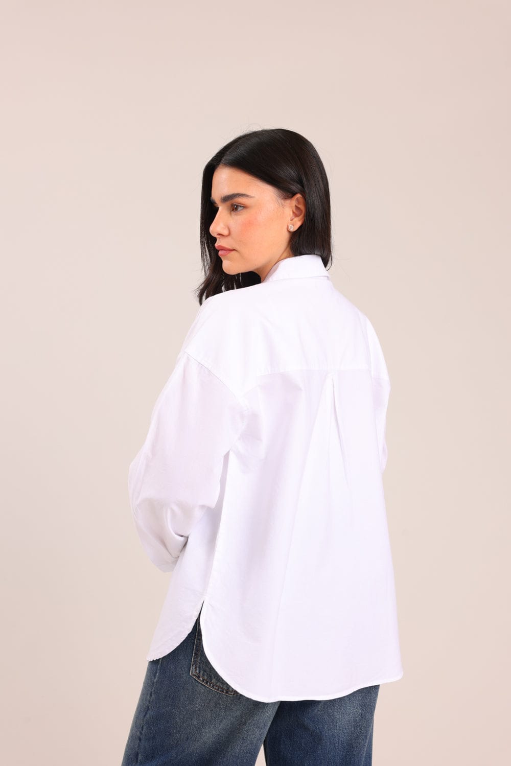 חולצה מכופתרת עם צווארון בגזרה ישרה ושסע בצדדים.