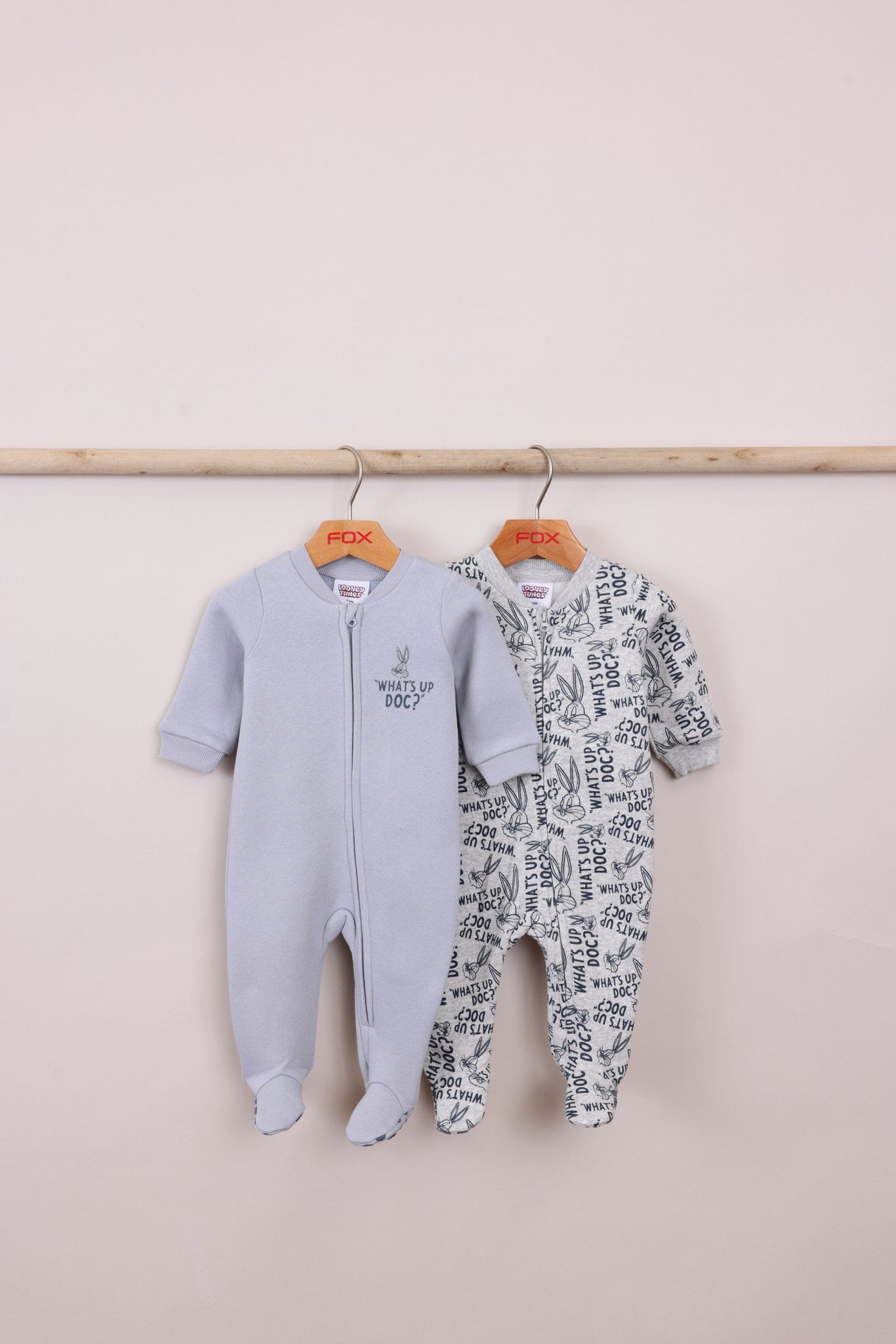 מארז לוני טונס לתינוק כולל שני אוברולים ארוכים עם רוכסן מבד רך ונעים ממותג לוני טונס