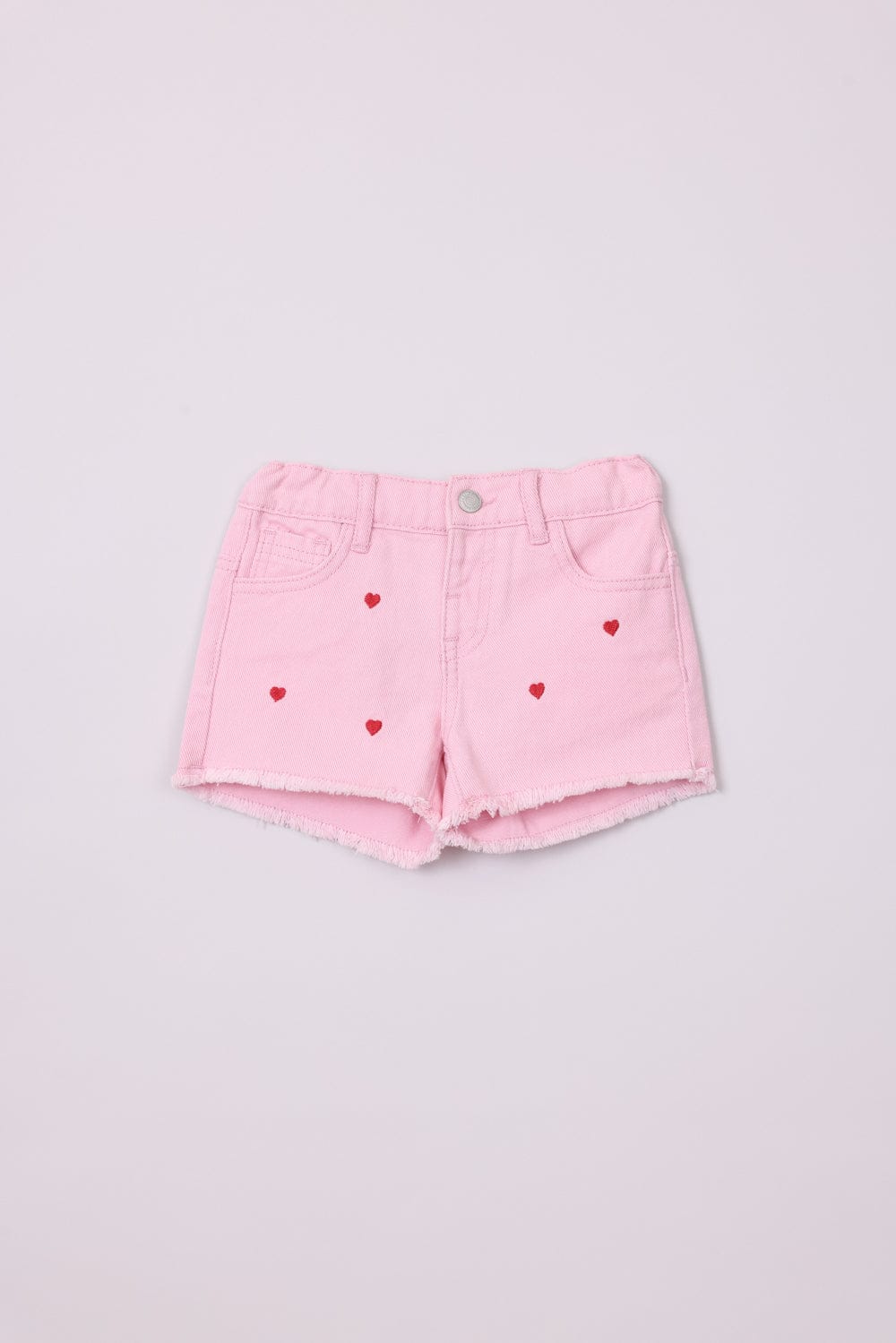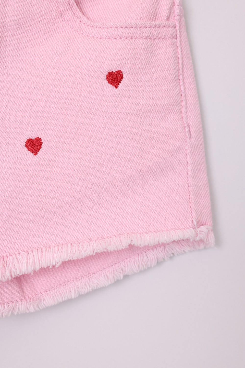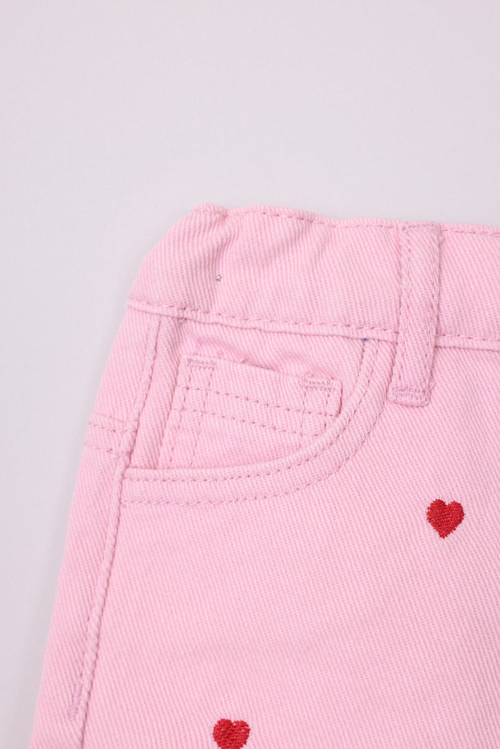מכנסי ג'ינס בנות קצר עם הדפס לבבות