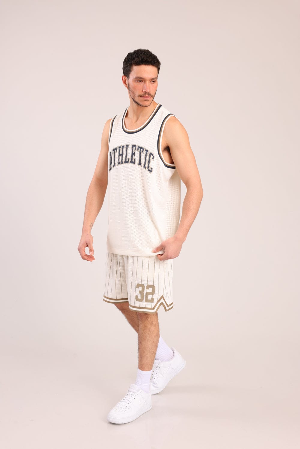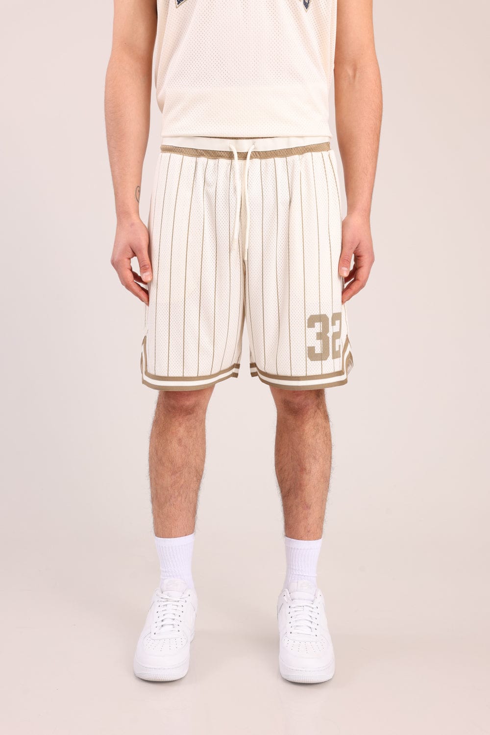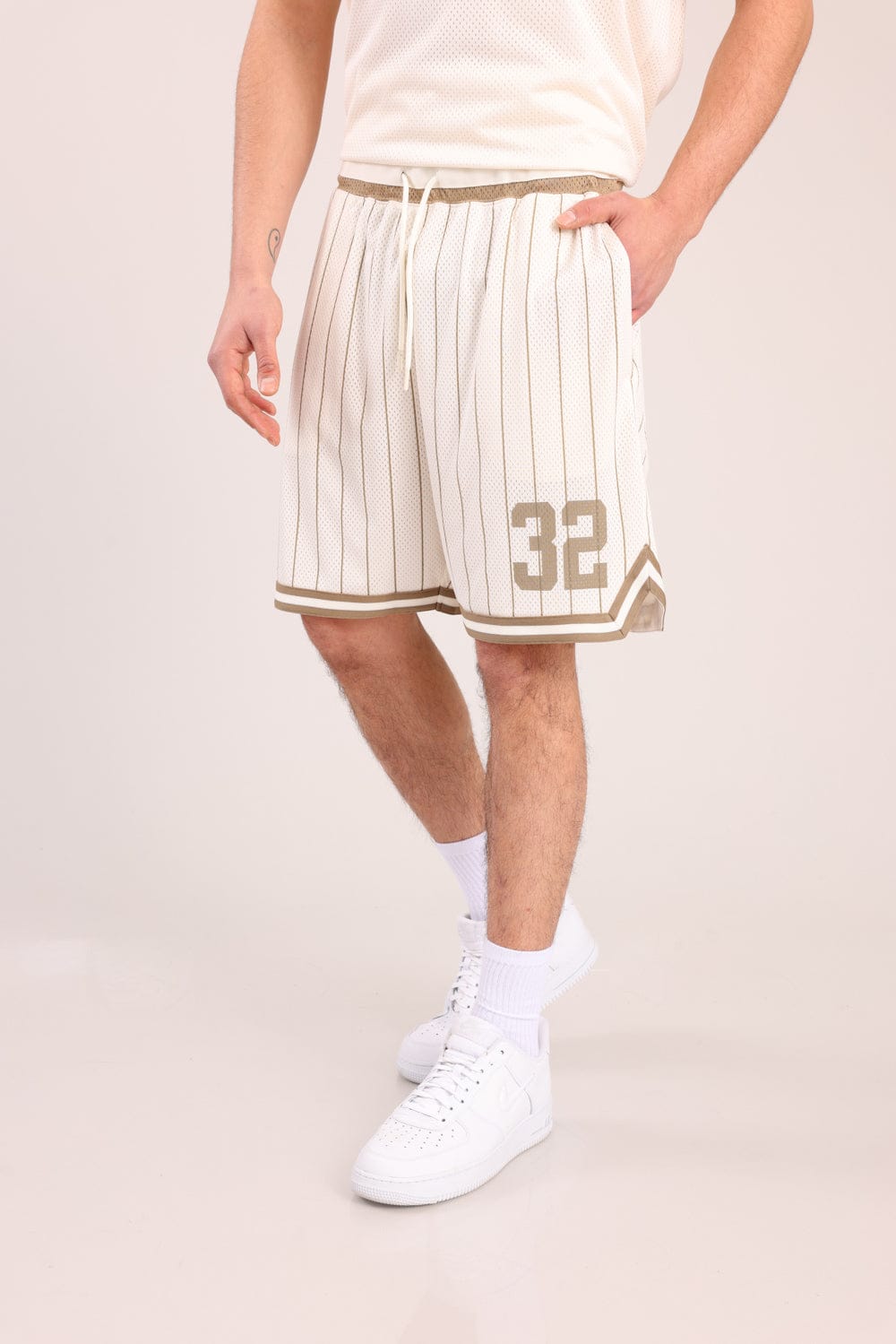 מכנסי כדורסל עם פסים דקים והדפס מספר צדדי.