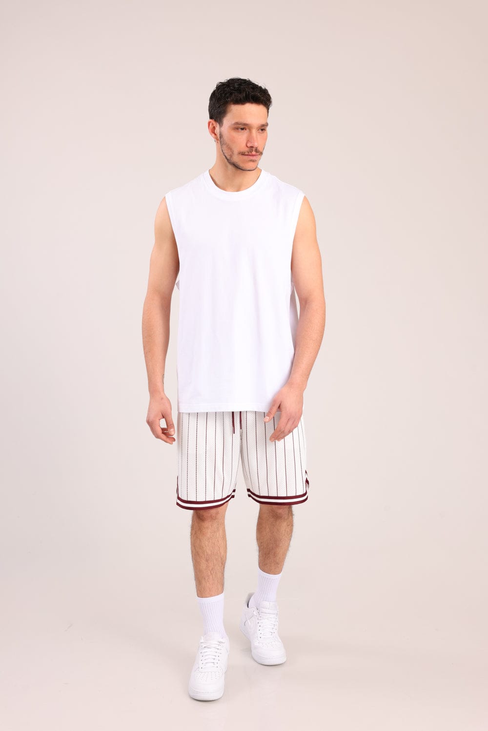 מכנסי כדורסל עם פסים דקים , גומי ושרוך במותן.