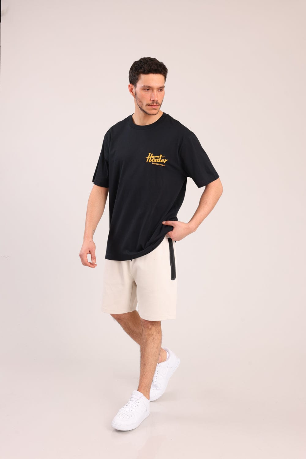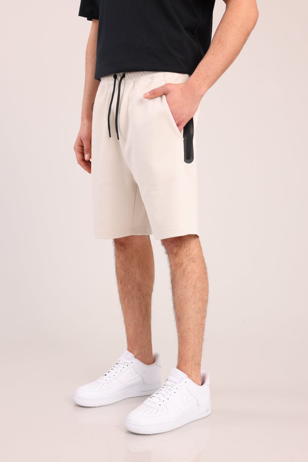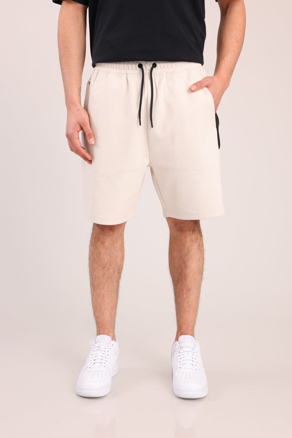 מכנסי טק קצרים עם גומי במותן ושרוך, וכיסים צדדיים עם גימור שחור.