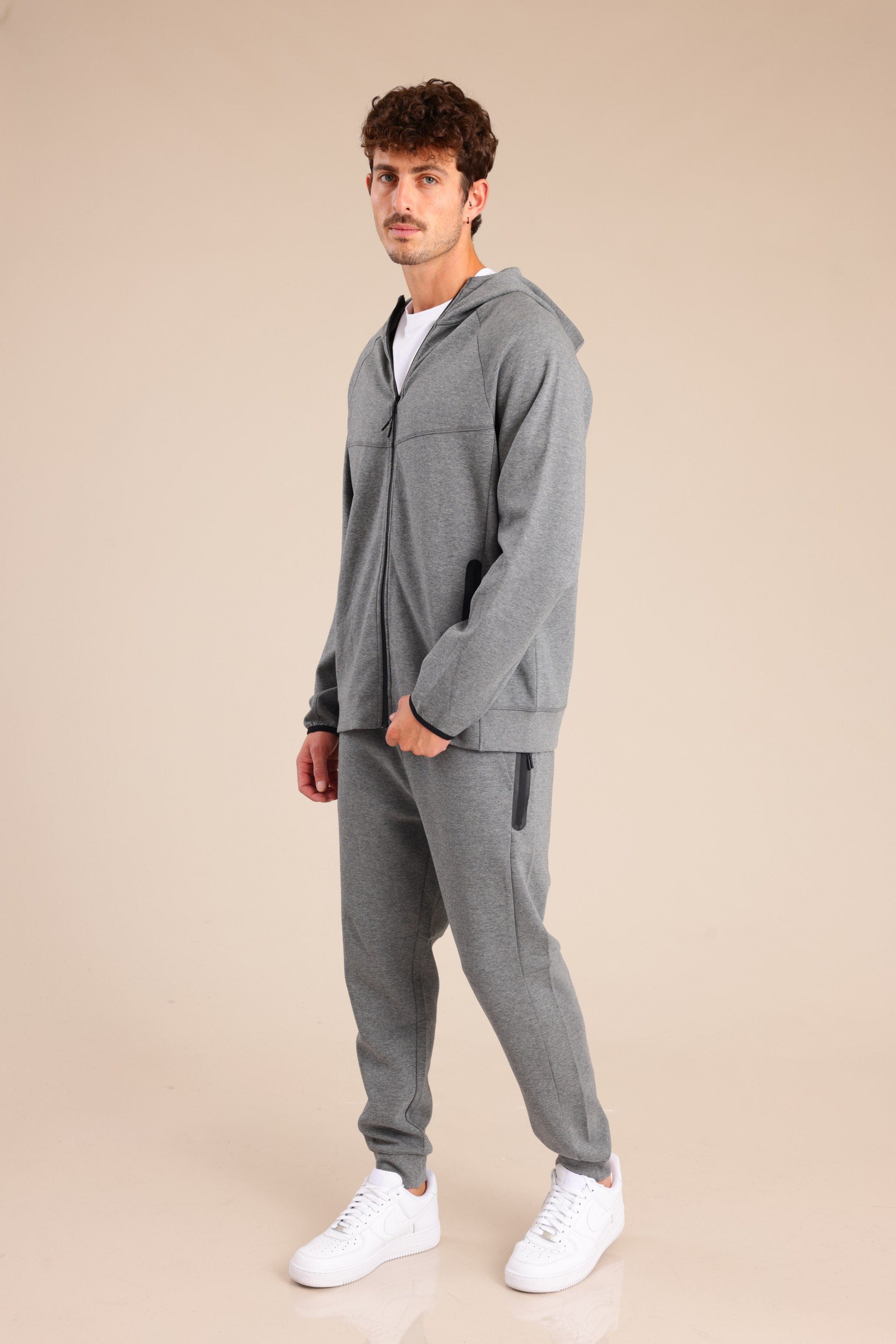 מכנסי טק ארוכים בצבע מלנז כהה