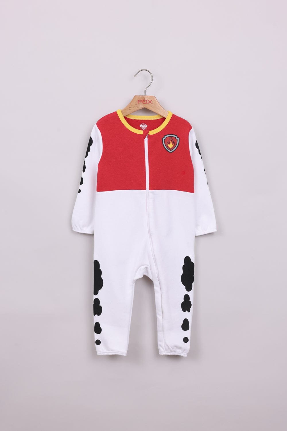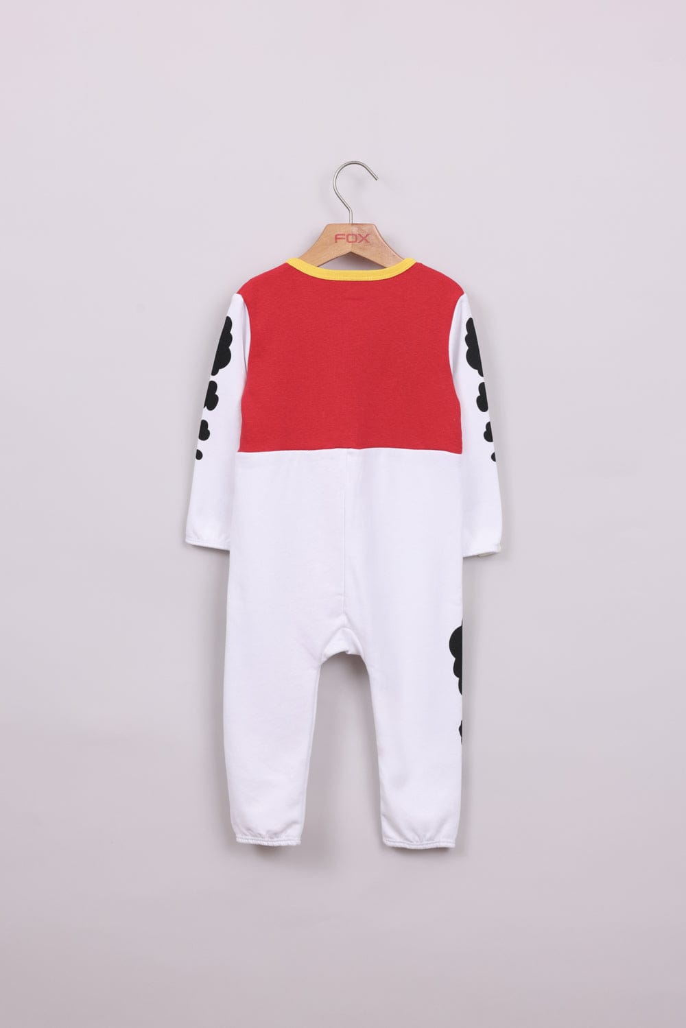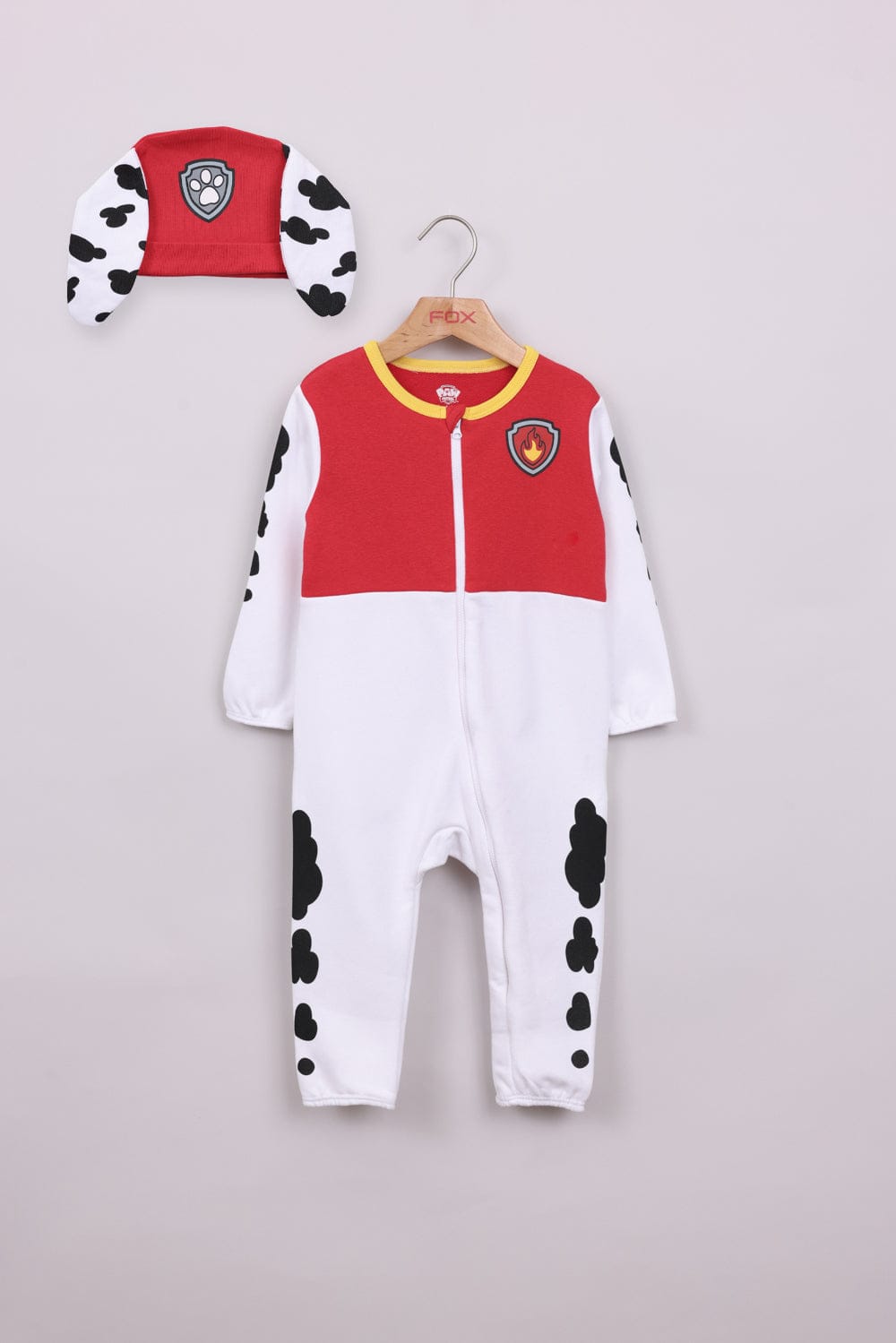 אוברול ממותג מפרץ ההרפתקאות צבעוני עם הדפסים כולל כובע.