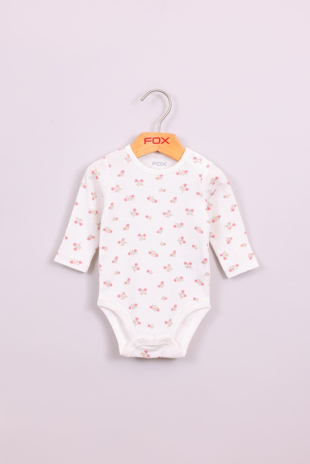 בגד גוף ריב 100% כותנה עם הדפס פרחוני וכפתורים בחלק התחתון.