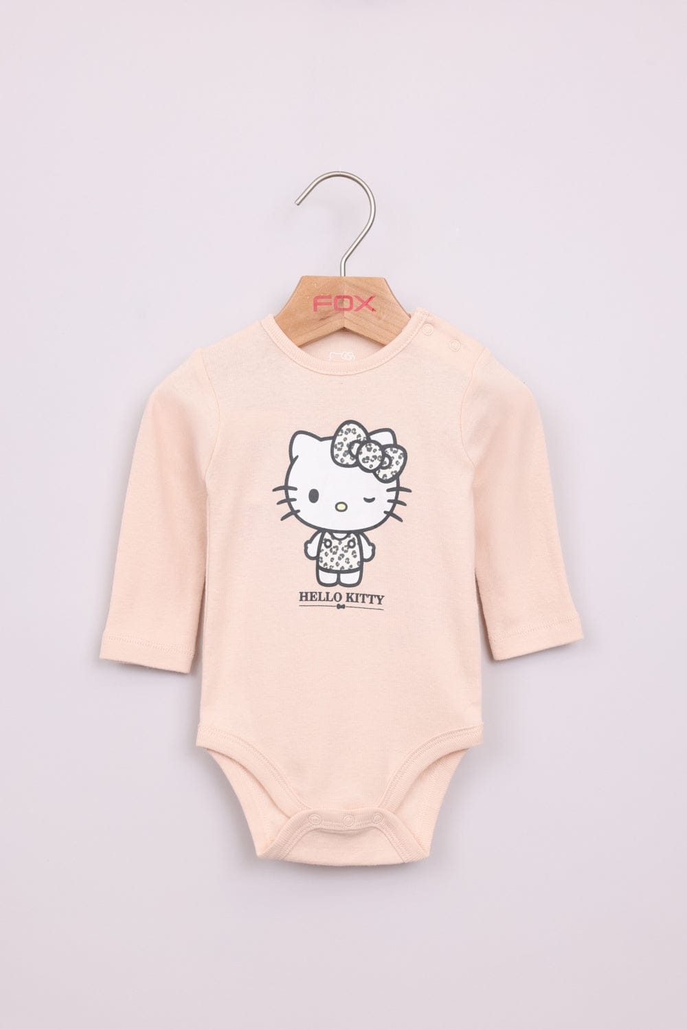 בגד גוף 100% כותנה ממותג הלו קיטי מבד ריב , הדפס קדמי וכתפורים בכתף ובחלק התחתון.