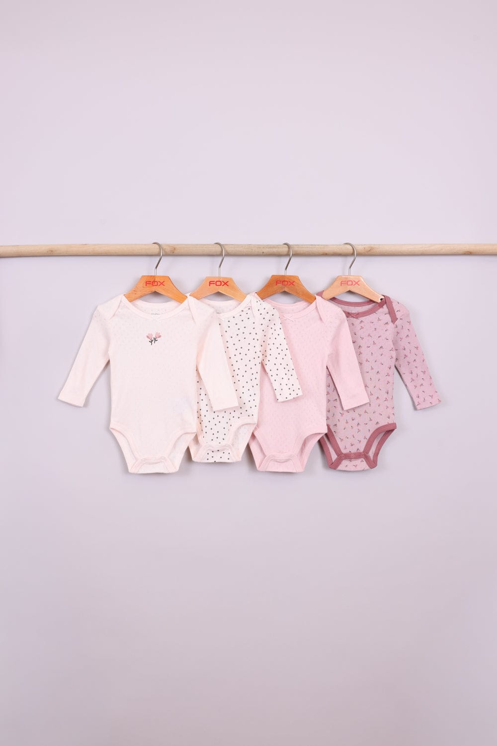 מארז 4 בגדי גוף צבעוניים עם סגירת כפתורים בחלק התחתון.