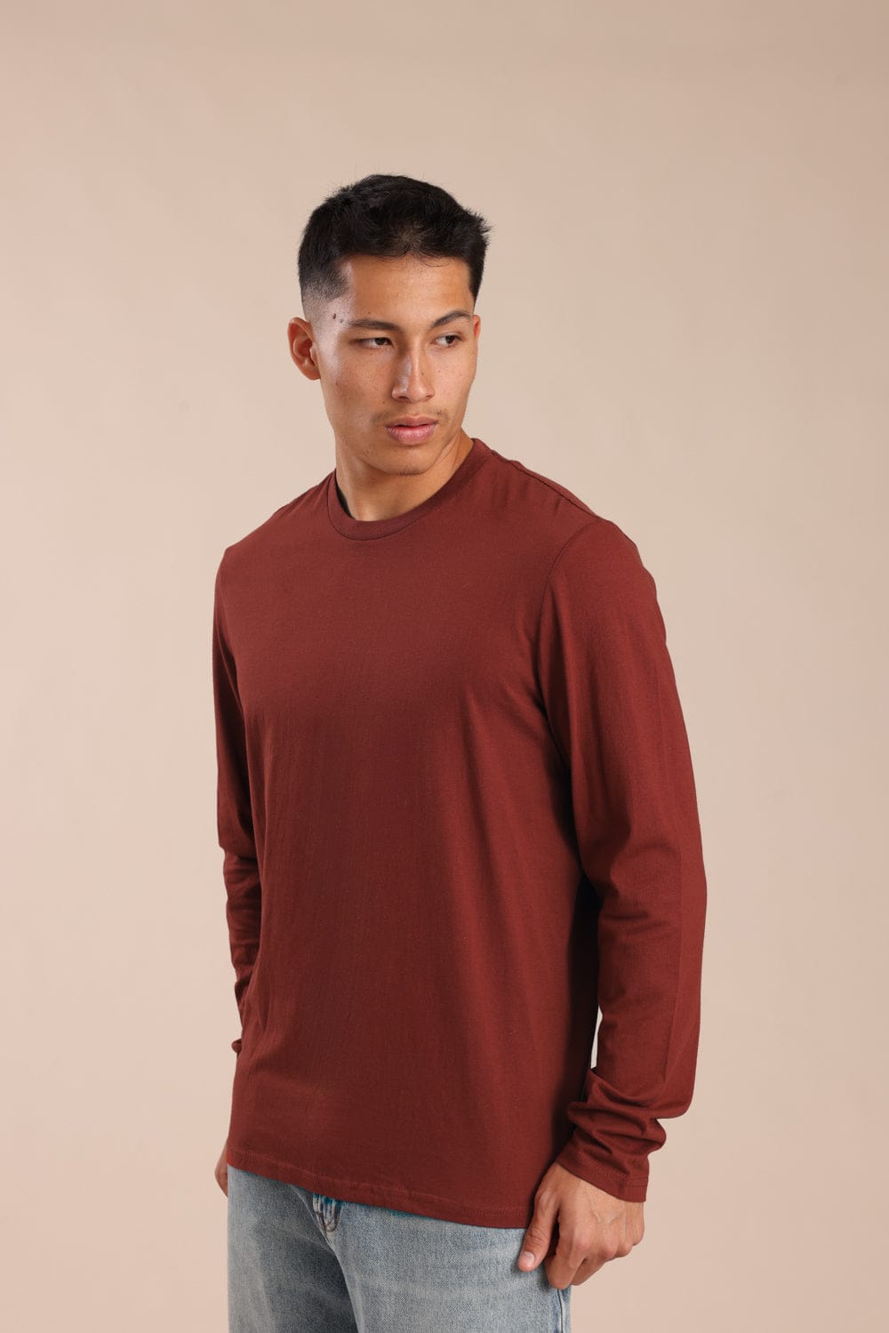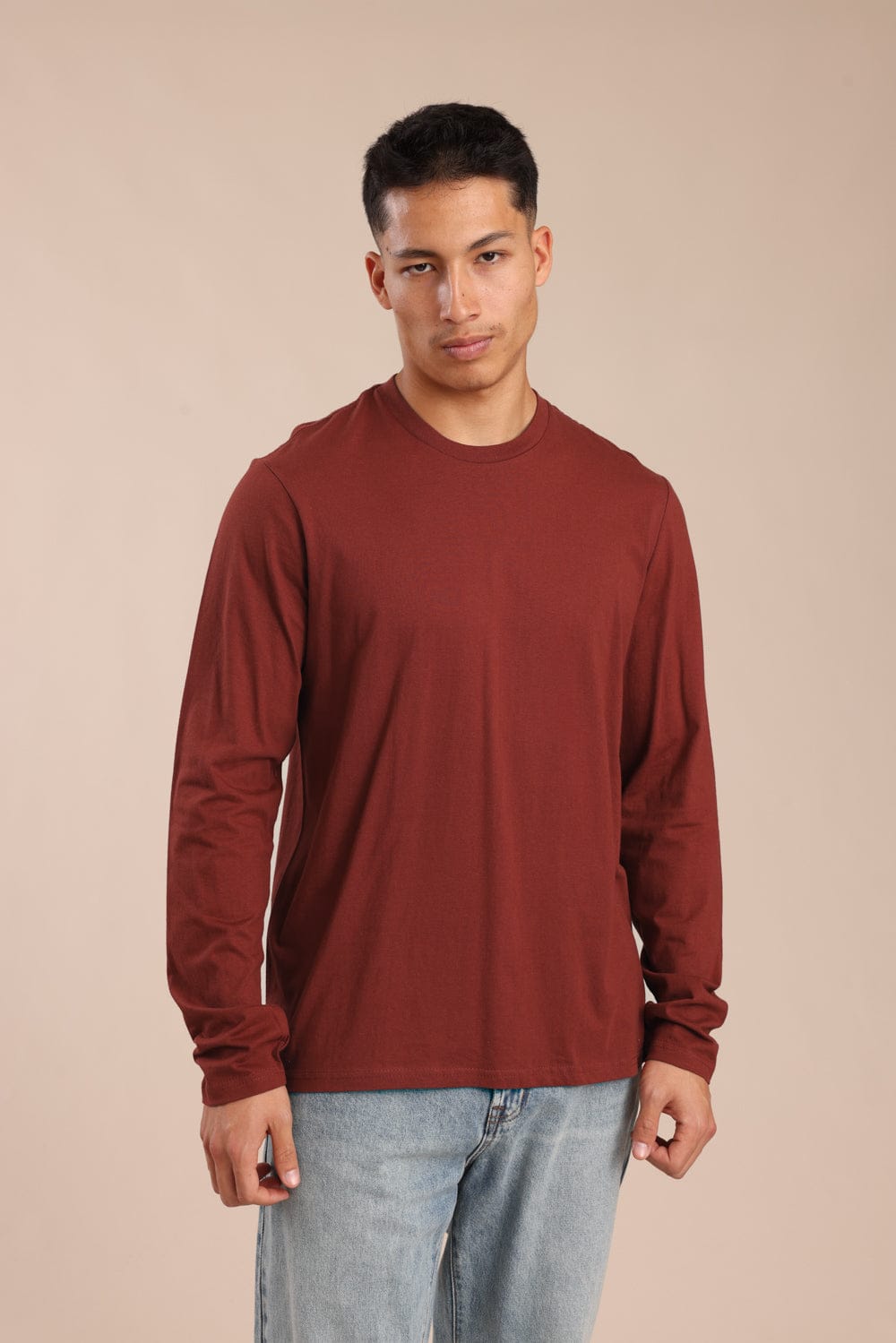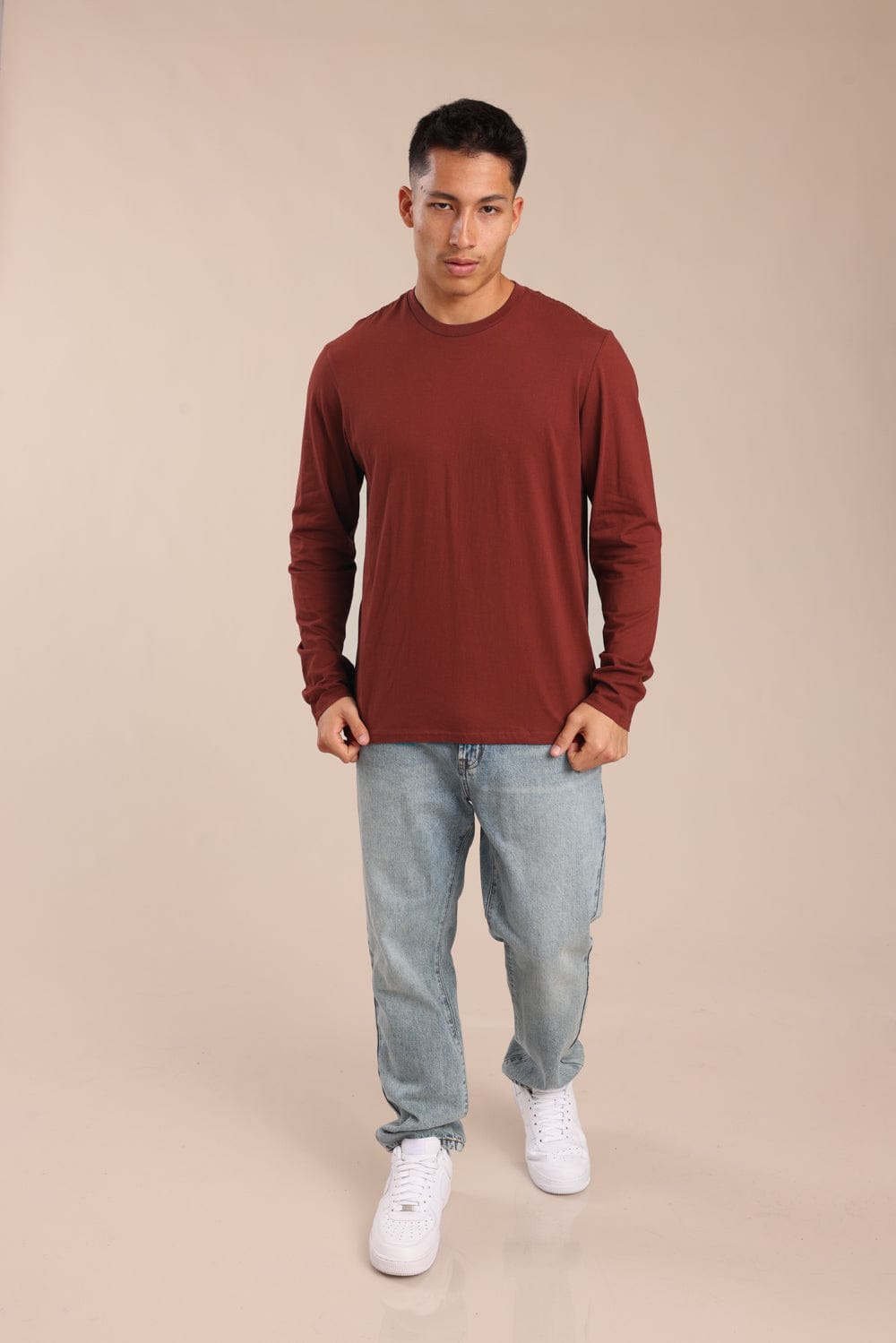 חולצה בייסיק צווארון עגול. שרוולים ארוכים מבד סינגל 100% כותנה