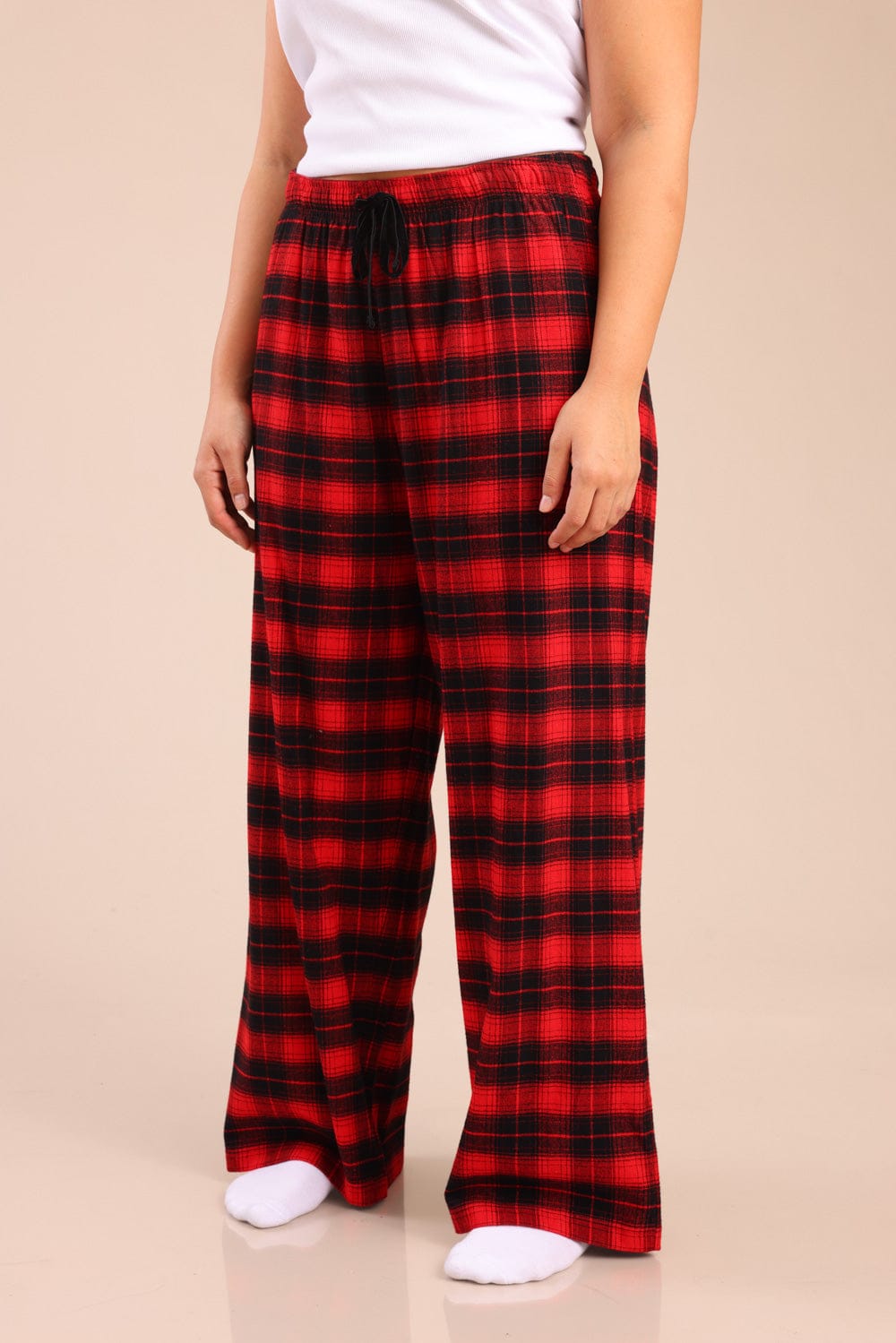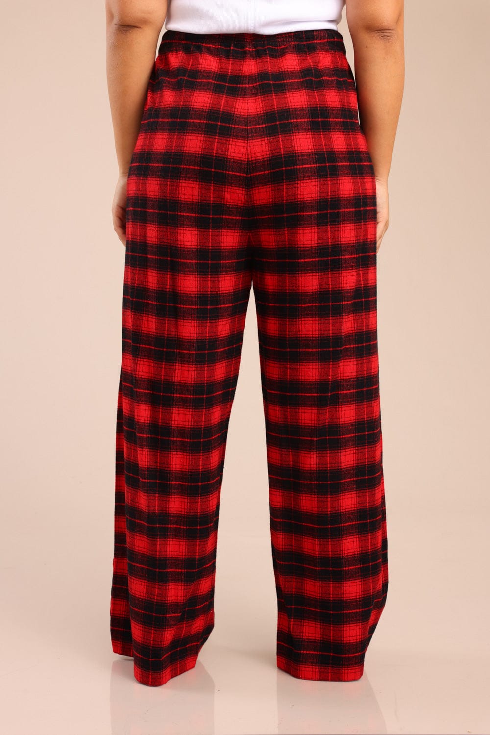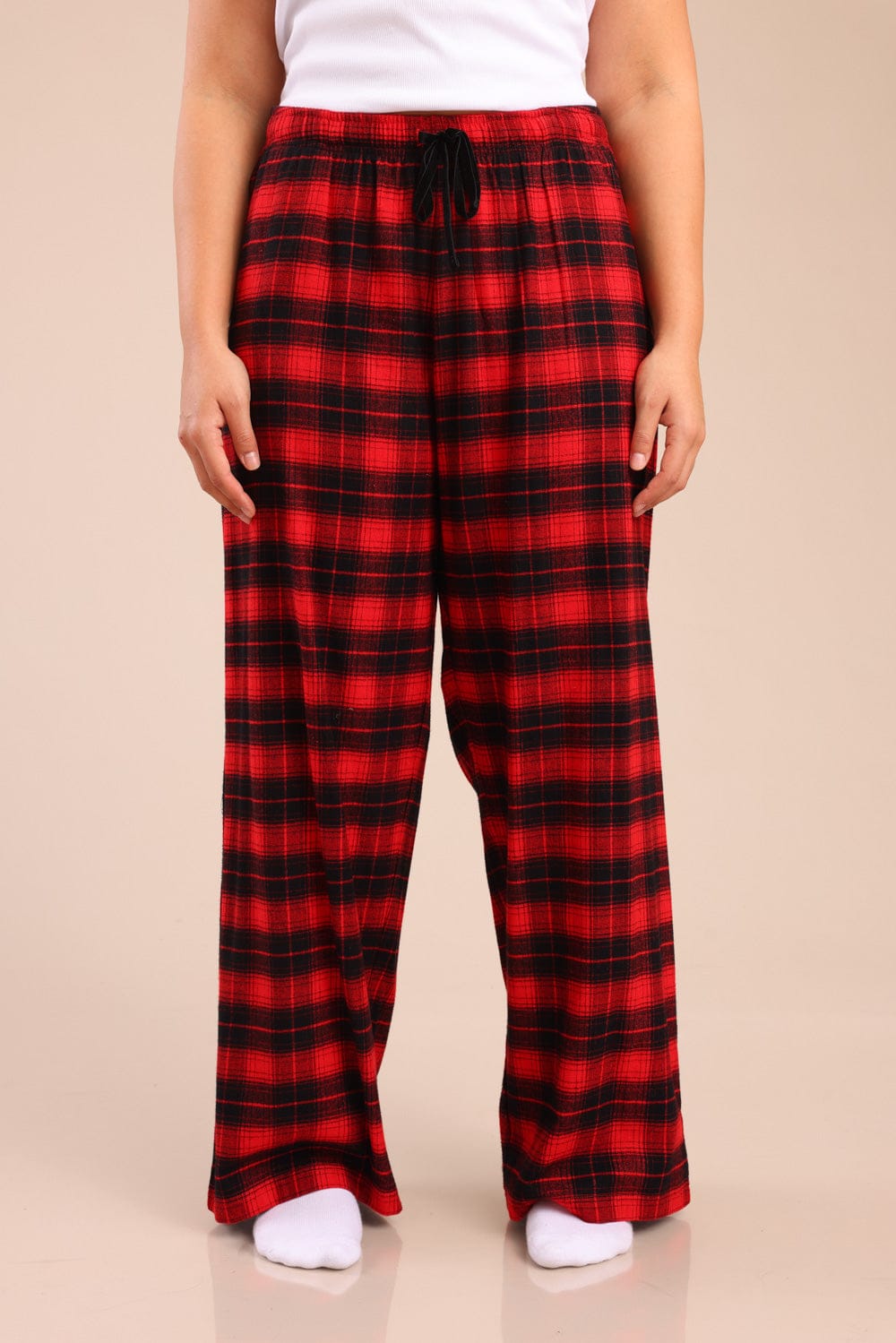 מכנסי פיג'מה משובצים פלנל בגזרה מתרחבת