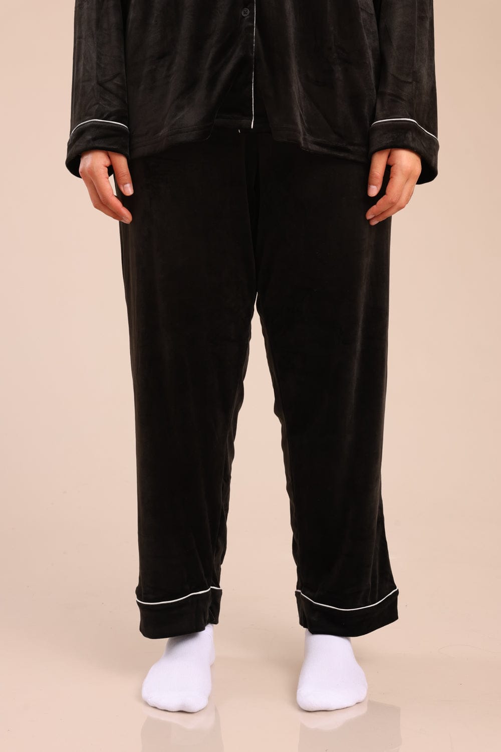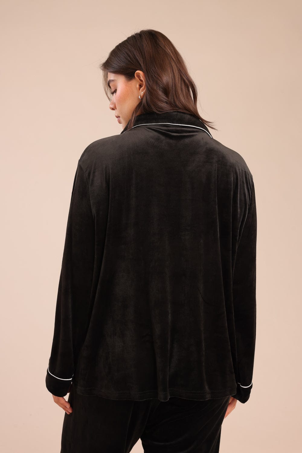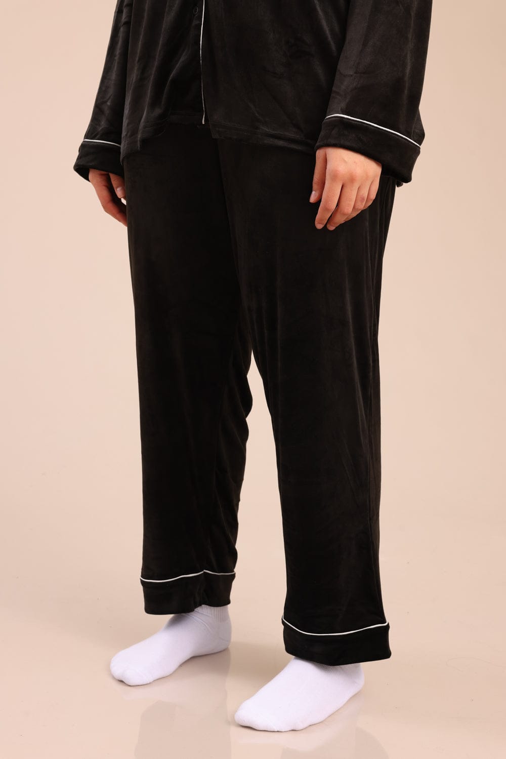 פיג'מה קטיפה מכופתרת עם צווארון