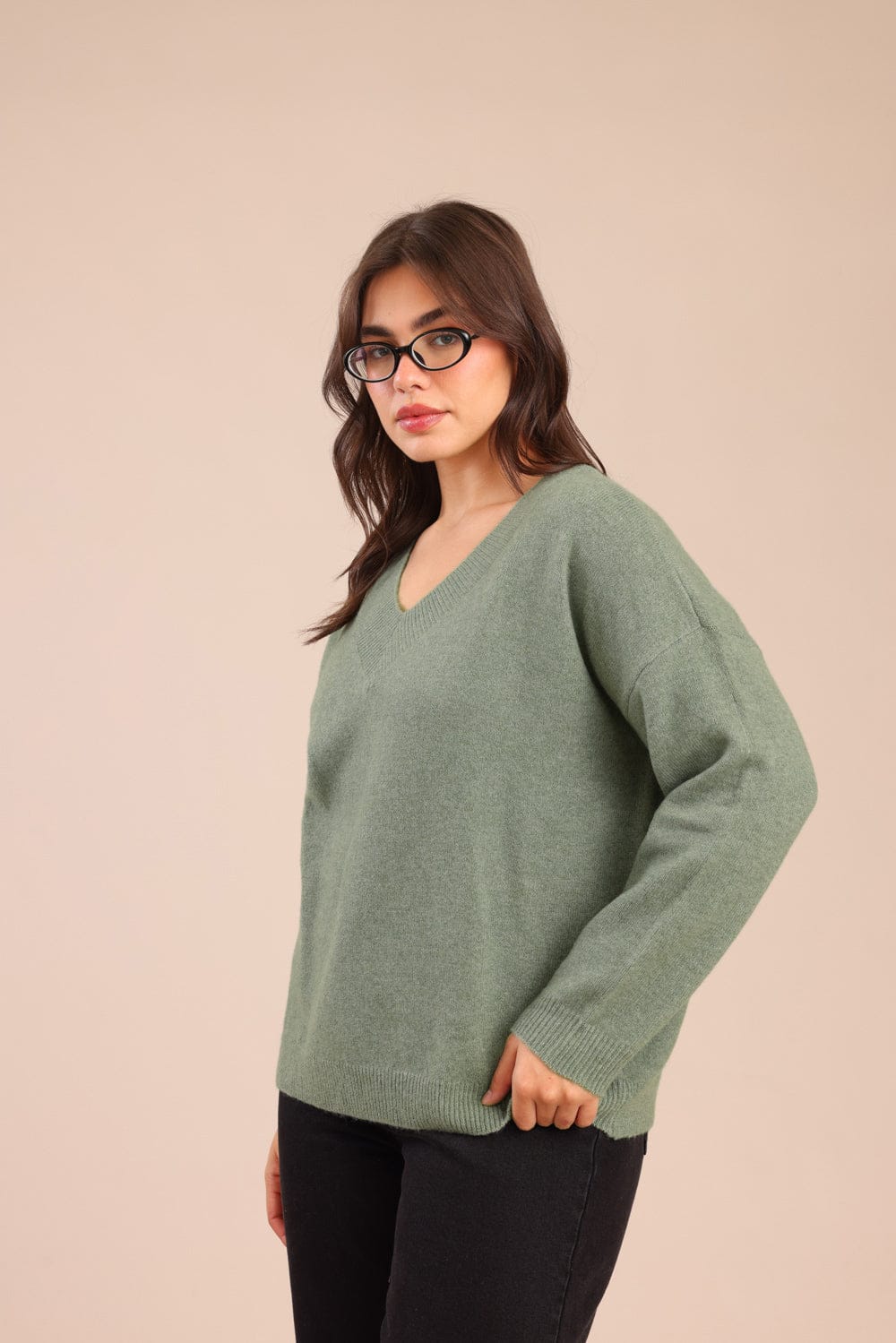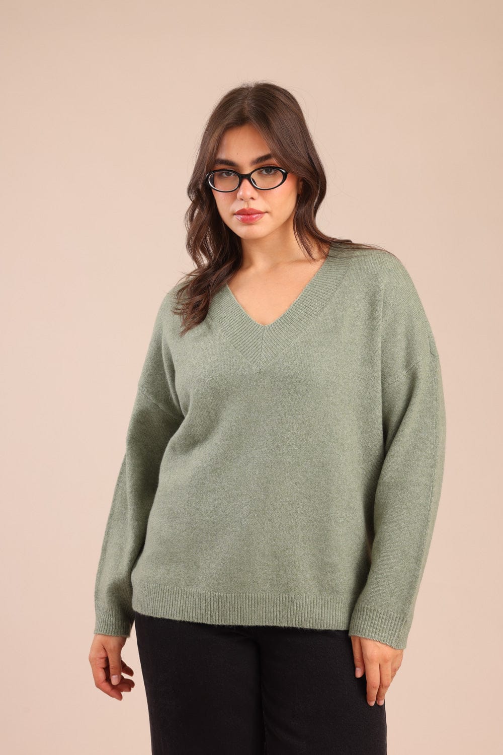 סריג צווארון V משוחרר וקליל
