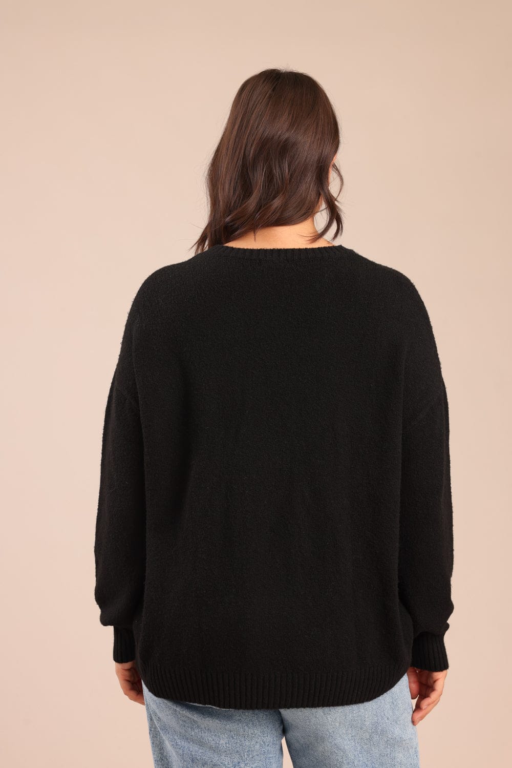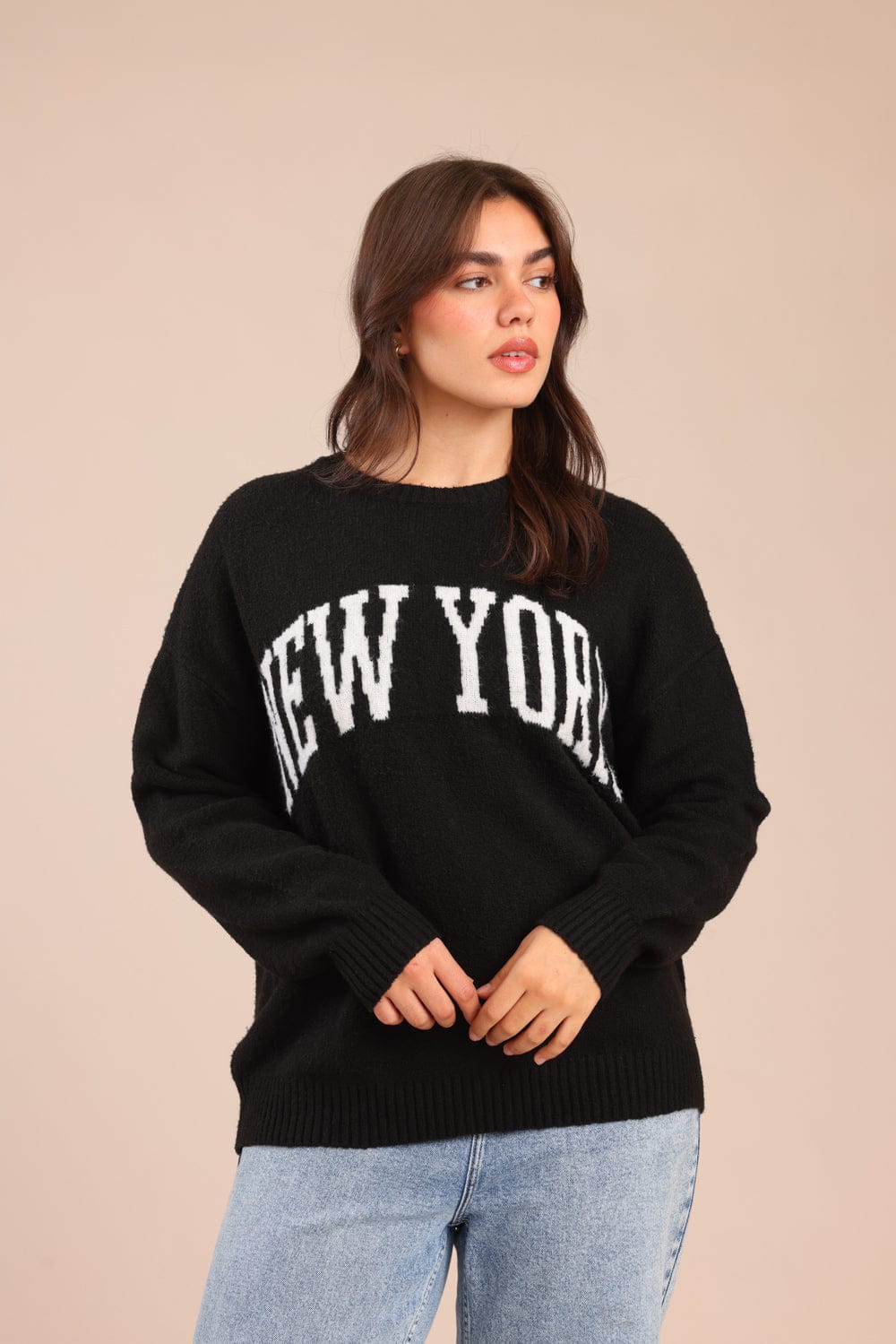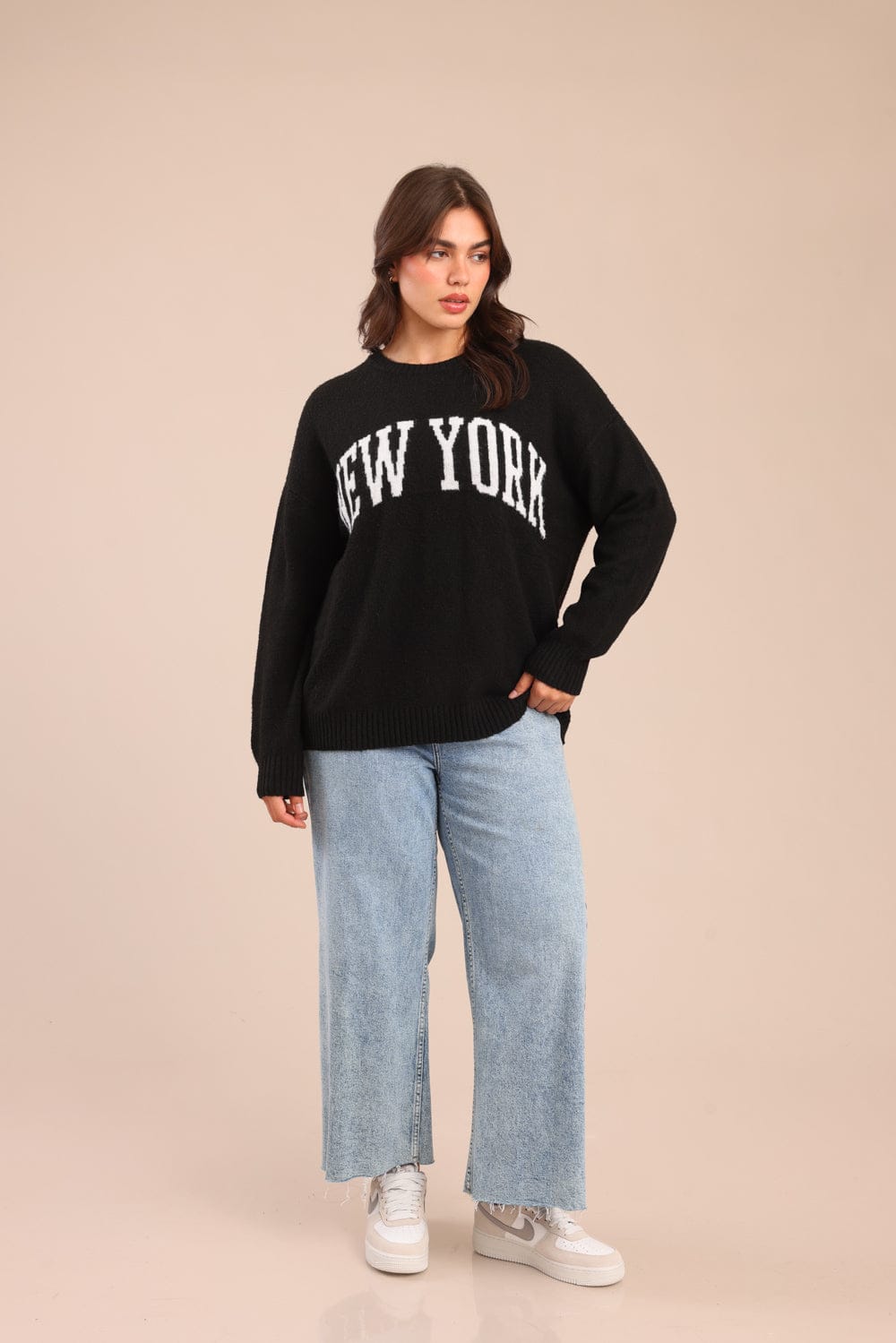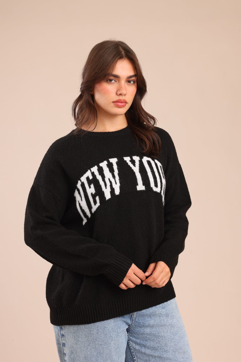 סריג אוברסייז עם הדפס קדמי בחזית