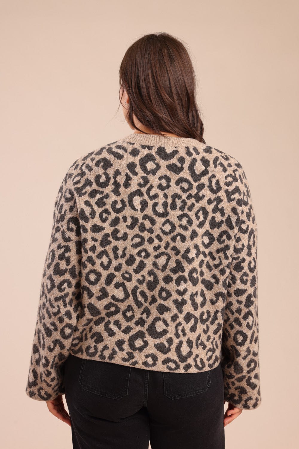 סריג מנומר עם ידיים מתרחבות וכפתורים