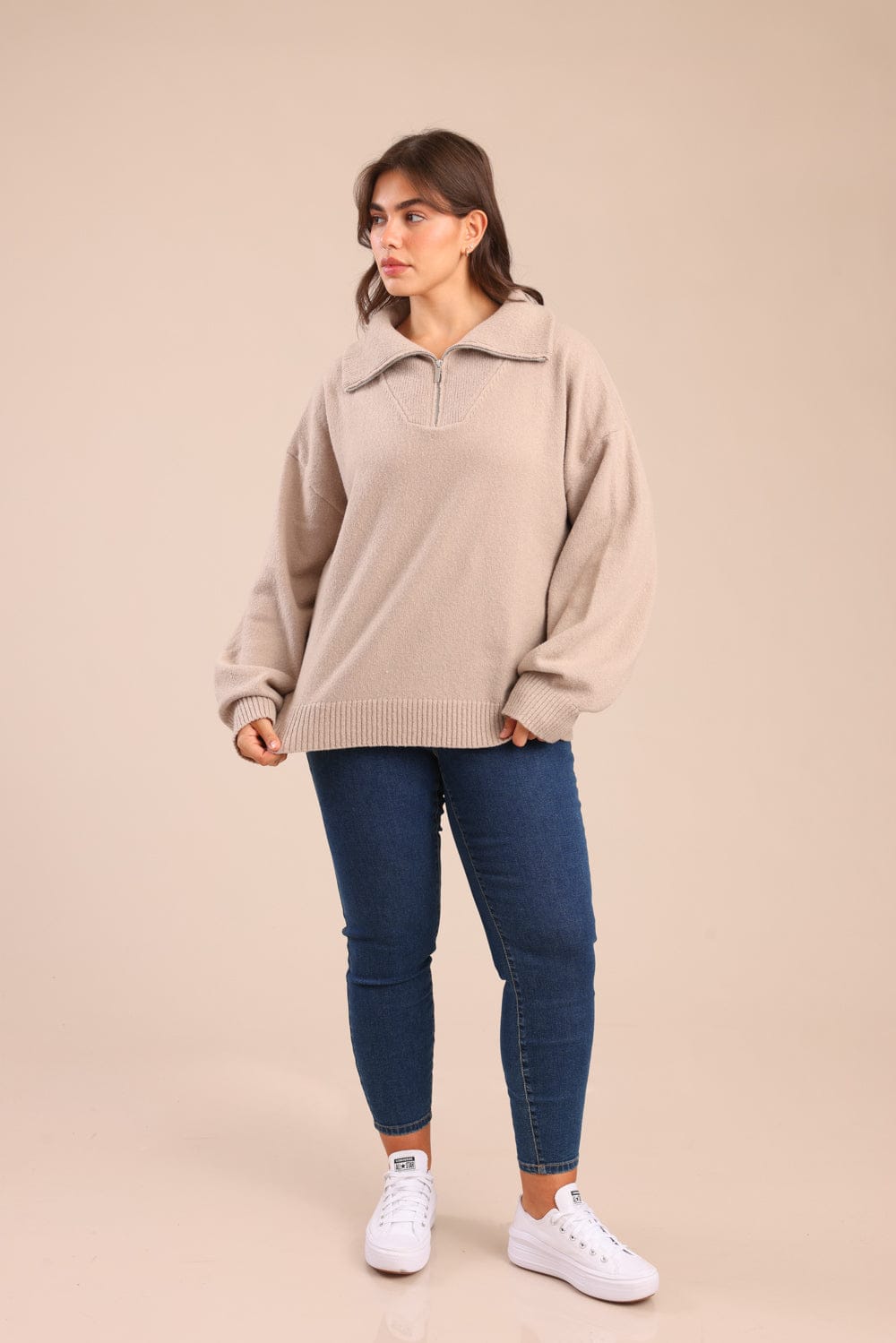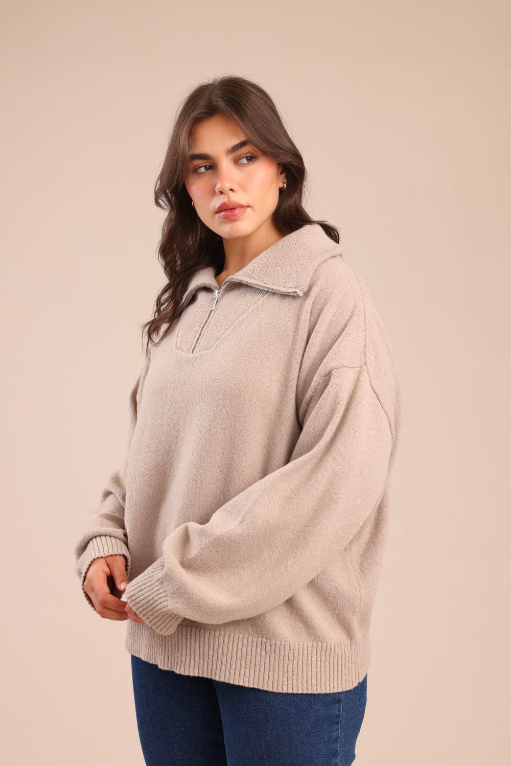 סריג חצי רוכסן עם צווארון