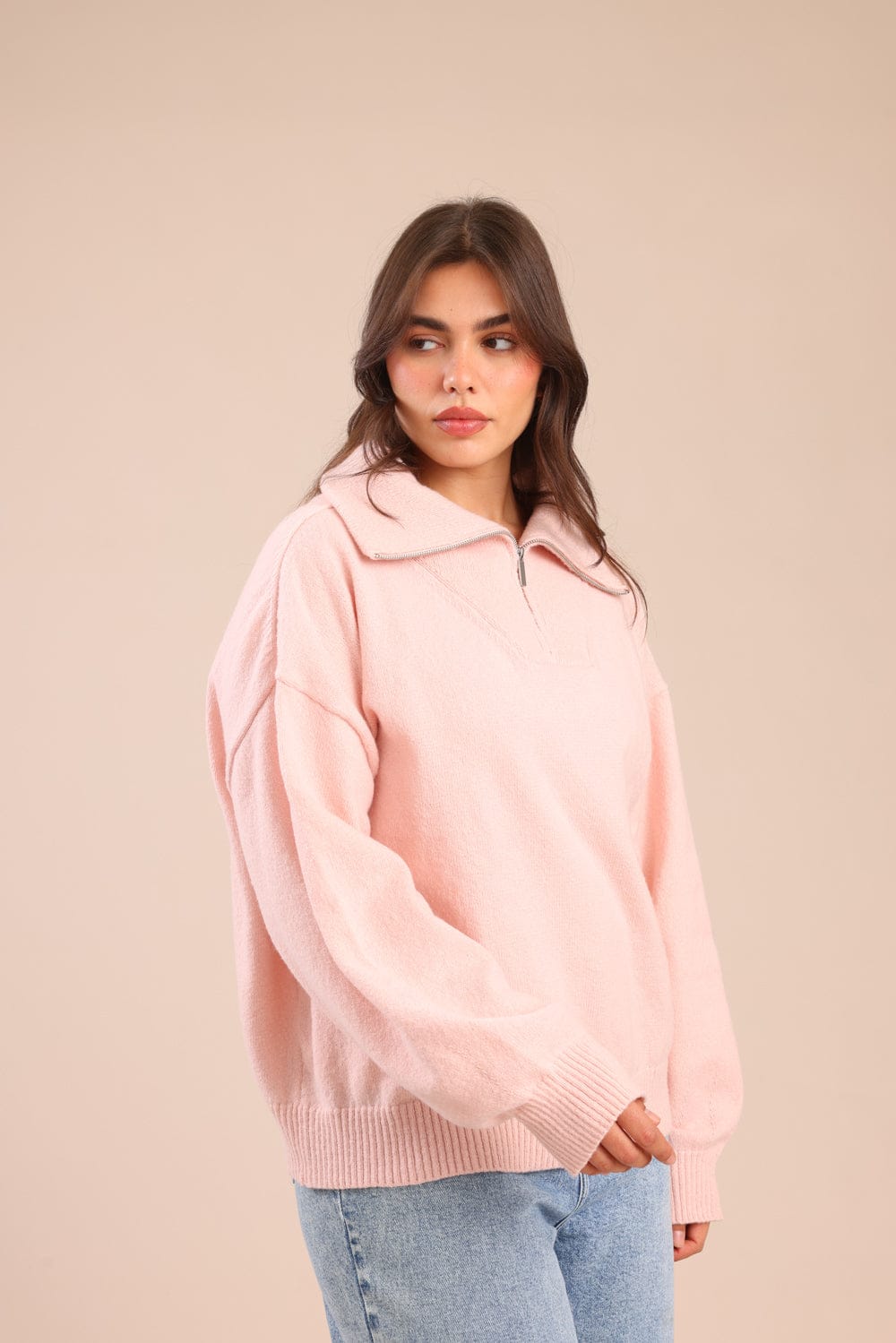 סריג חצי רוכסן עם צווארון