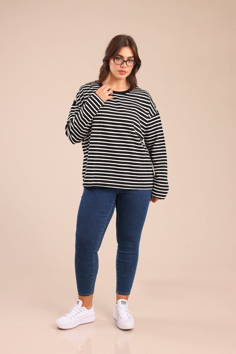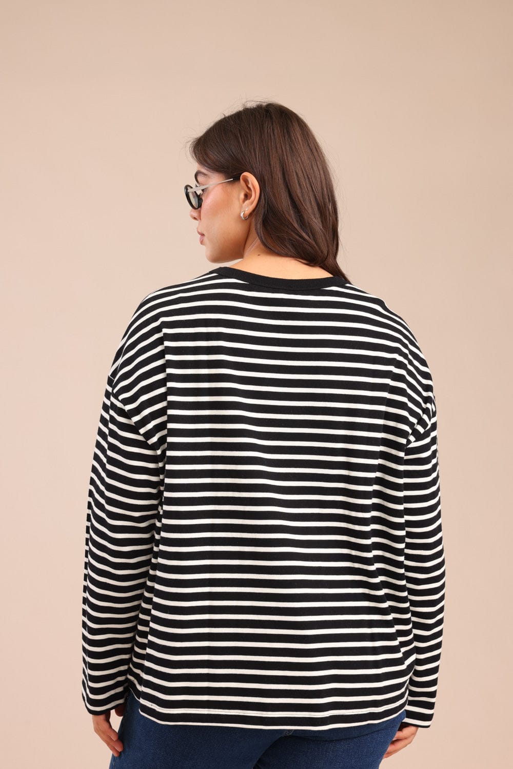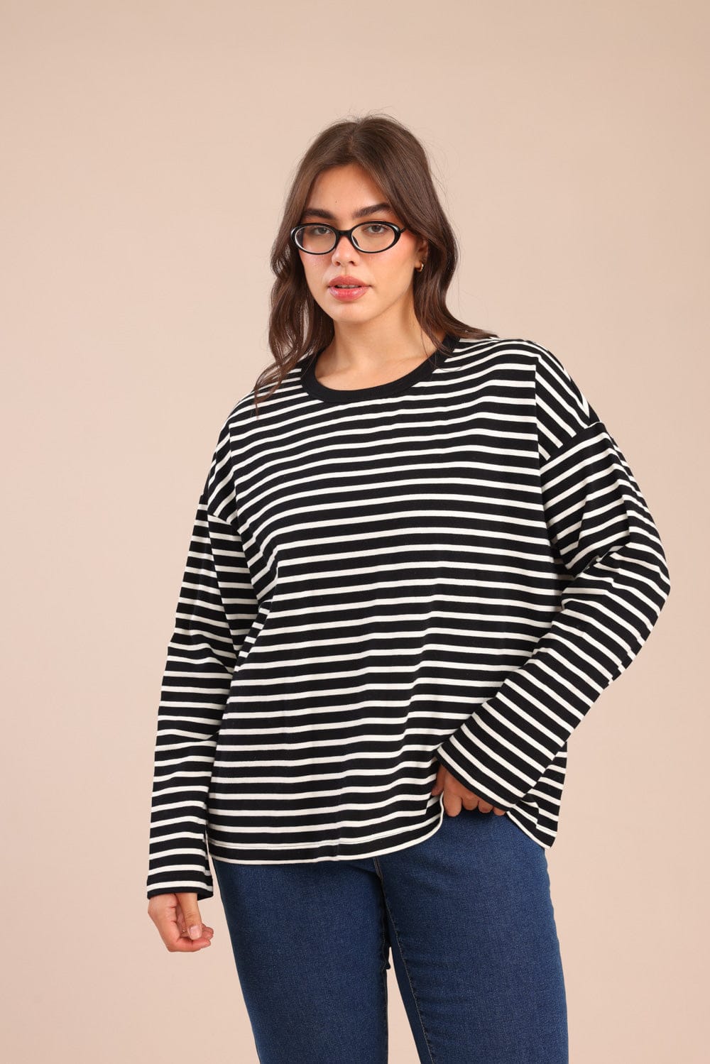 חולצה צווארון עגול עם פסים לרוחב 100% כותנה