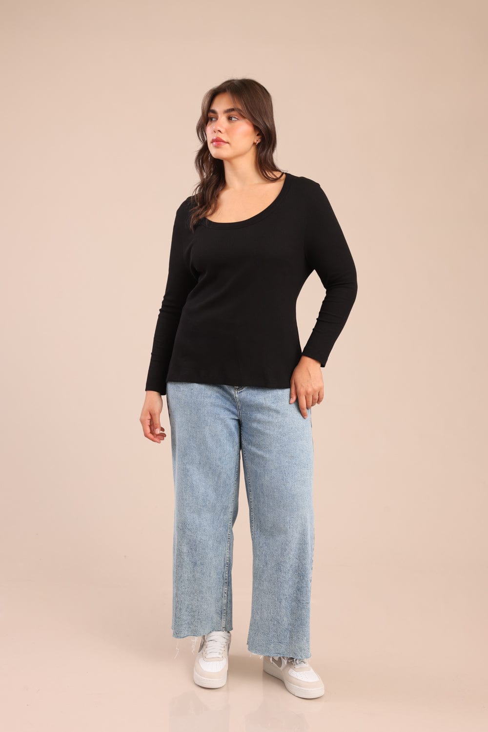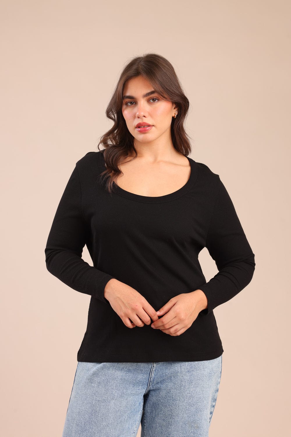 חולצת בייסיק ריב טריקו 100% כותנה עם צווארון עגול
