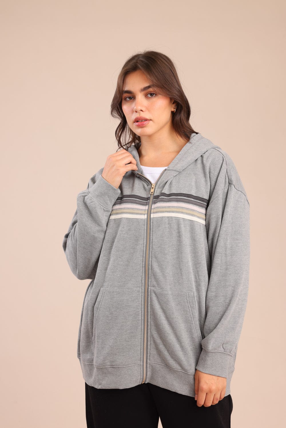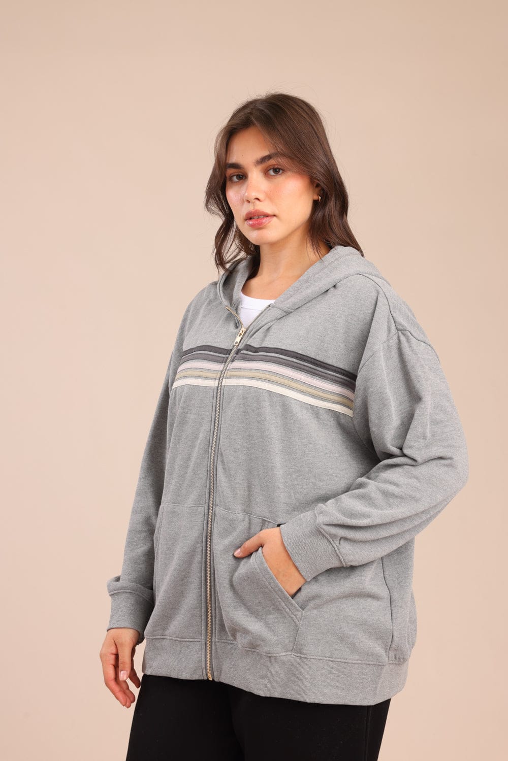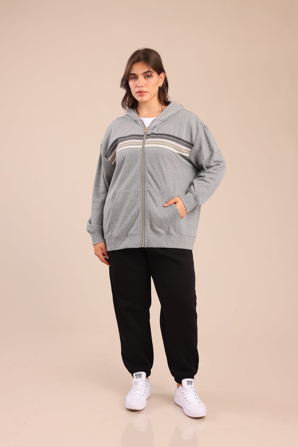 פוטר קרדיגן קפוצ'ון עם פסים לרוחב ורוכסן קדמי