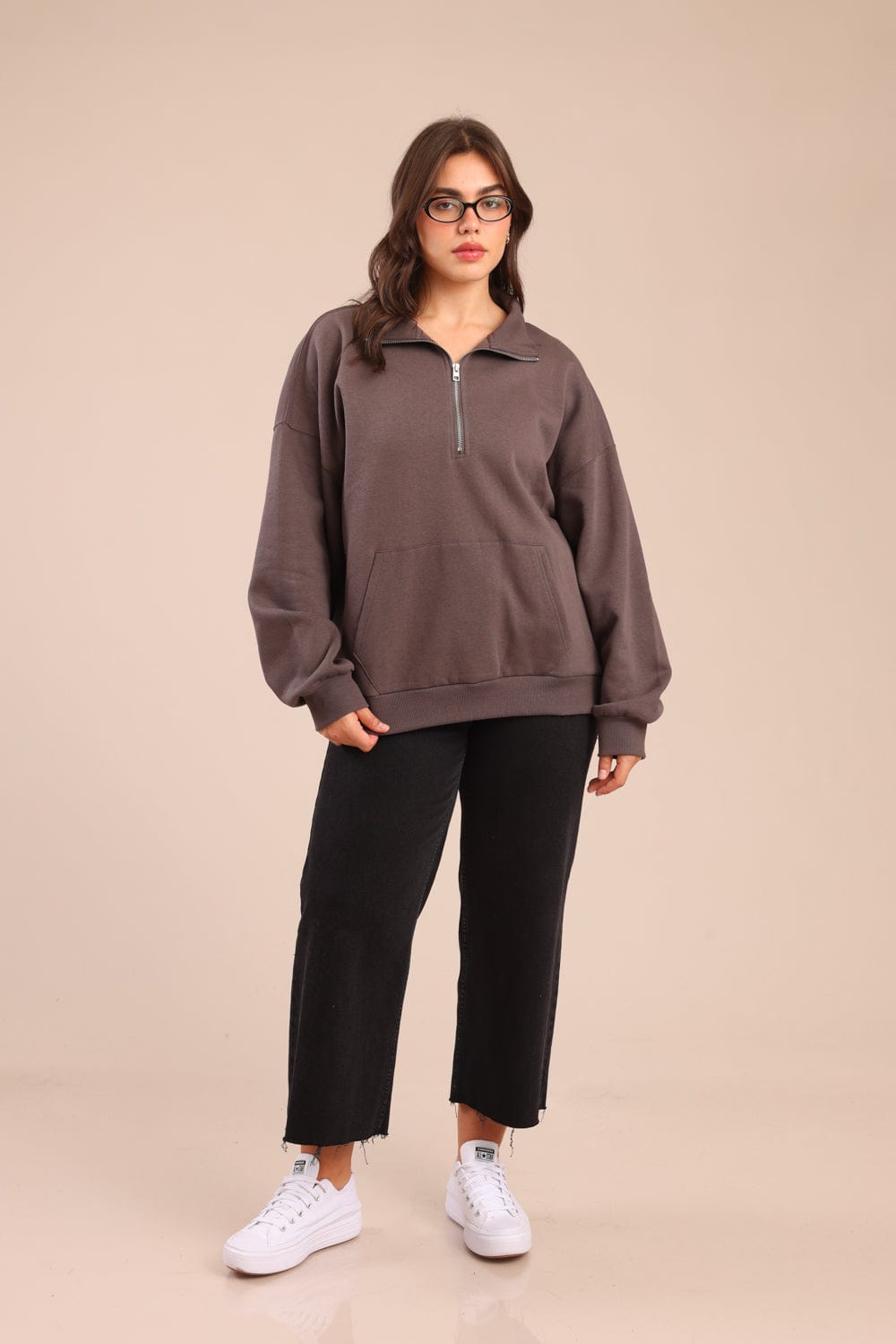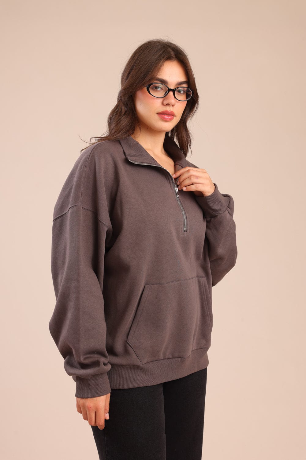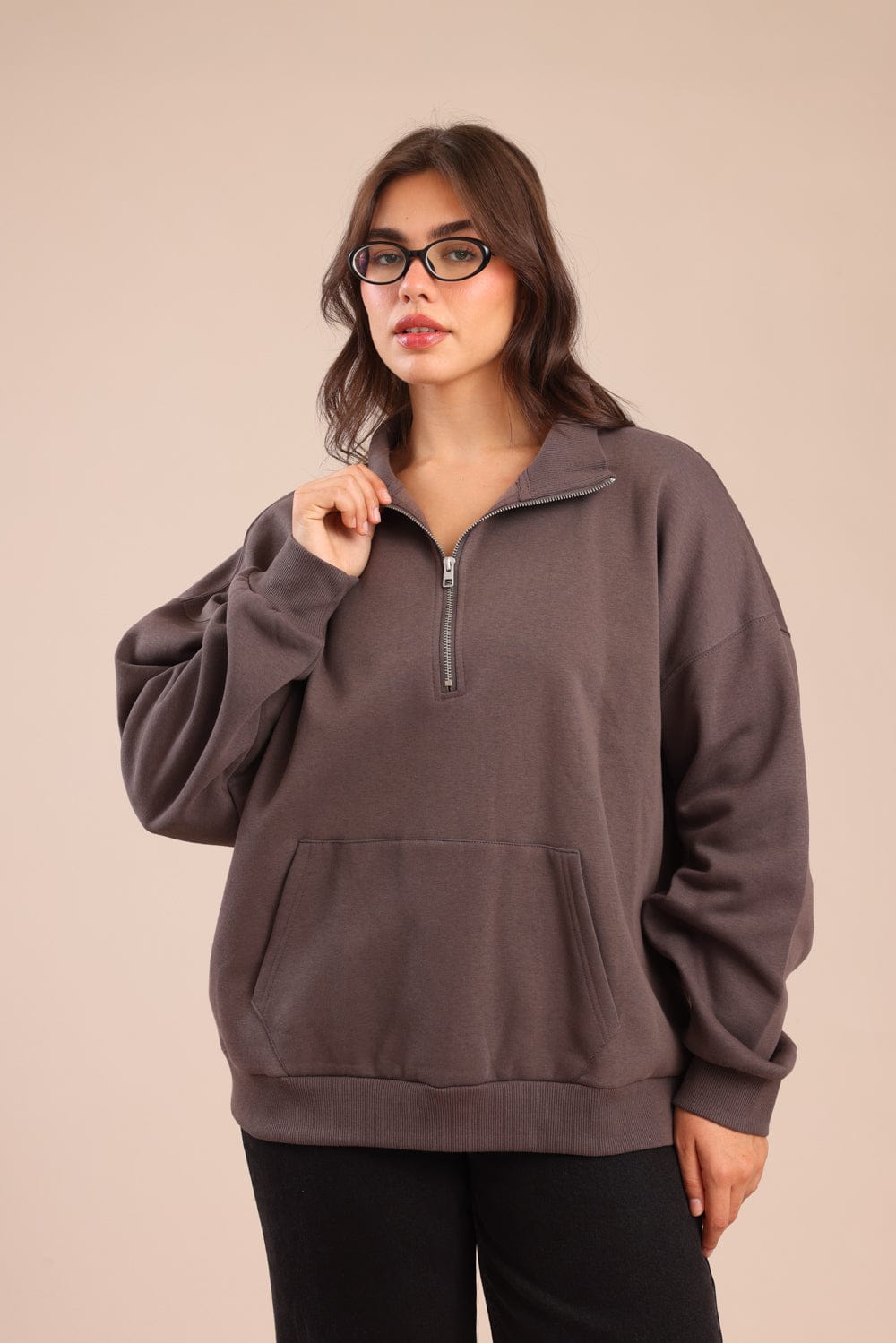 פוטר חצי רוכסן עם צווארון וכיס קדמי