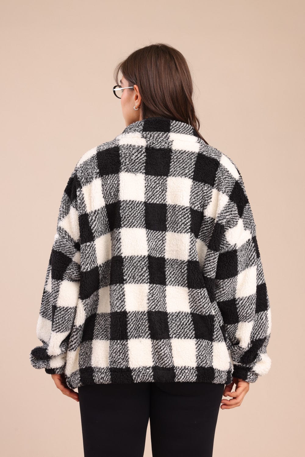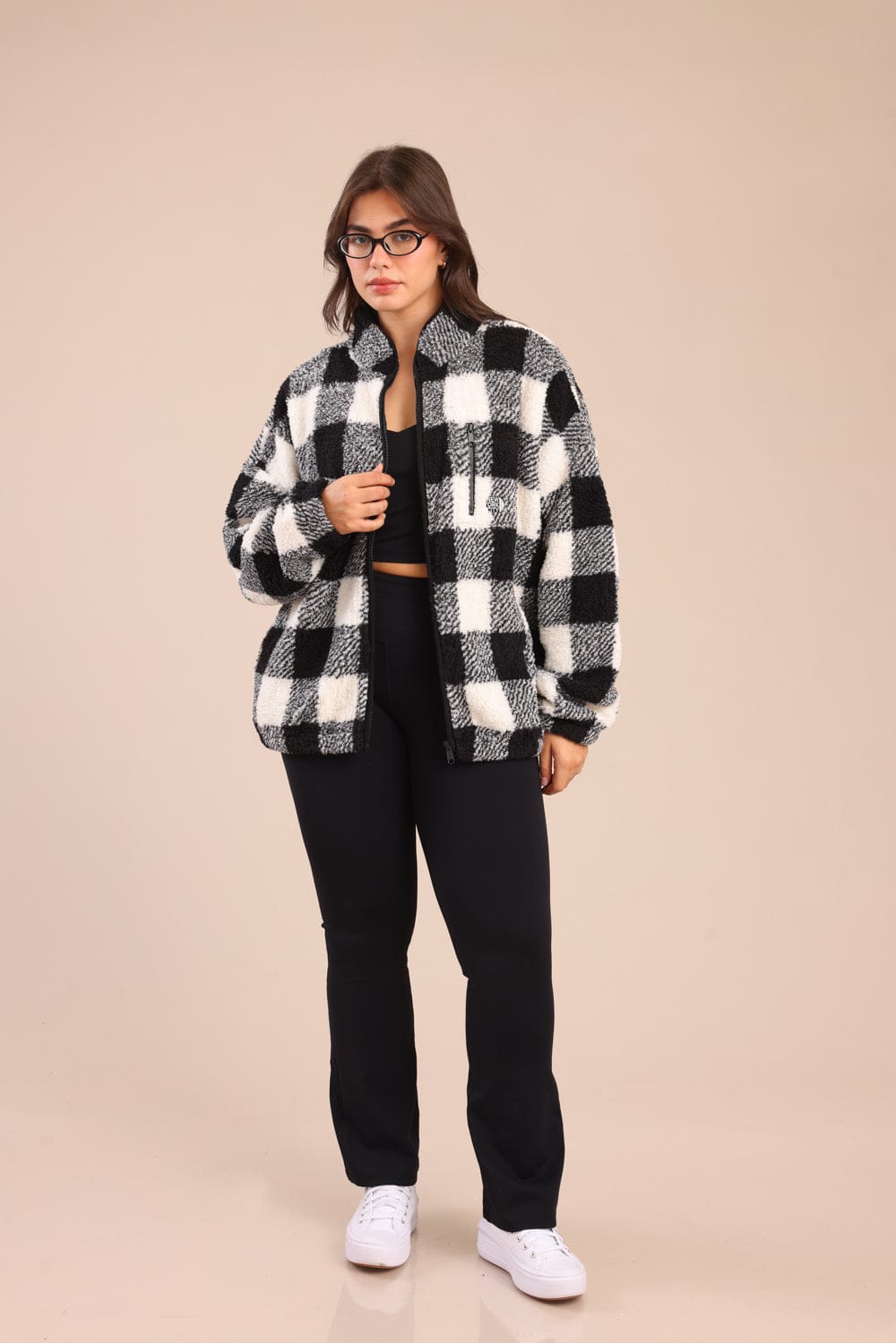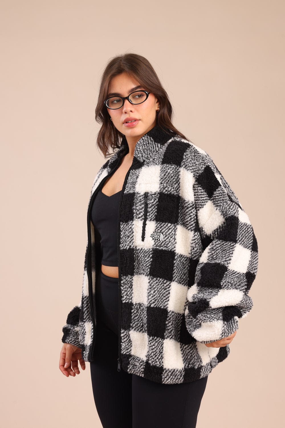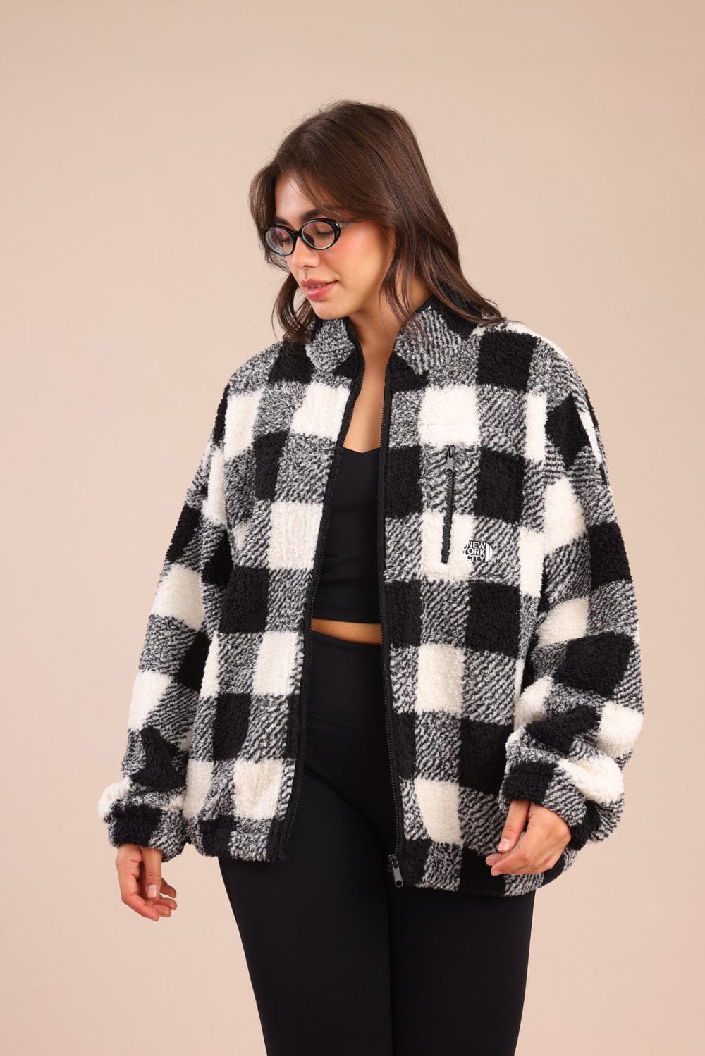 קרדיגן שרלינג משובץ אופנתי עם רוכסן קדמי
