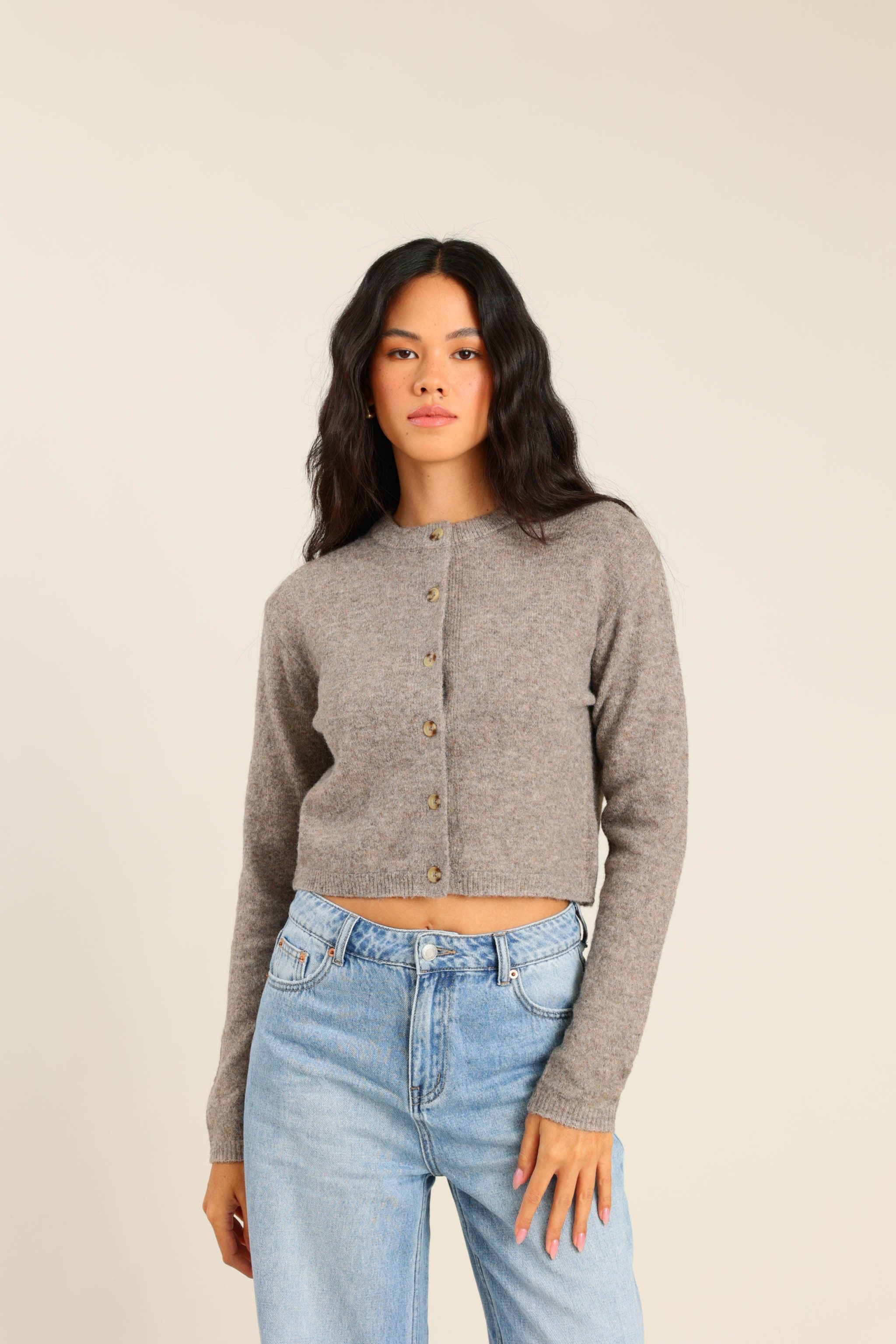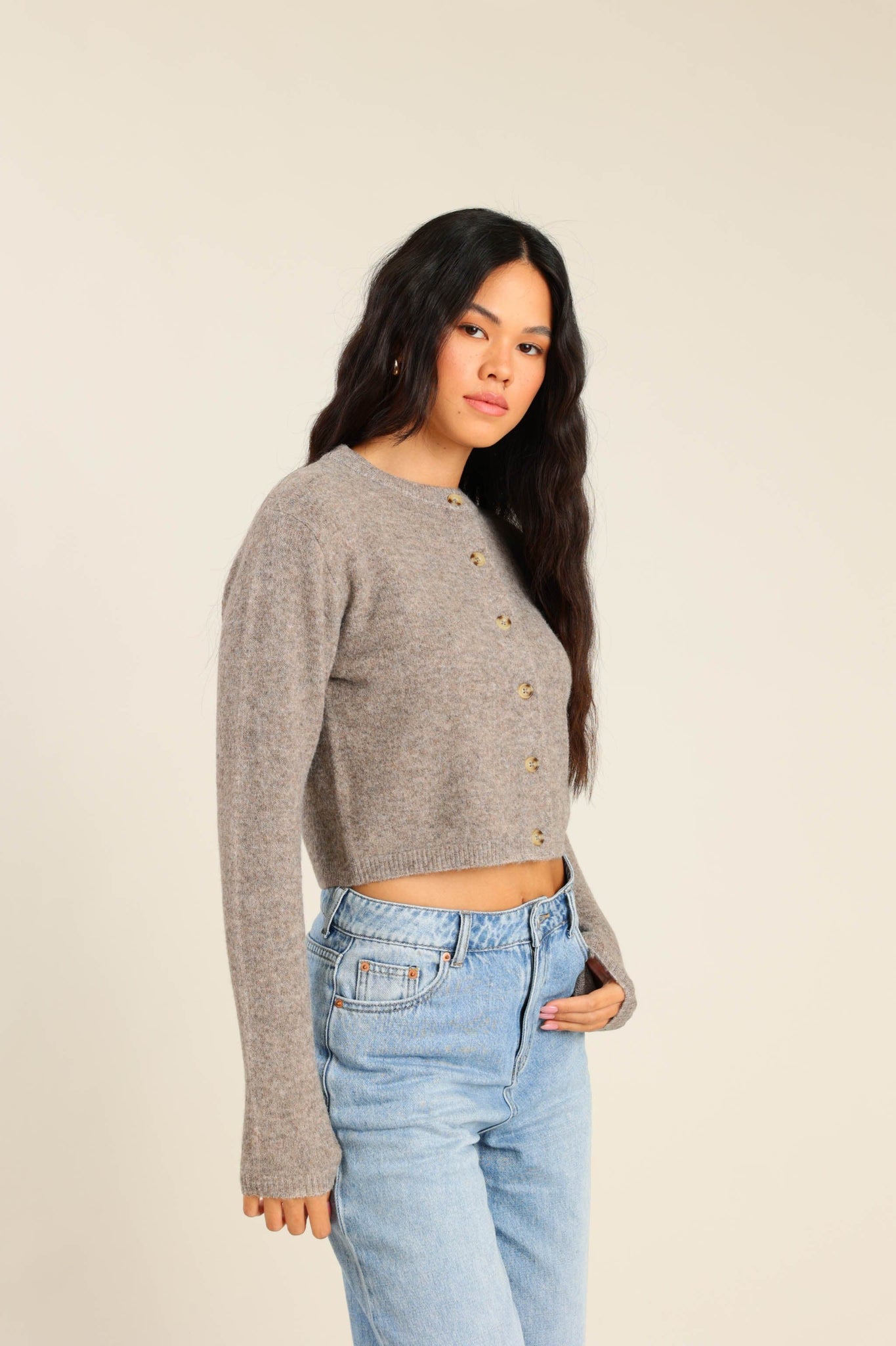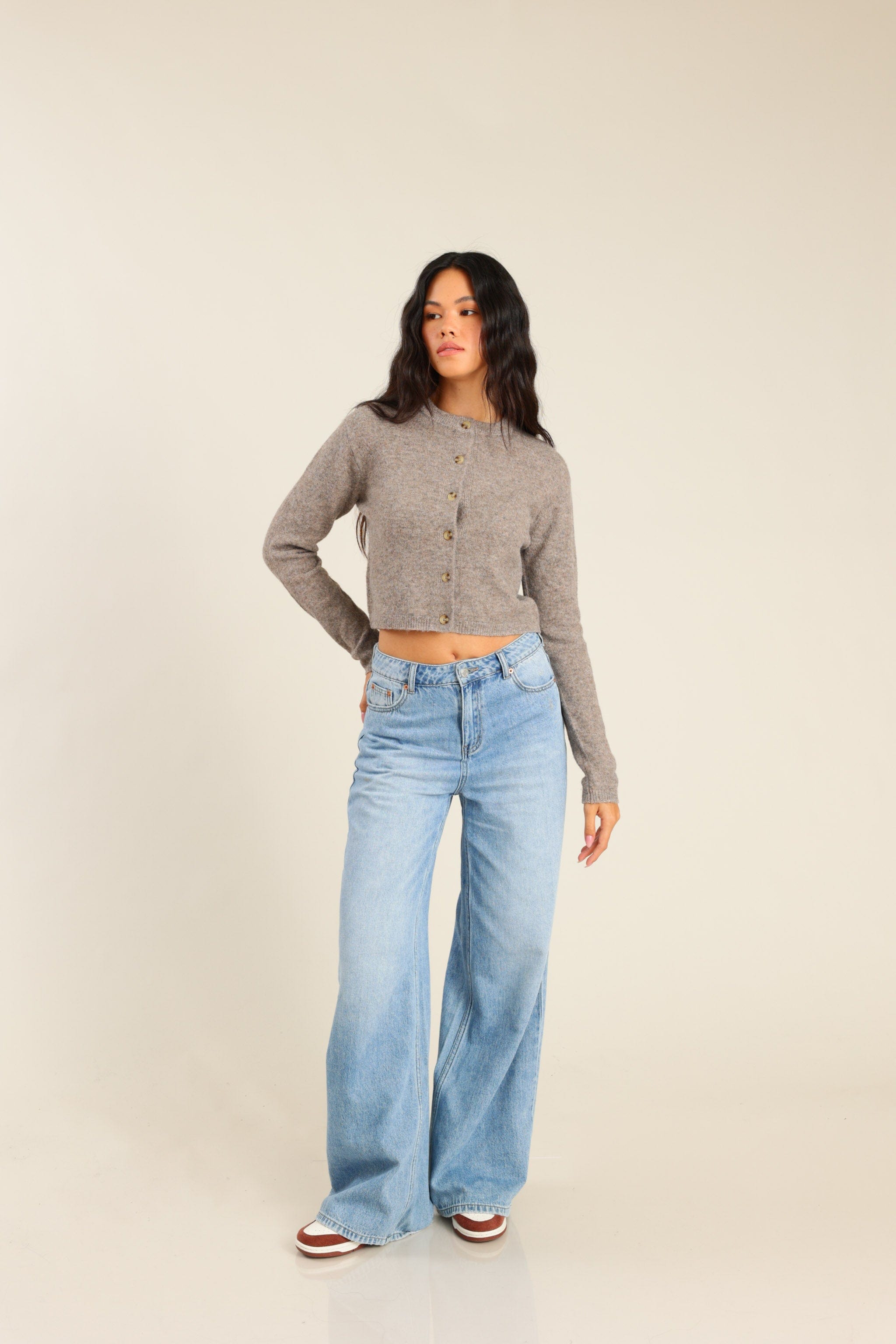 קרדיגן לנשים בגזרה קצרה עם כפתורים קדמיים