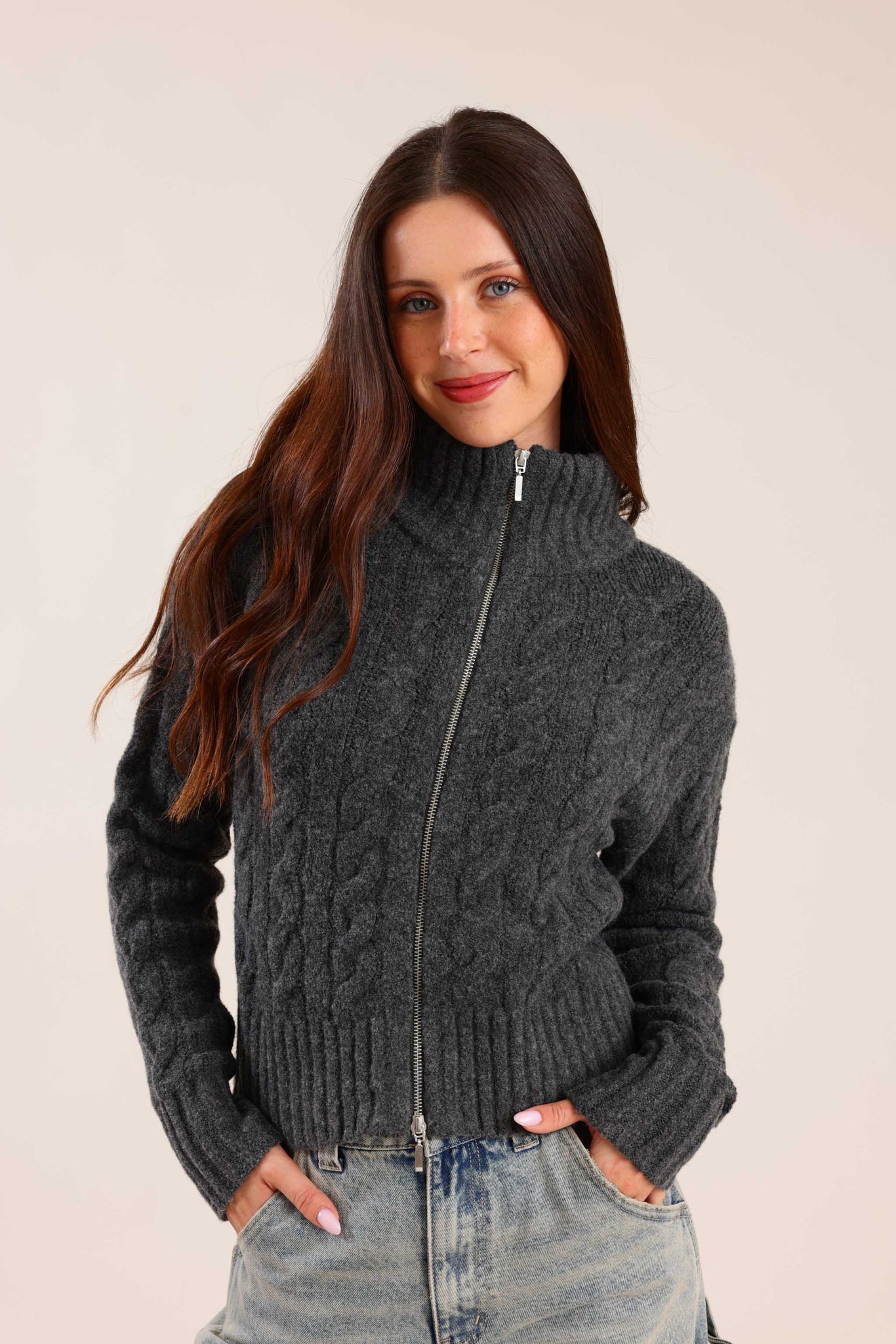עשוי סריג נעים עם דוגמת צמות למראה חורפי ומחמם