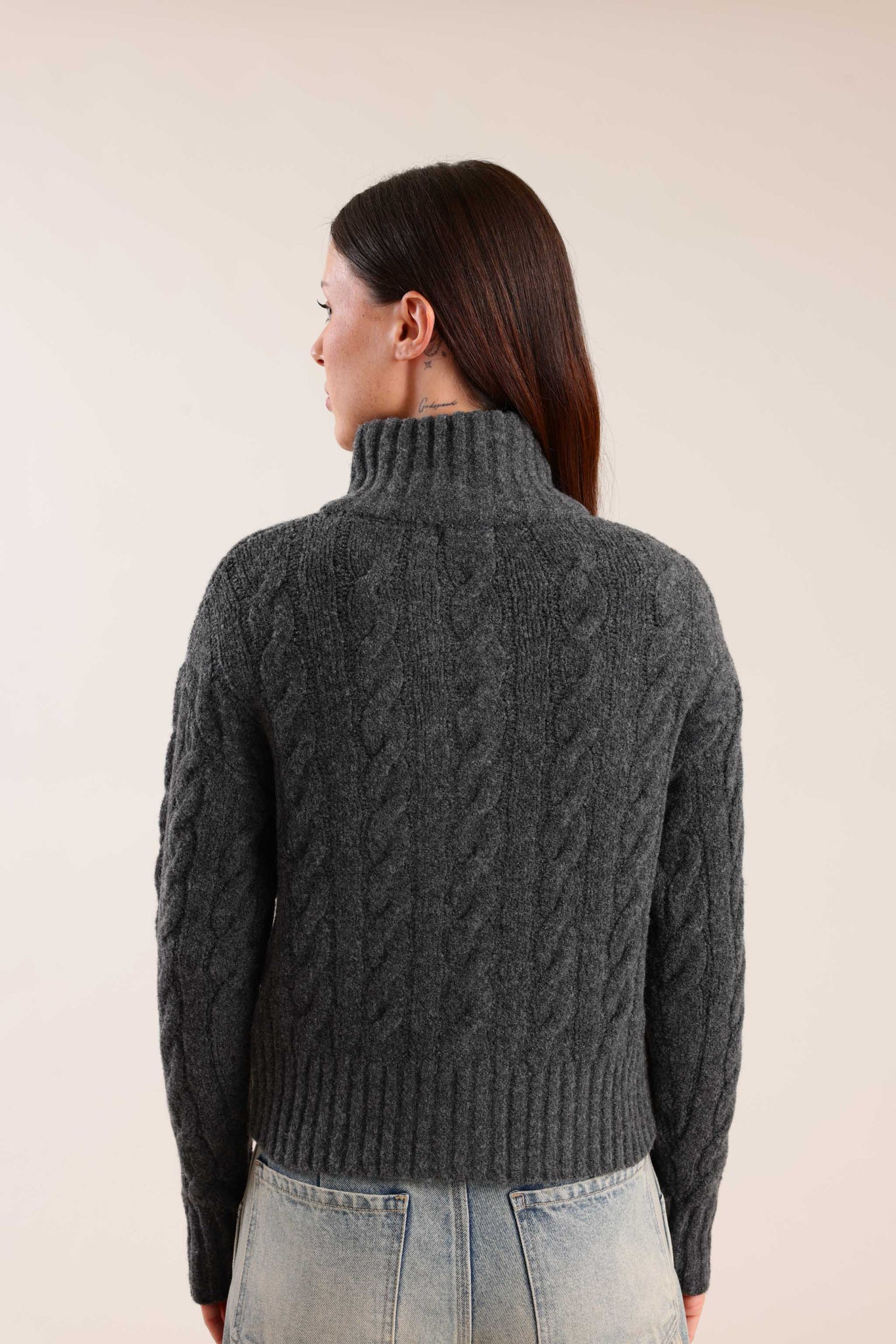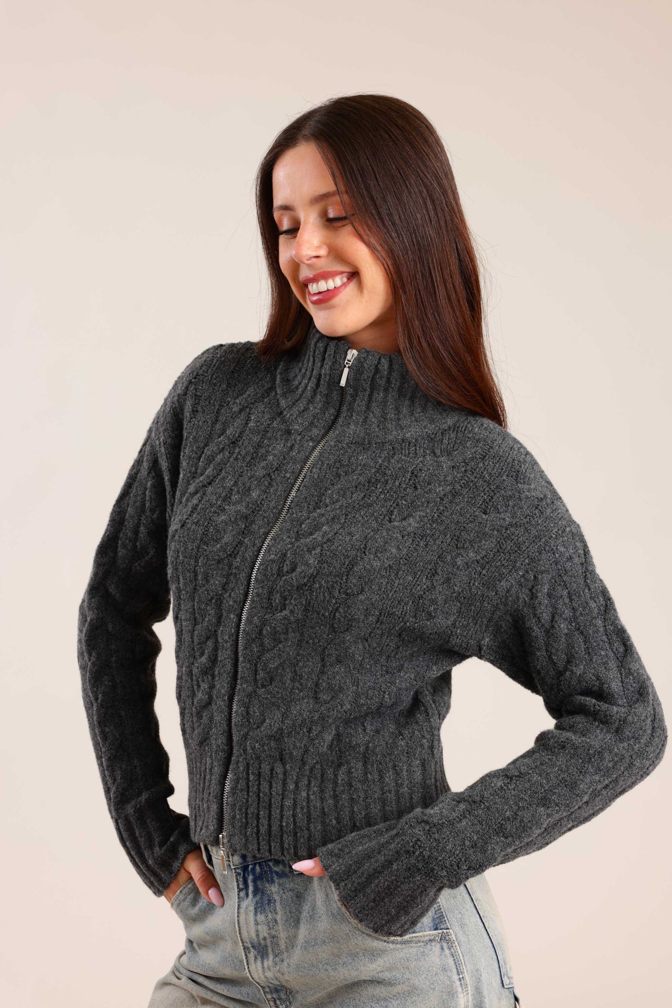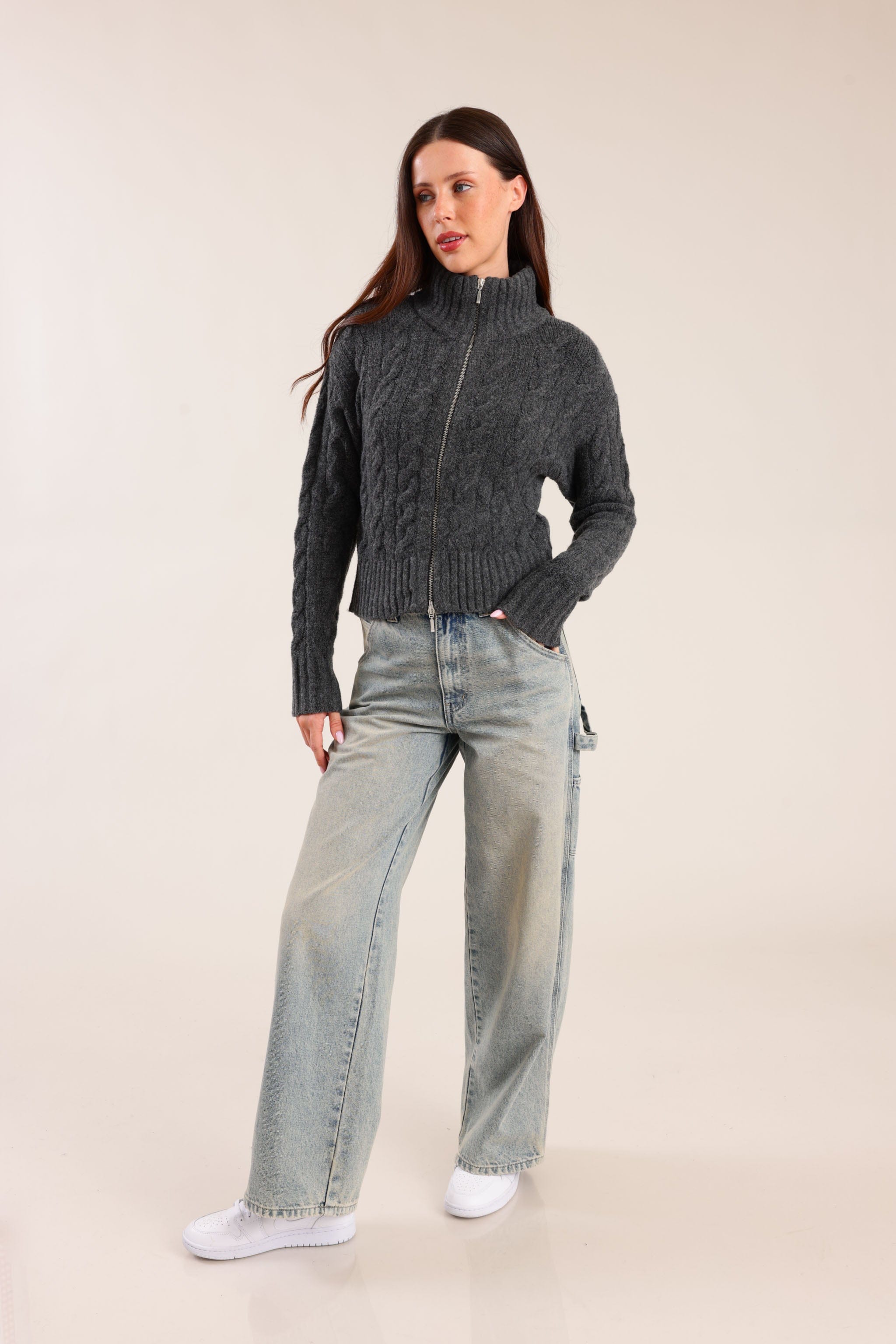 סוודר לנשים עם רוכסן מלא וצווארון גבוה
