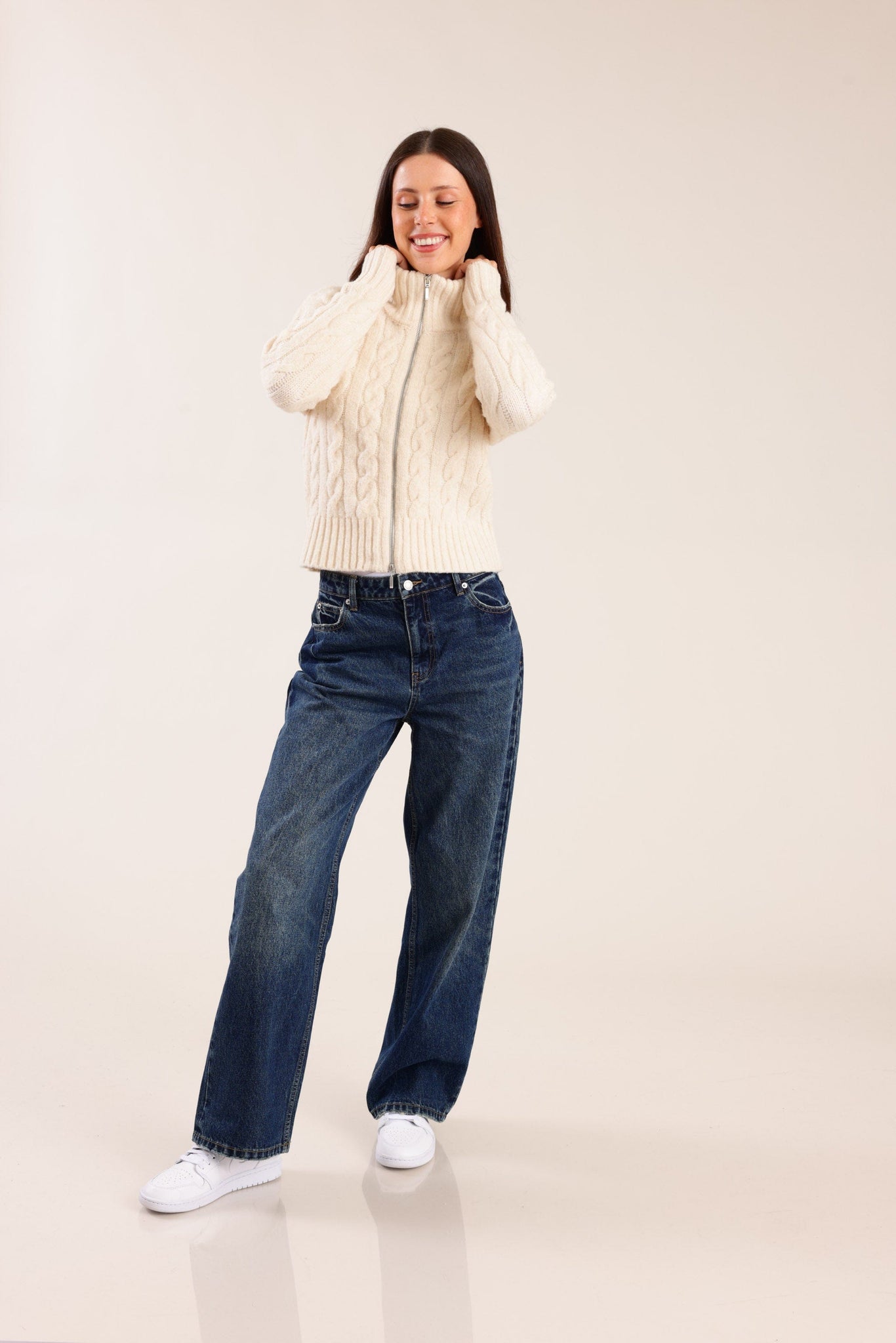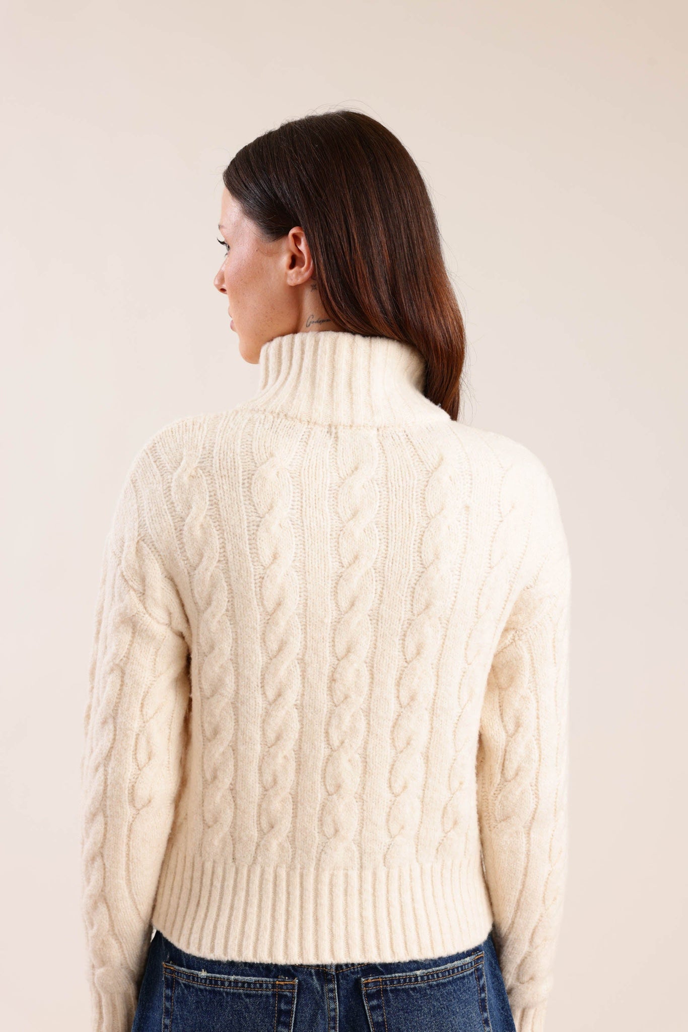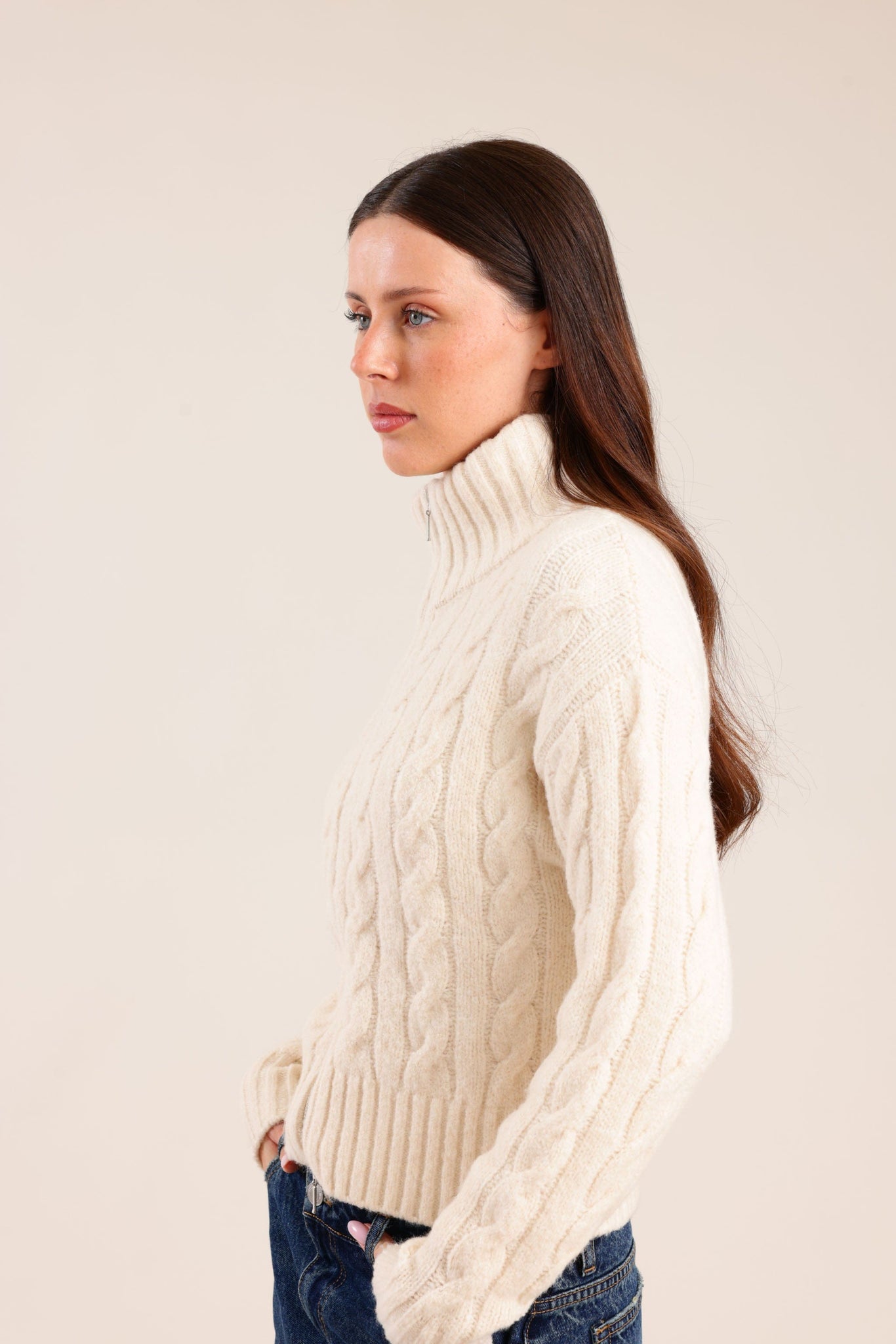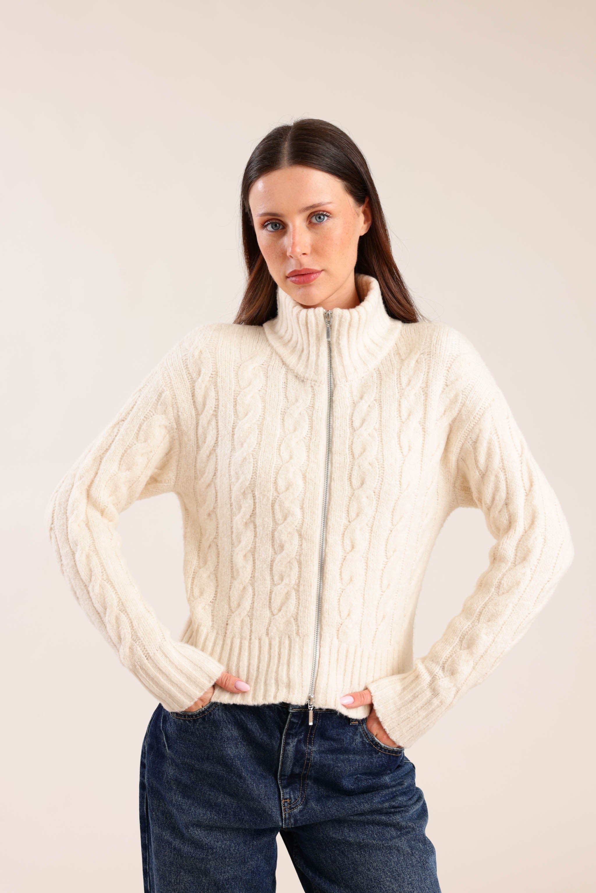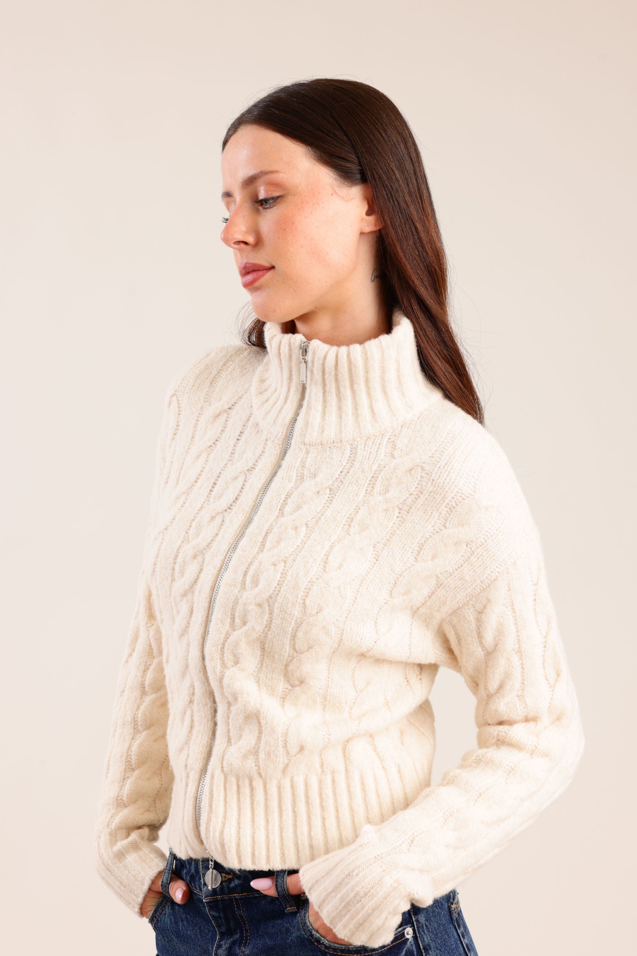סוודר לנשים עם רוכסן מלא וצווארון גבוה