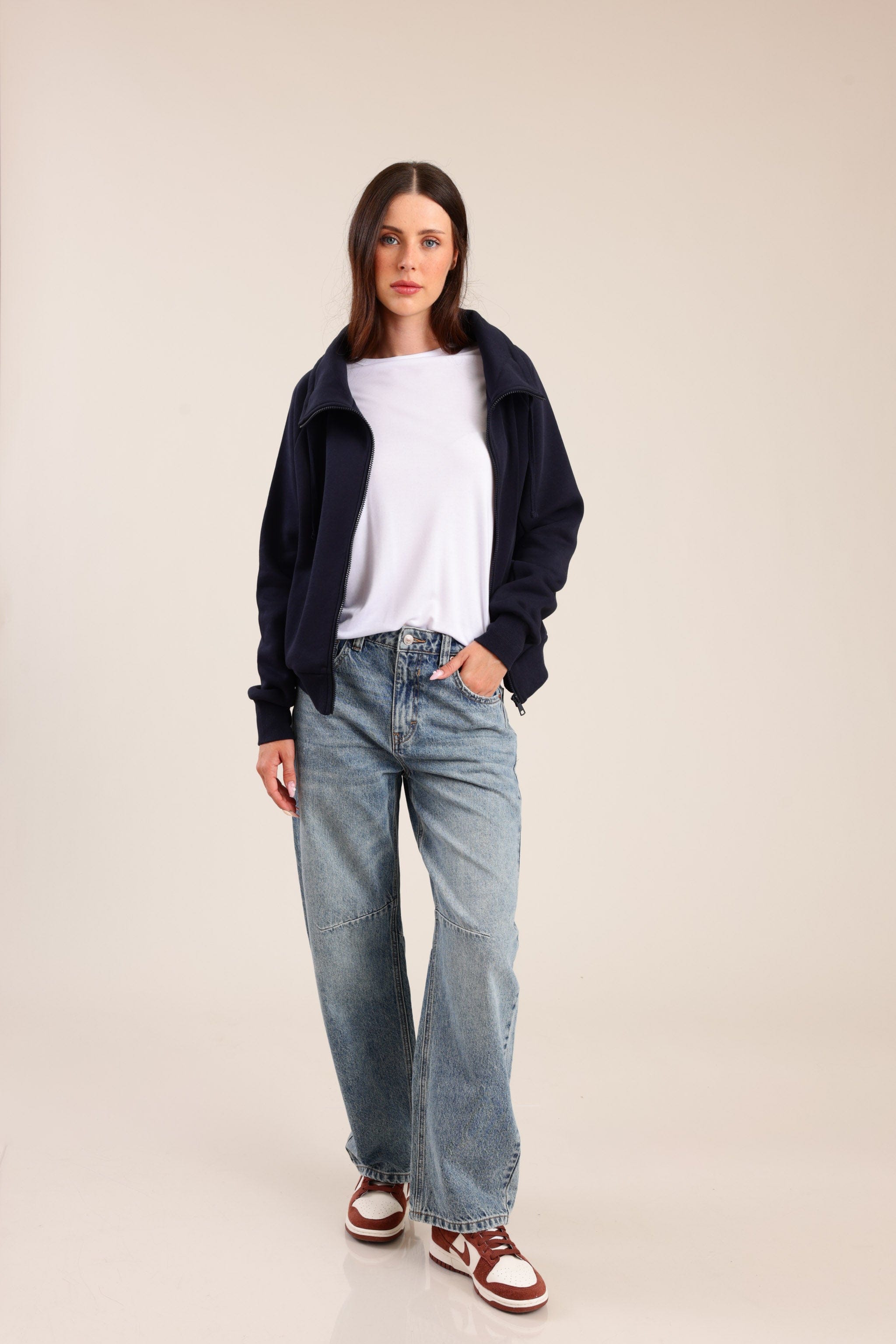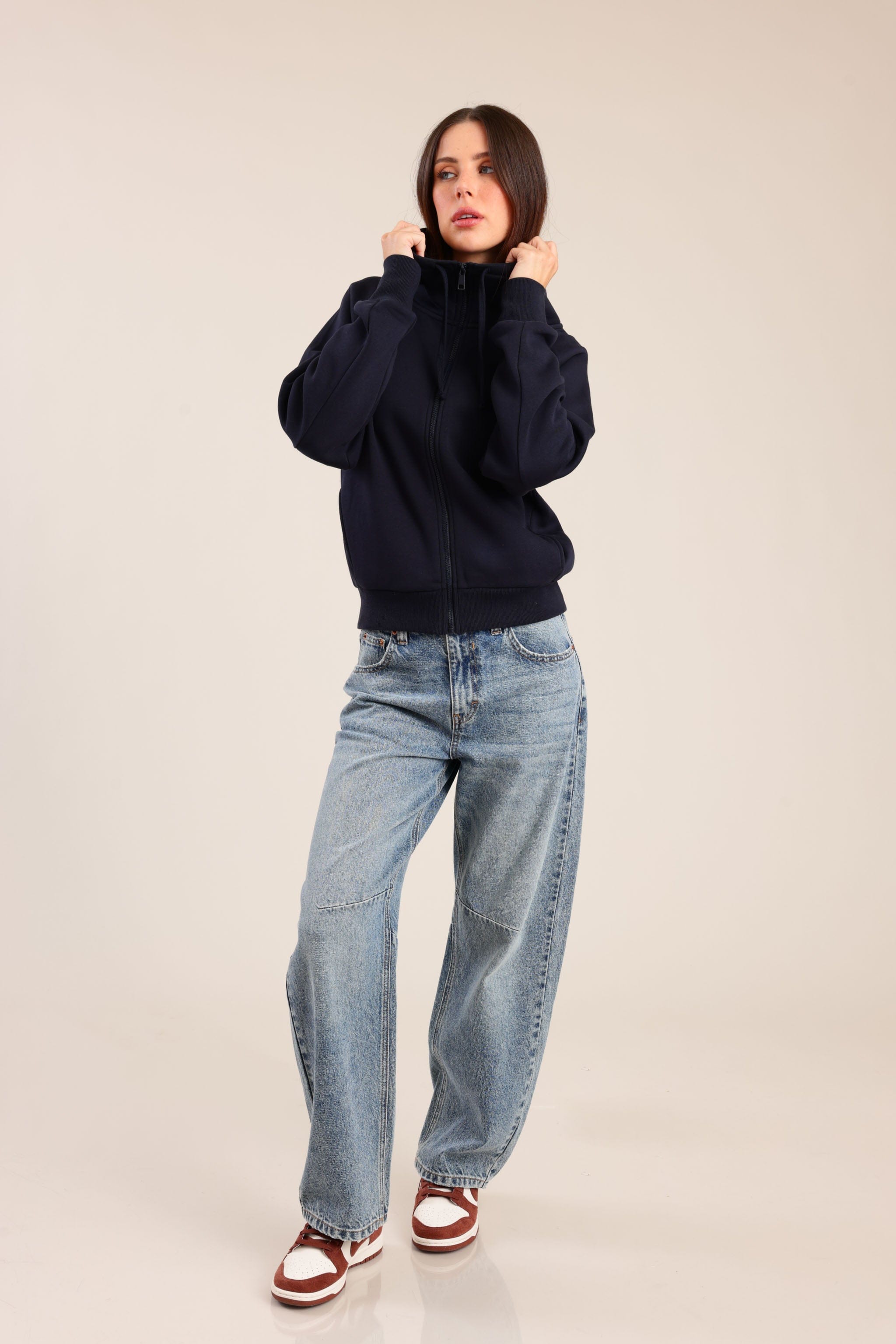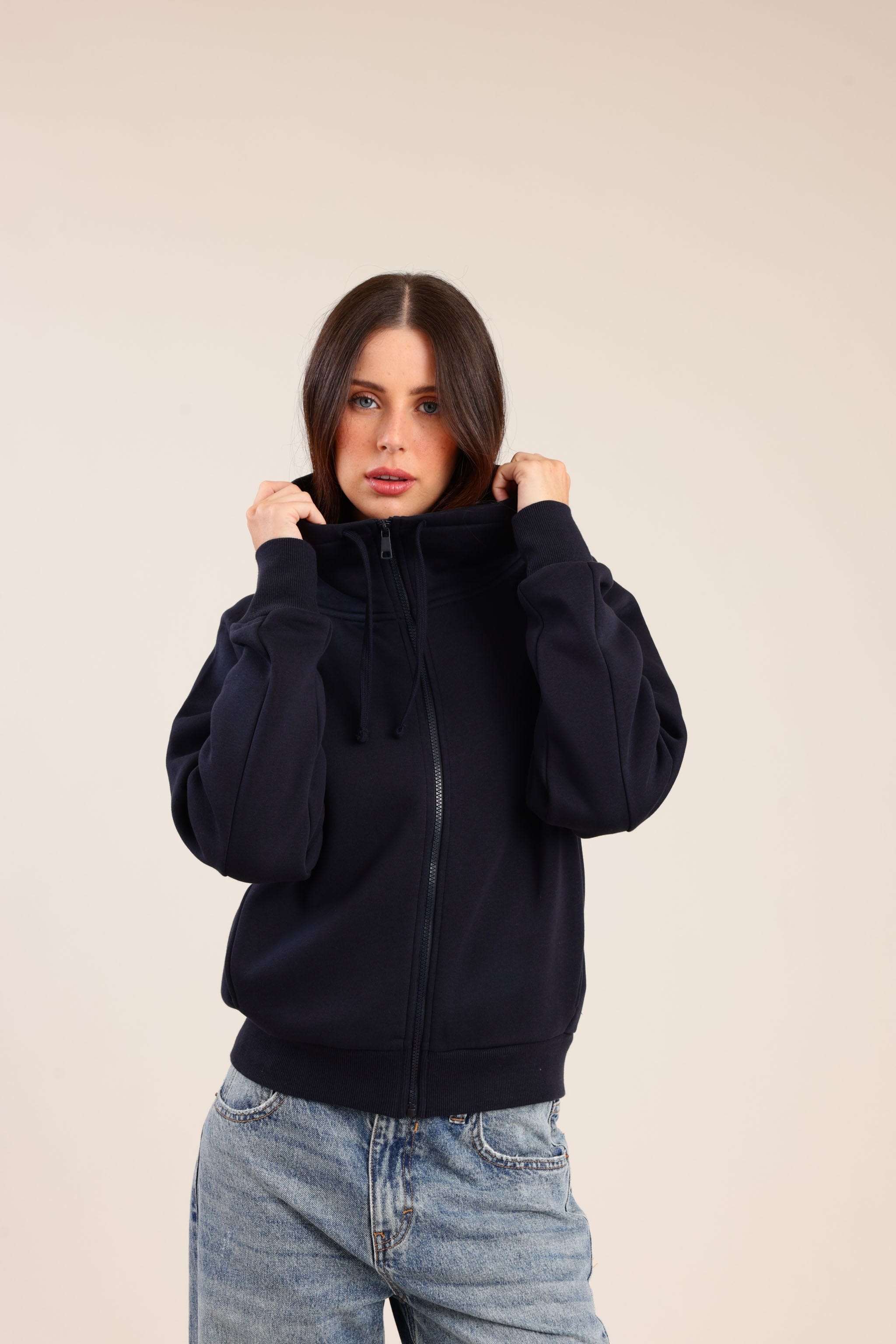 פוטר קרדיגן נשים עם צווארון עולה ורוכסן קדמי
