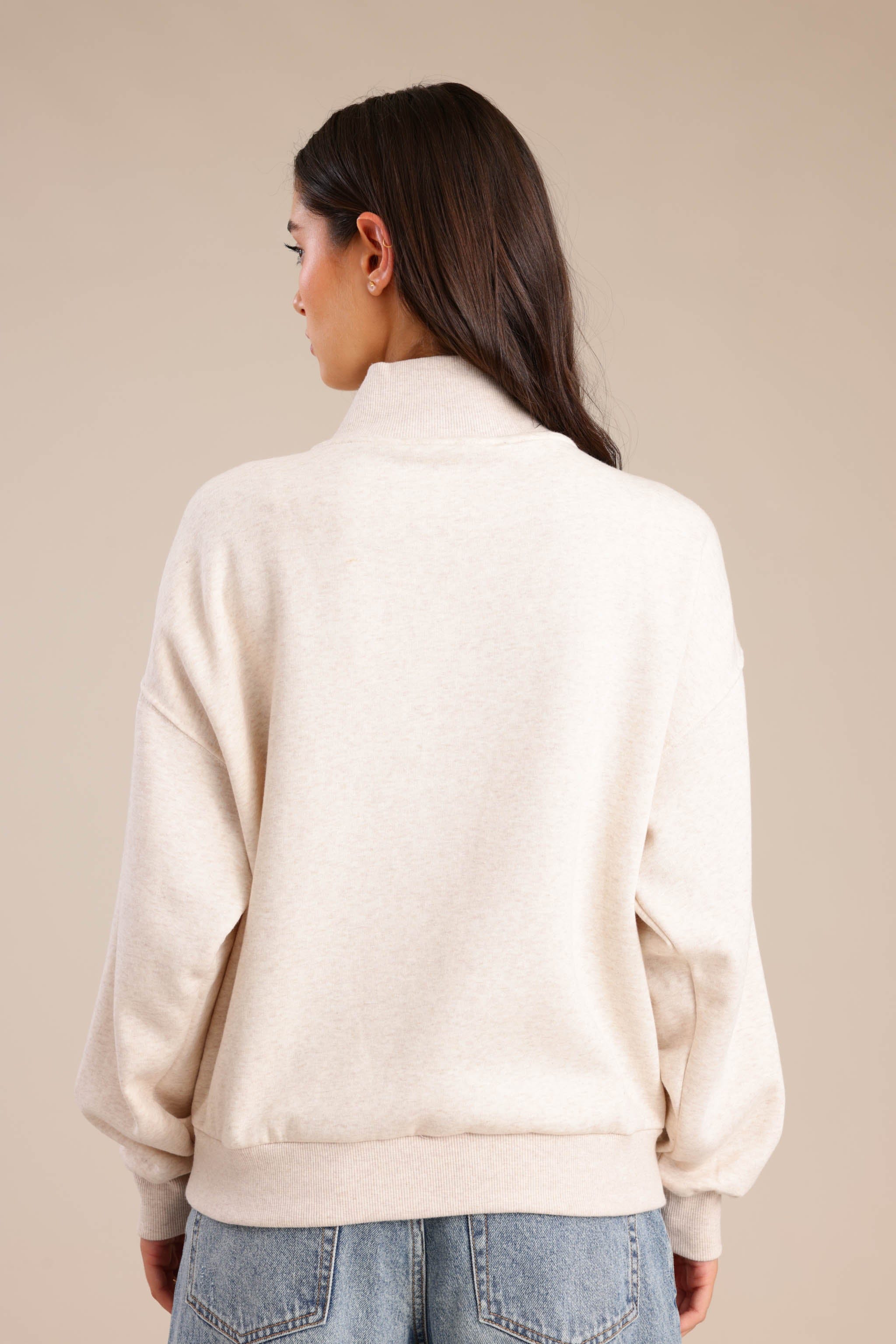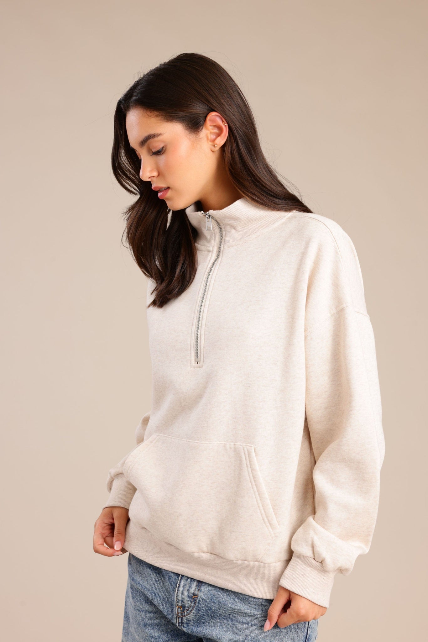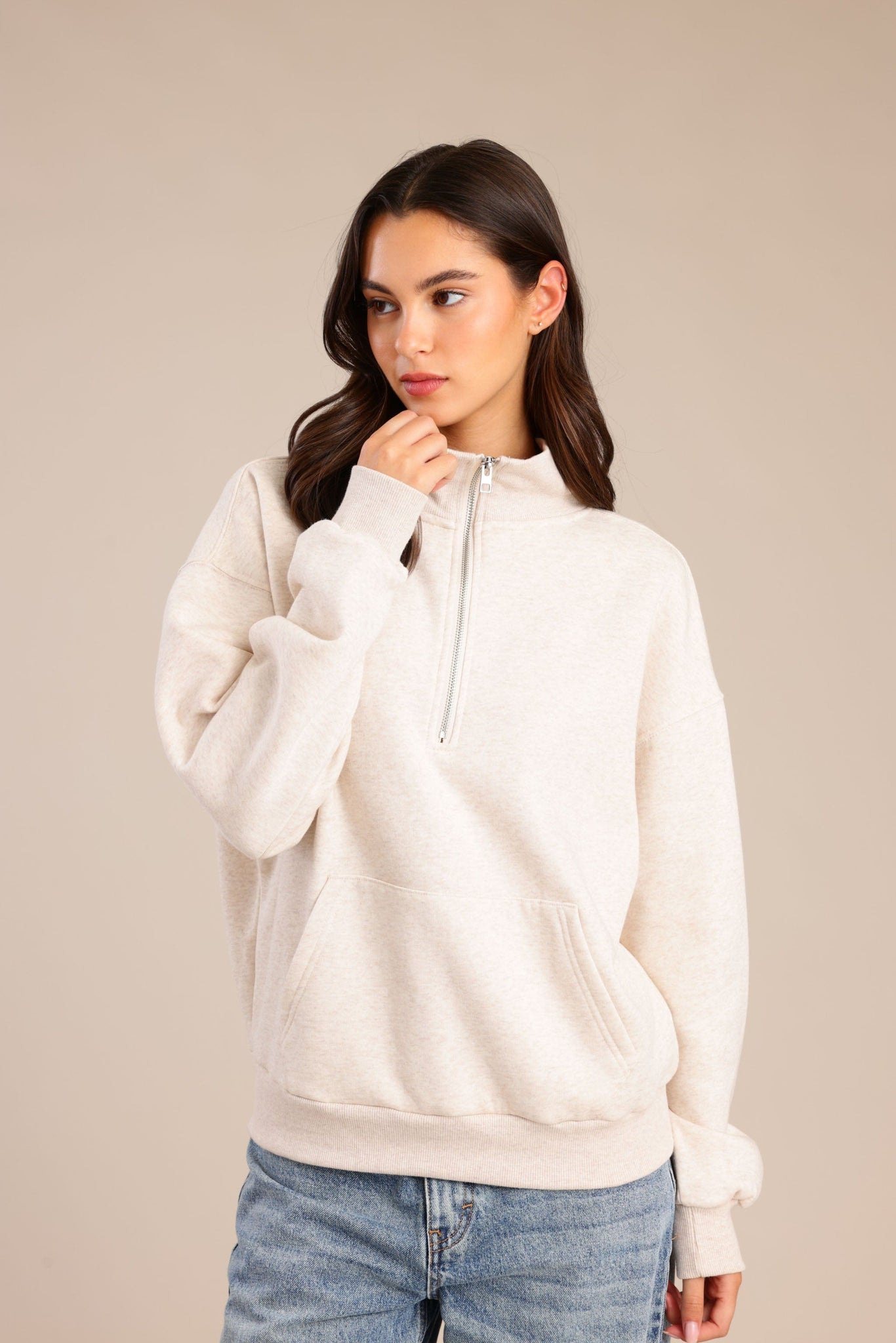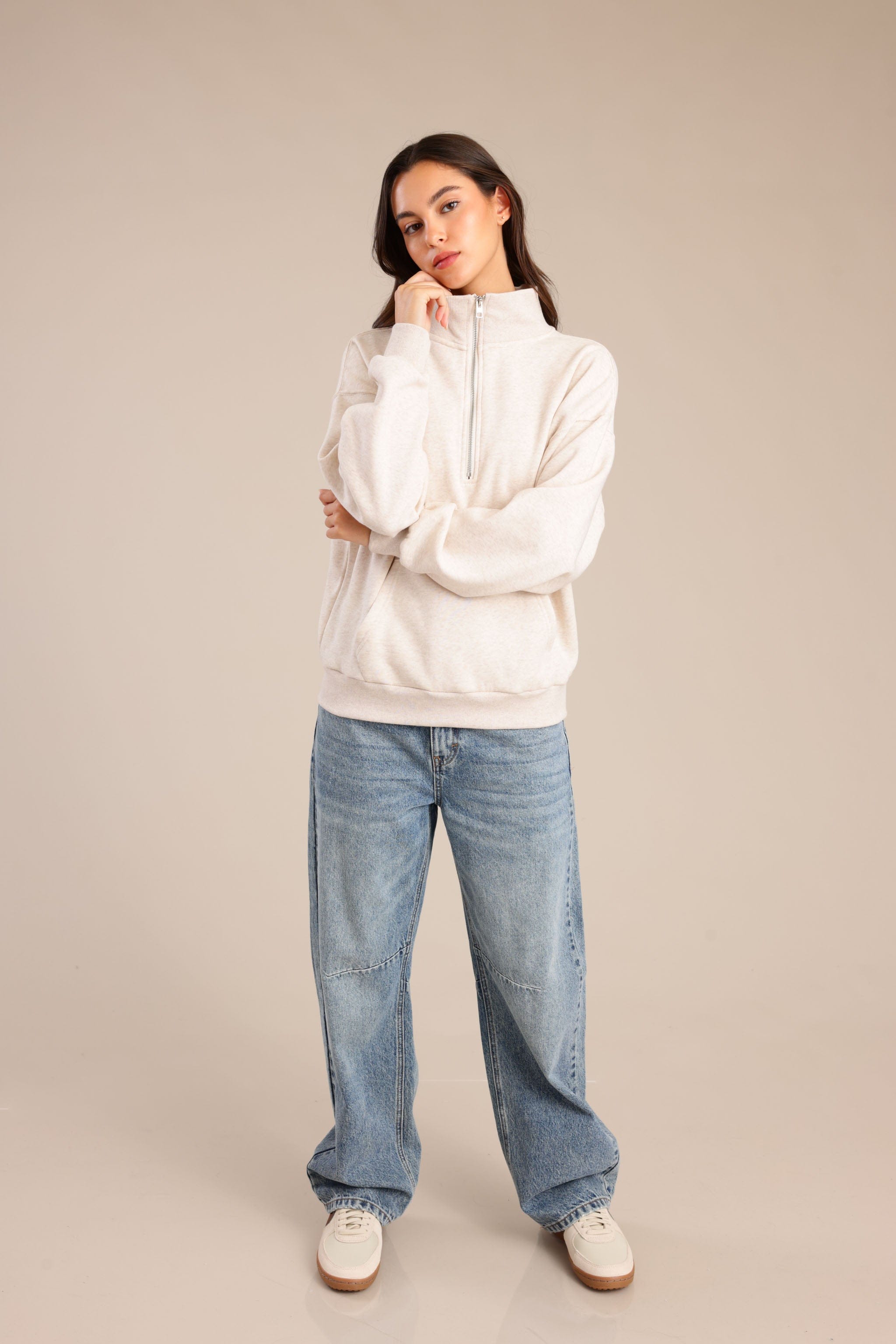 פוטר נשים בגזרת אוברסייז עם חצי רוכסן, צווארון עולה וכיס רחב